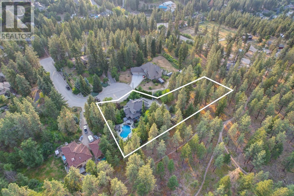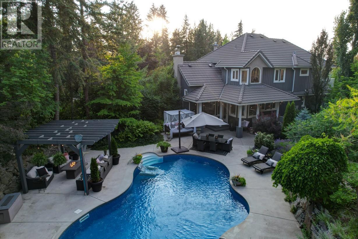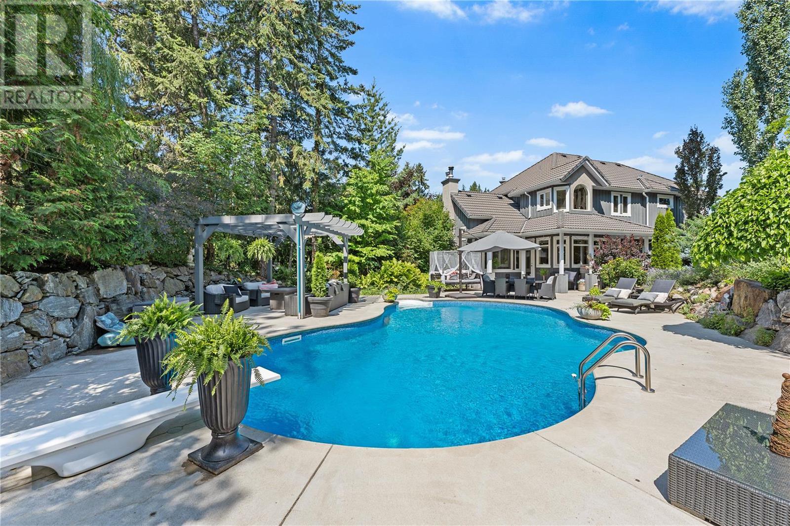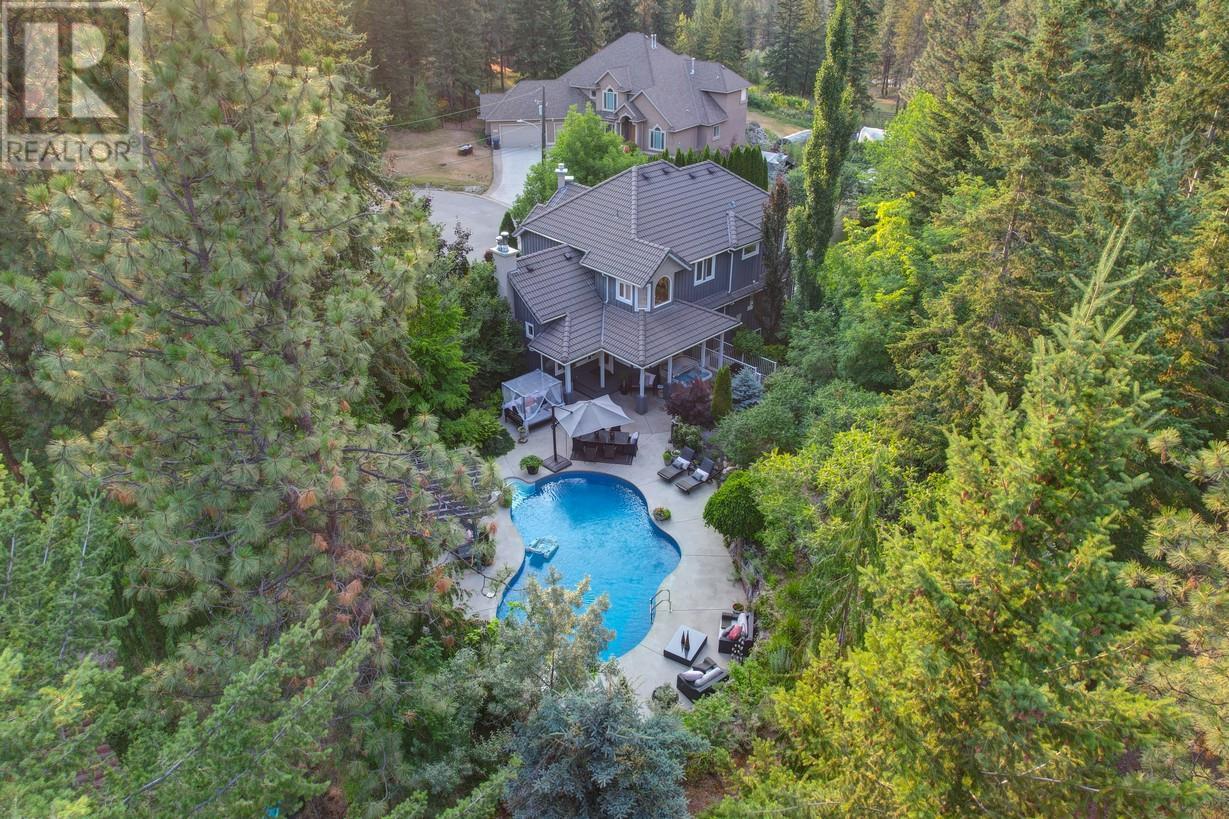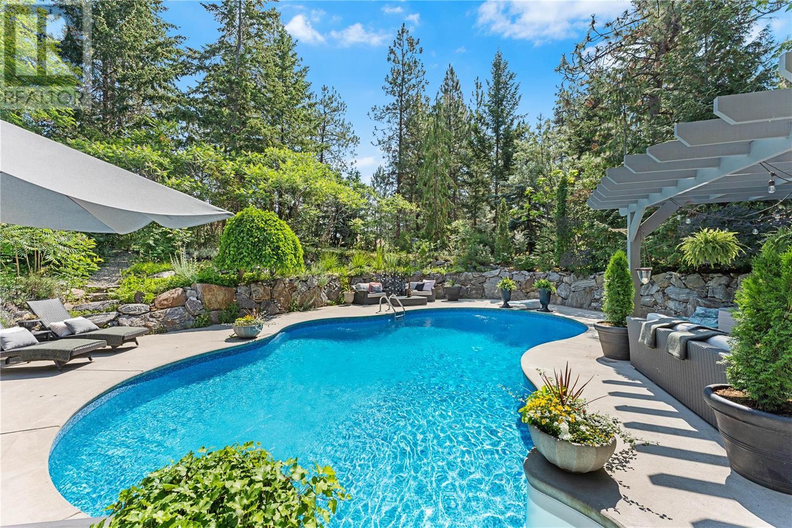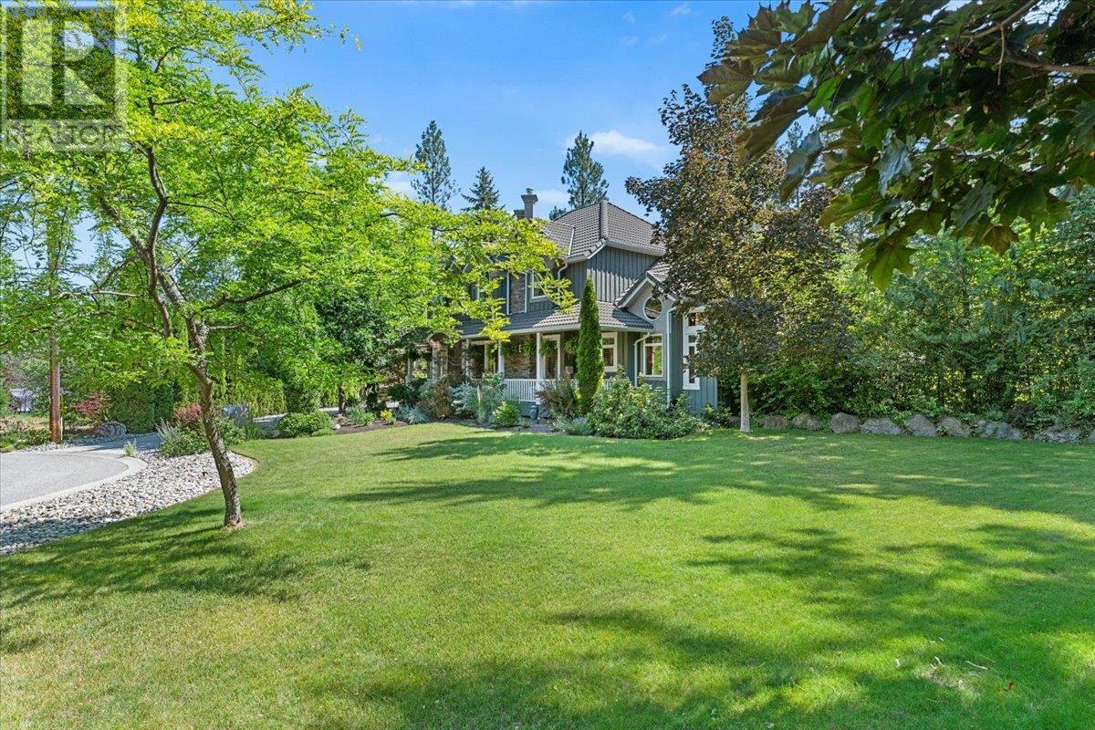 A Southeast Kelowna gem located on nearly an acre of fully landscaped, private grounds situated at the end of a quiet cut-de-sac. This charming residence features 4071 square feet of living space with 4 bedrooms and 5 bathrooms. Enjoy the private backyard oasis which offers pool side lounging, a hot tub, and triple car detached shop. Enjoy the timeless charm found throughout the home. Tastefully finished kitchen offers granite countertops, large centre island, views overlooking the backyard and a seamless transition to the poolside lounging and eating area. Spacious living room off the kitchen area with vaulted ceilings, a cozy fireplace and flooded with natural light from multiple windows.Primary bedroom on the second level overlooks the backyard and offers a large walk-in closet with a spa-inspired 5-piece ensuite. An additional two bedrooms complete this floor as well as an office space! On the lower level you will find a home gym, wine cellar, rec-room great for entertaining, full bathroom and a bedroom. Approximately 340 square feet of storage space. Close proximity to Gallaghers Canyon Golf Course, multiple first class wineries and Kelowna city amenities. Almost 40 acres of hiking, biking and horse riding trails on crown land immediately outside the fully fenced back yard. (id:22211)