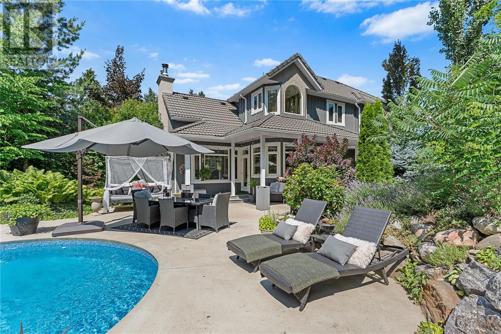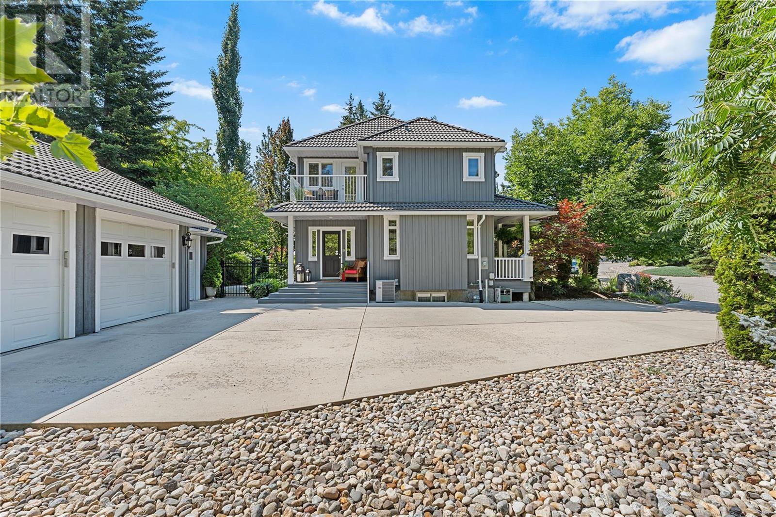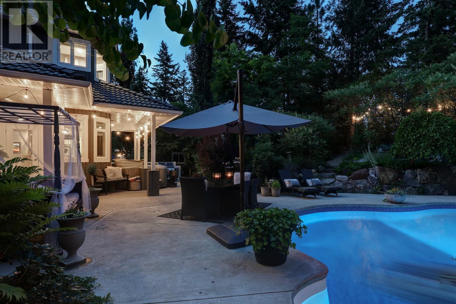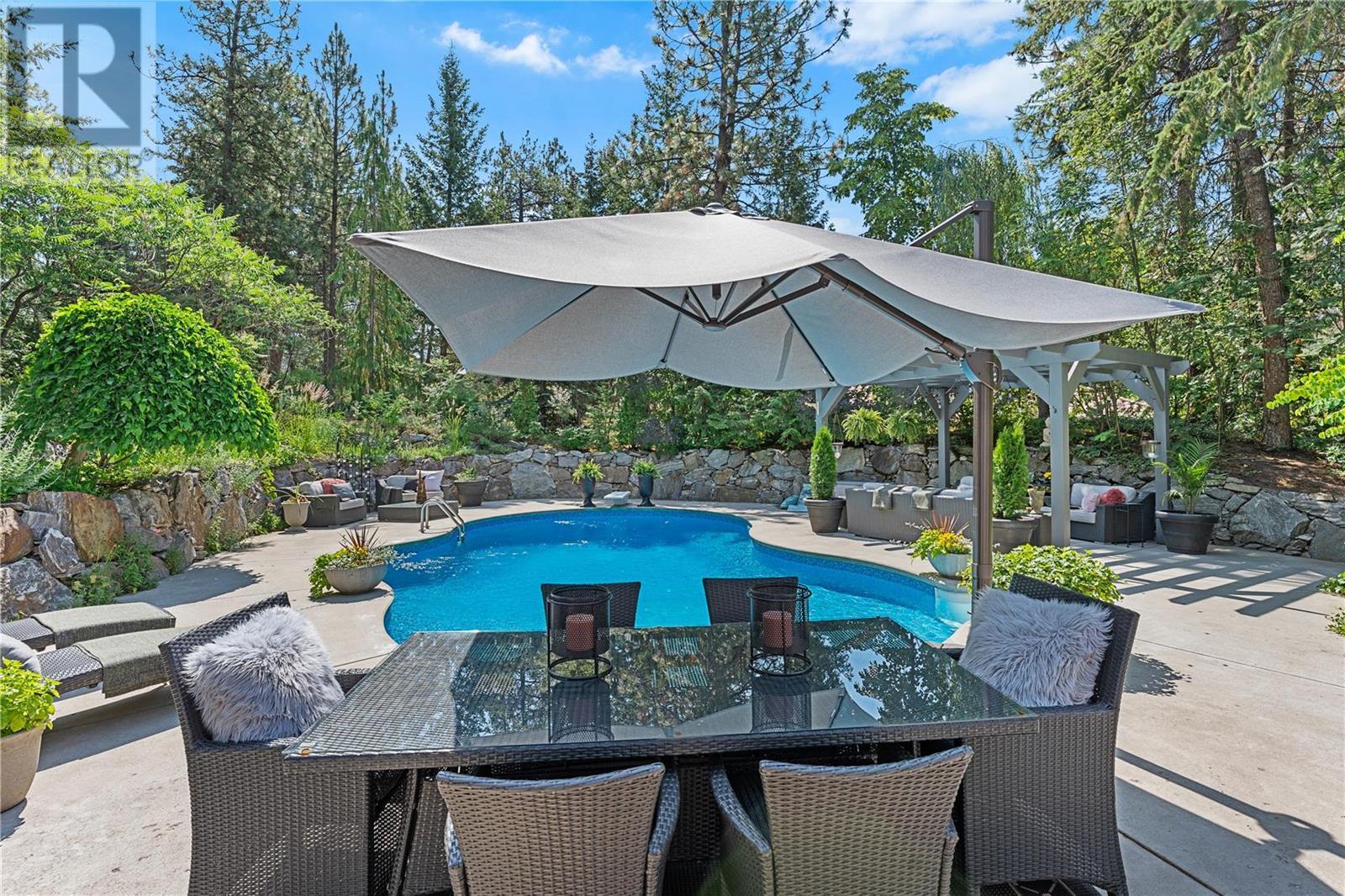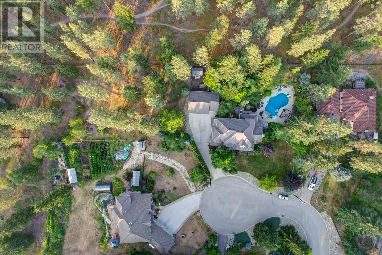 A Southeast Kelowna gem located on nearly an acre of fully landscaped, private grounds situated at the end of a quiet cut-de-sac. This charming residence features 4071 square feet of living space with 4 bedrooms and 5 bathrooms. Enjoy the private backyard oasis which offers pool side lounging, a hot tub, and triple car detached shop. Enjoy the timeless charm found throughout the home. Tastefully finished kitchen offers granite countertops, large centre island, views overlooking the backyard and a seamless transition to the poolside lounging and eating area. Spacious living room off the kitchen area with vaulted ceilings, a cozy fireplace and flooded with natural light from multiple windows.Primary bedroom on the second level overlooks the backyard and offers a large walk-in closet with a spa-inspired 5-piece ensuite. An additional two bedrooms complete this floor as well as an office space! On the lower level you will find a home gym, wine cellar, rec-room great for entertaining, full bathroom and a bedroom. Approximately 340 square feet of storage space. Close proximity to Gallaghers Canyon Golf Course, multiple first class wineries and Kelowna city amenities. Almost 40 acres of hiking, biking and horse riding trails on crown land immediately outside the fully fenced back yard. (id:22211)