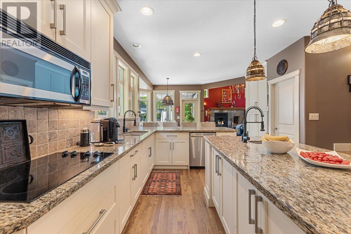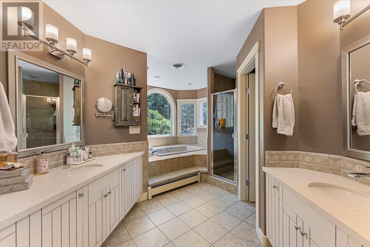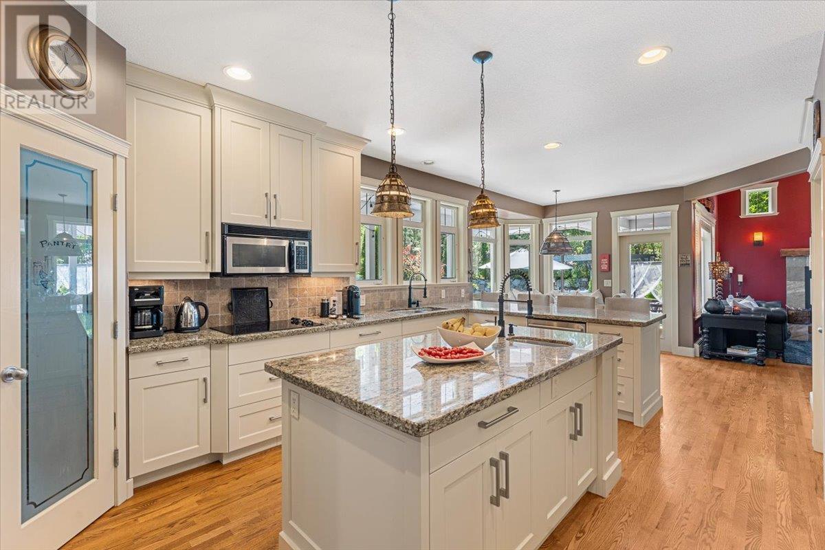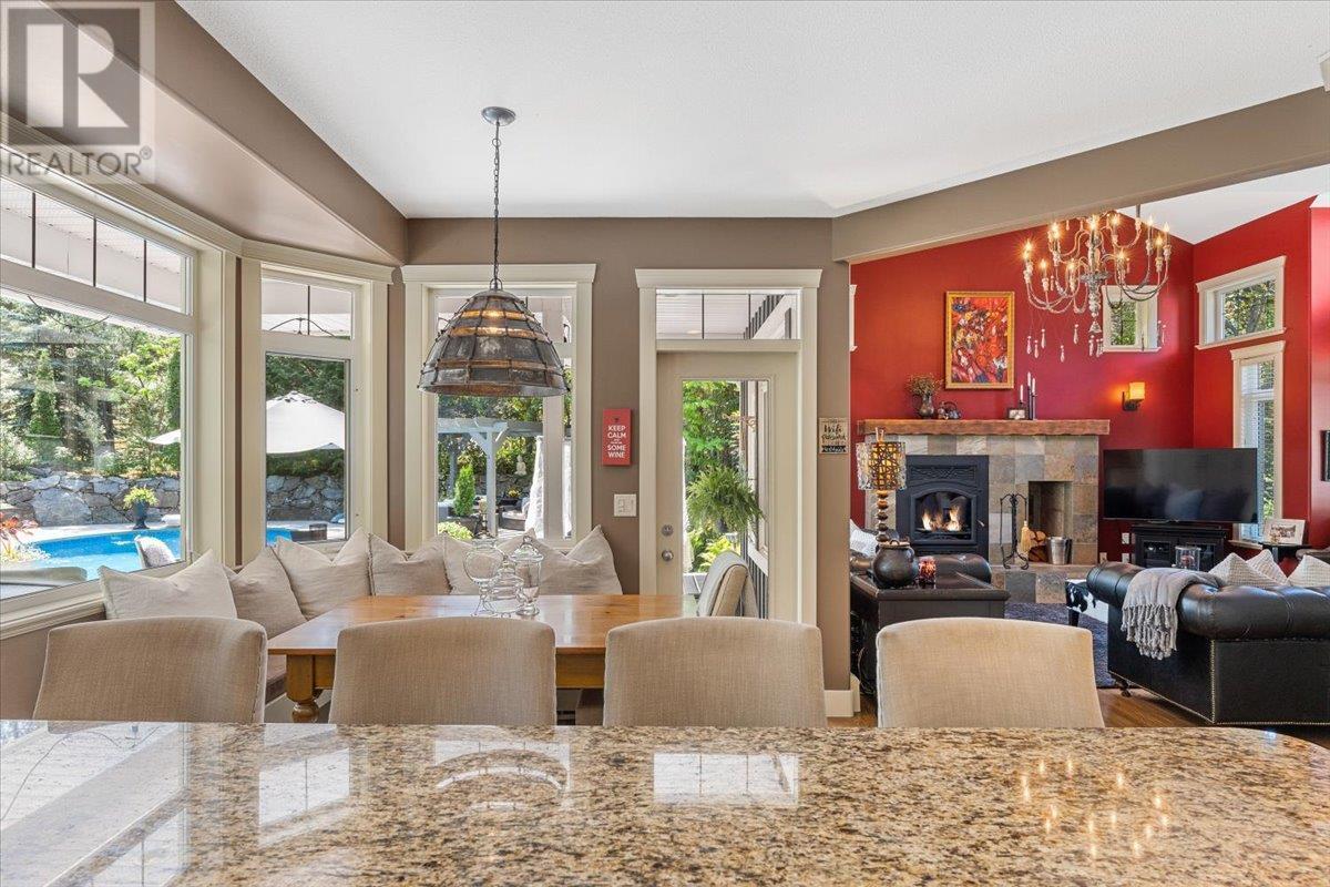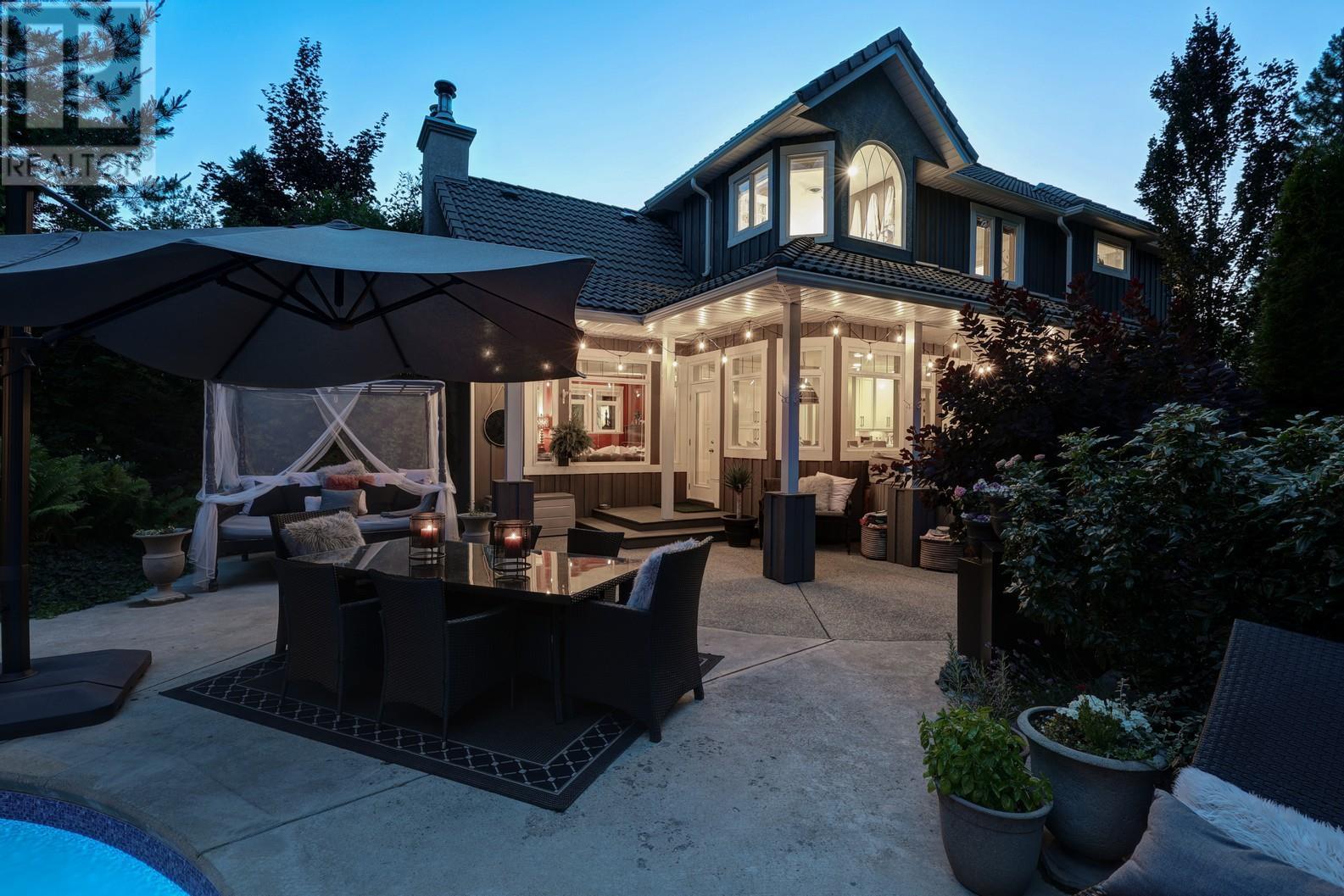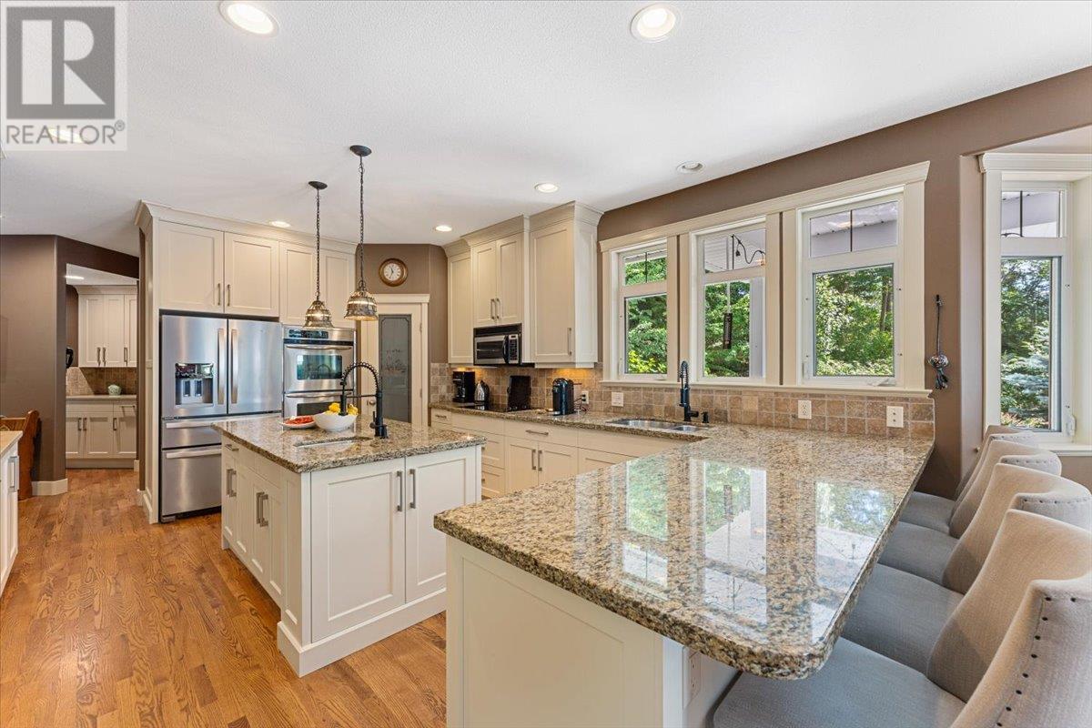 A Southeast Kelowna gem located on nearly an acre of fully landscaped, private grounds situated at the end of a quiet cut-de-sac. This charming residence features 4071 square feet of living space with 4 bedrooms and 5 bathrooms. Enjoy the private backyard oasis which offers pool side lounging, a hot tub, and triple car detached shop. Enjoy the timeless charm found throughout the home. Tastefully finished kitchen offers granite countertops, large centre island, views overlooking the backyard and a seamless transition to the poolside lounging and eating area. Spacious living room off the kitchen area with vaulted ceilings, a cozy fireplace and flooded with natural light from multiple windows.Primary bedroom on the second level overlooks the backyard and offers a large walk-in closet with a spa-inspired 5-piece ensuite. An additional two bedrooms complete this floor as well as an office space! On the lower level you will find a home gym, wine cellar, rec-room great for entertaining, full bathroom and a bedroom. Approximately 340 square feet of storage space. Close proximity to Gallaghers Canyon Golf Course, multiple first class wineries and Kelowna city amenities. Almost 40 acres of hiking, biking and horse riding trails on crown land immediately outside the fully fenced back yard. (id:22211)