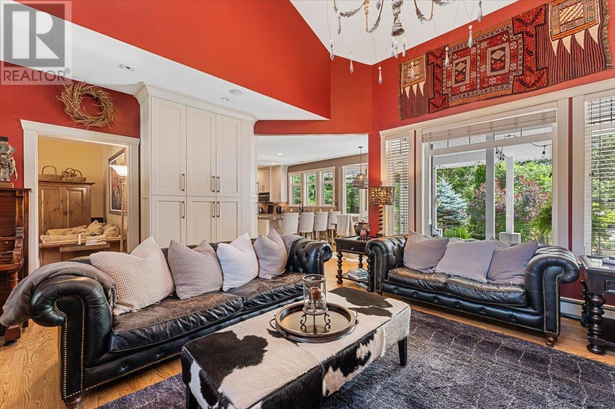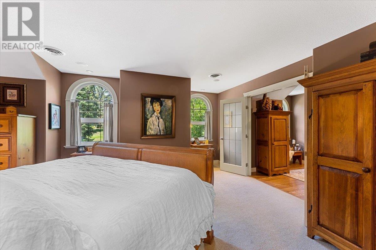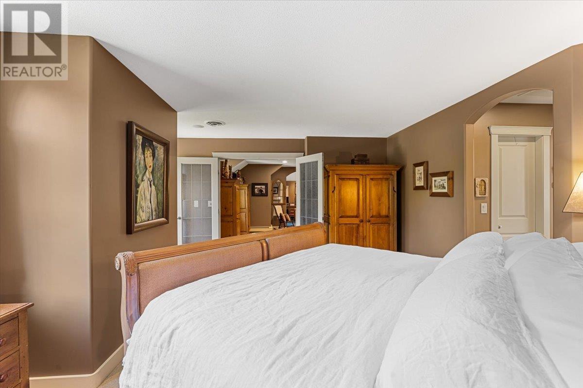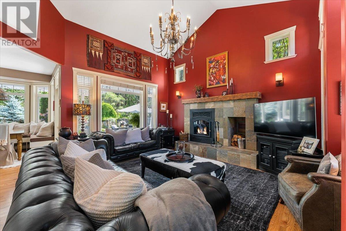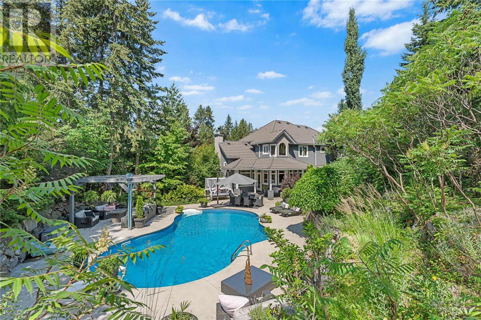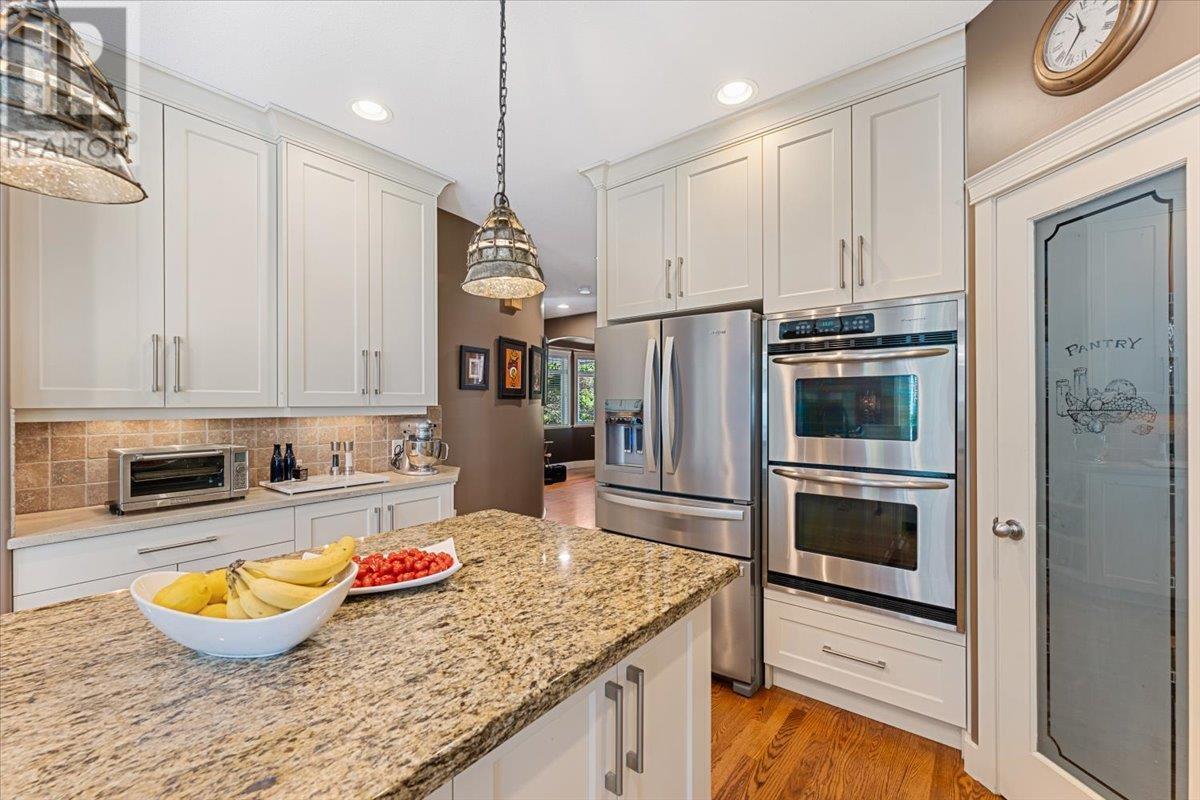 A Southeast Kelowna gem located on nearly an acre of fully landscaped, private grounds situated at the end of a quiet cut-de-sac. This charming residence features 4071 square feet of living space with 4 bedrooms and 5 bathrooms. Enjoy the private backyard oasis which offers pool side lounging, a hot tub, and triple car detached shop. Enjoy the timeless charm found throughout the home. Tastefully finished kitchen offers granite countertops, large centre island, views overlooking the backyard and a seamless transition to the poolside lounging and eating area. Spacious living room off the kitchen area with vaulted ceilings, a cozy fireplace and flooded with natural light from multiple windows.Primary bedroom on the second level overlooks the backyard and offers a large walk-in closet with a spa-inspired 5-piece ensuite. An additional two bedrooms complete this floor as well as an office space! On the lower level you will find a home gym, wine cellar, rec-room great for entertaining, full bathroom and a bedroom. Approximately 340 square feet of storage space. Close proximity to Gallaghers Canyon Golf Course, multiple first class wineries and Kelowna city amenities. Almost 40 acres of hiking, biking and horse riding trails on crown land immediately outside the fully fenced back yard. (id:22211)