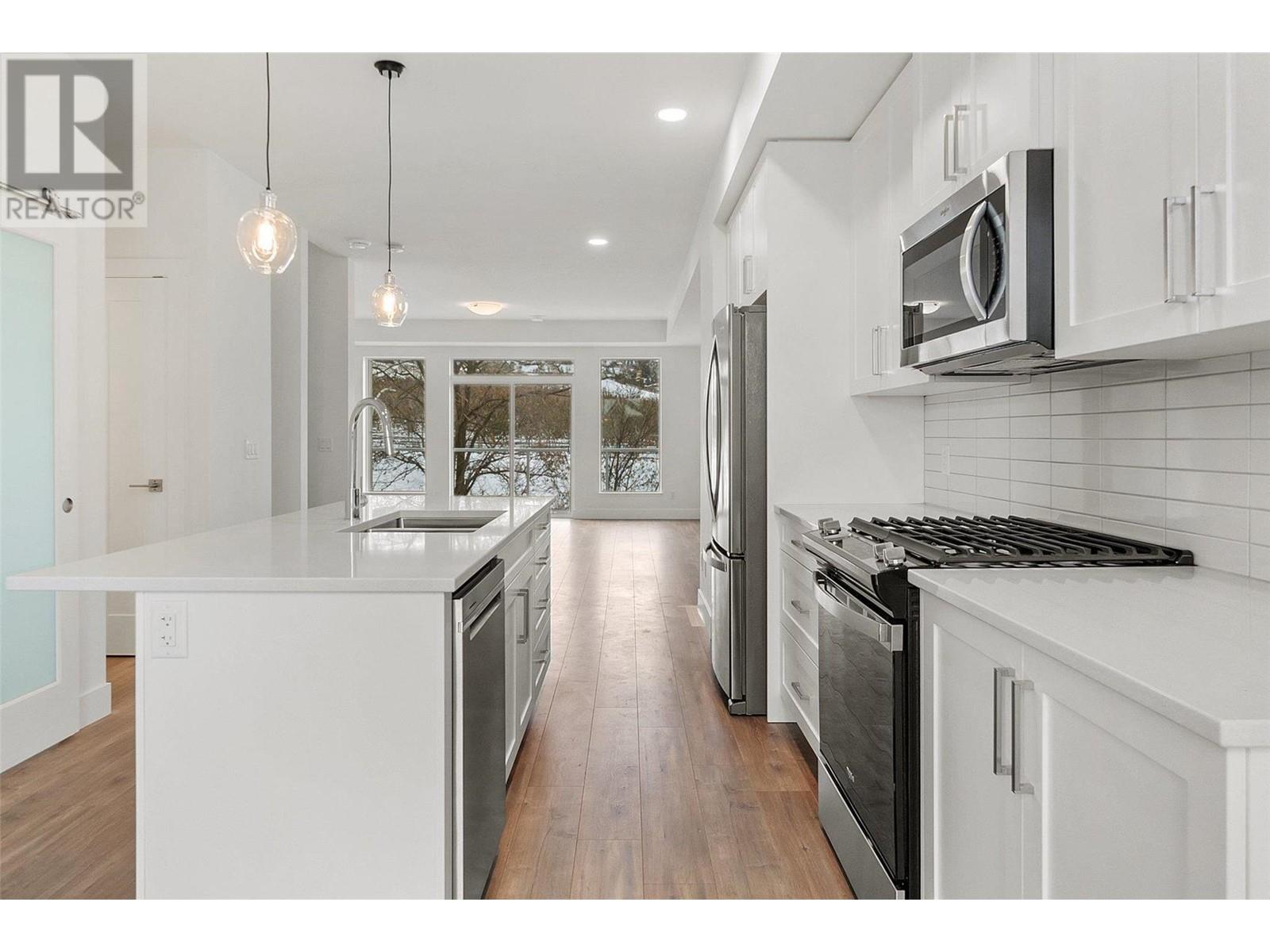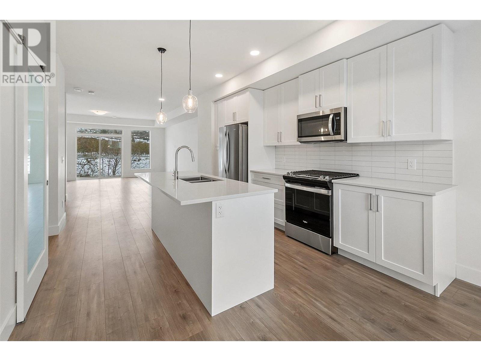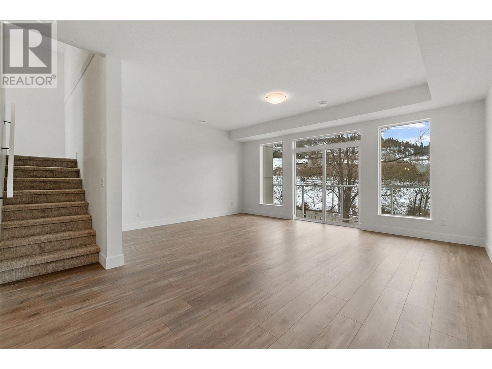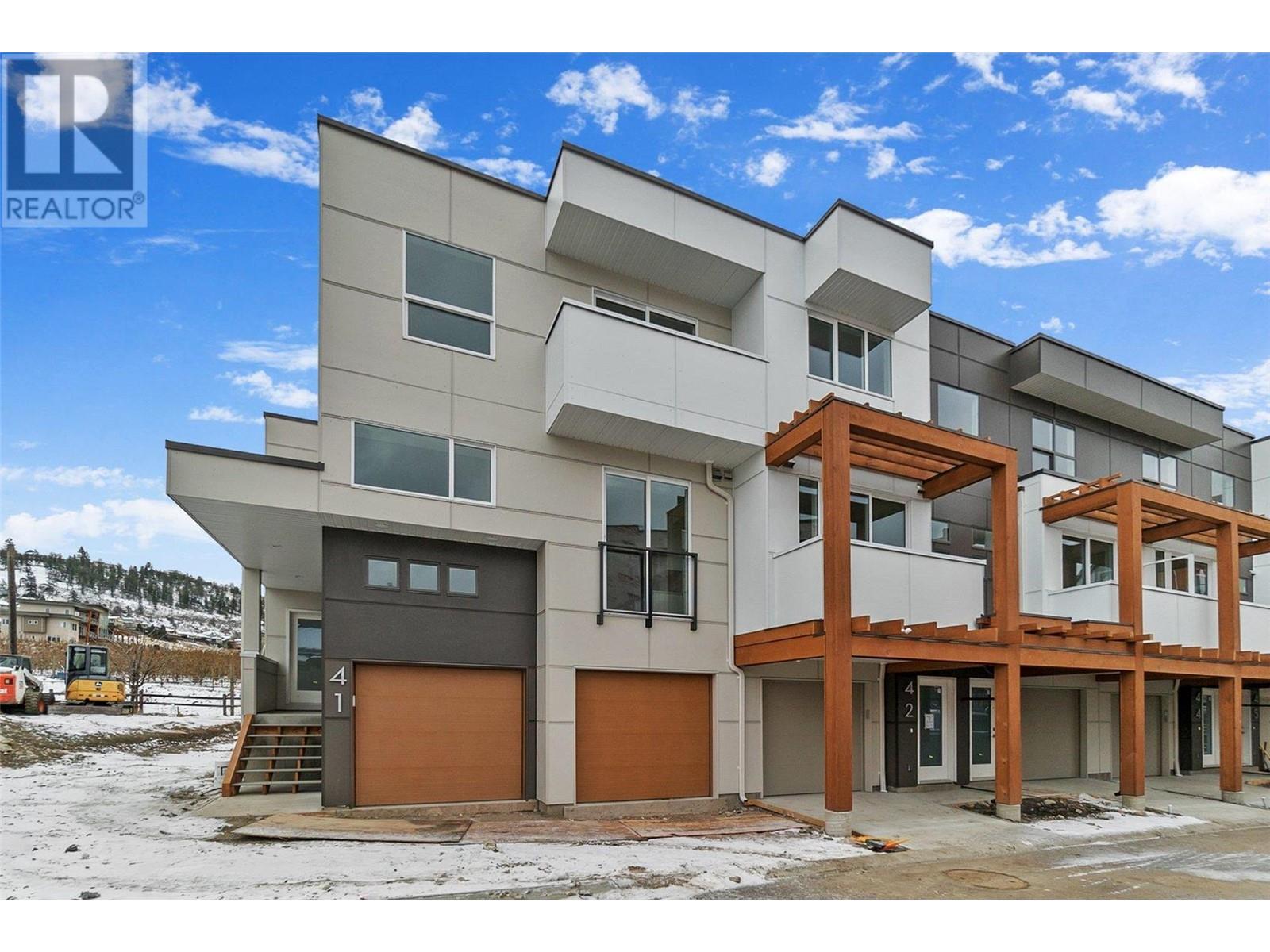 *OPEN HOUSE every Wednesday and Thursday from 12PM-3PM Unit #45* Welcome to Trellis, a rich, modernly designed townhome development found in the heart of Glenmore. This floorplan is the largest in the development totaling 2363 sqft. This floorplan has so much to offer! Enjoy sunrises, sunsets, and amazing views from your private rooftop patio with gas hook ups. Convenient den/office on the main floor next to your breakfast nook, large family style kitchen and living room. On the third floor is where you will find 2 bedrooms, 1 full bathroom, laundry, and a large primary suite with walk-in closet and ensuite. There is also a bonus fourth bedroom/family room on the lower level complete with ensuite. Double side-by-side garage with storage closet. Located minutes from downtown Kelowna, you are just steps away from green spaces and reputable schools. Give us a call today to set up a viewing. (id:22211)