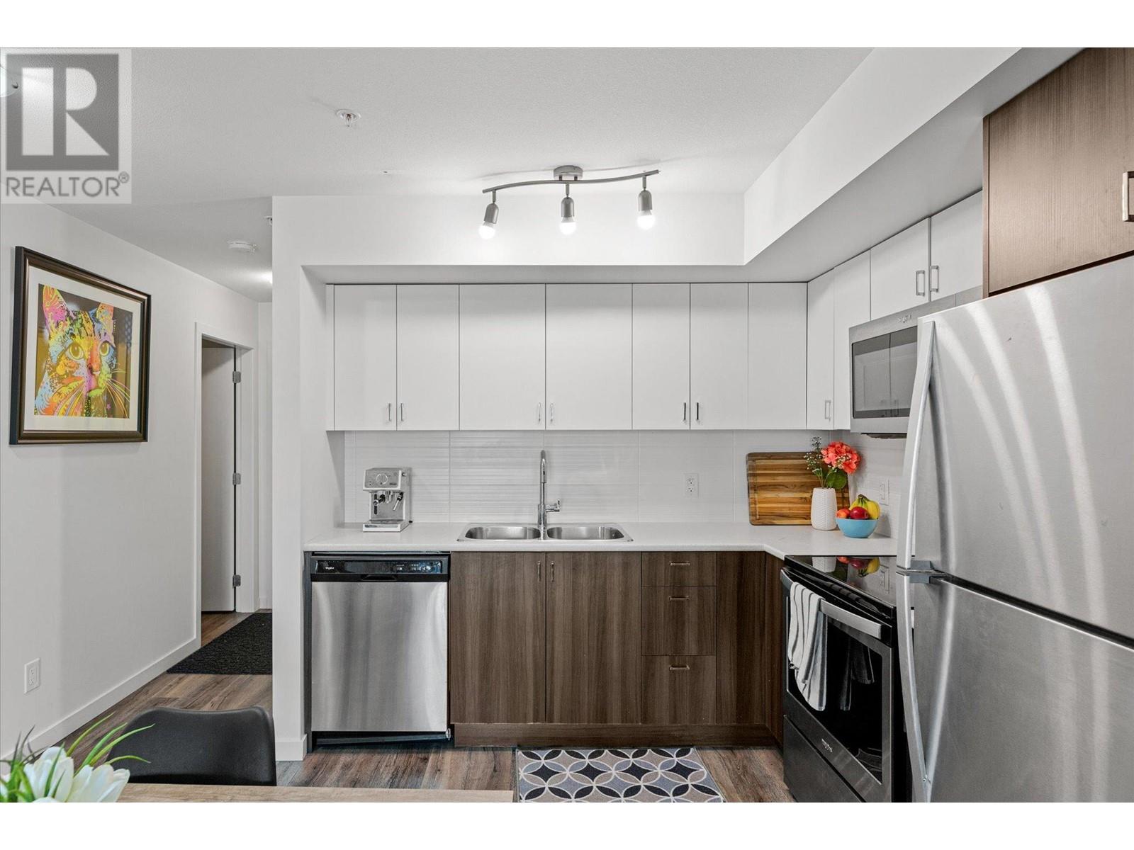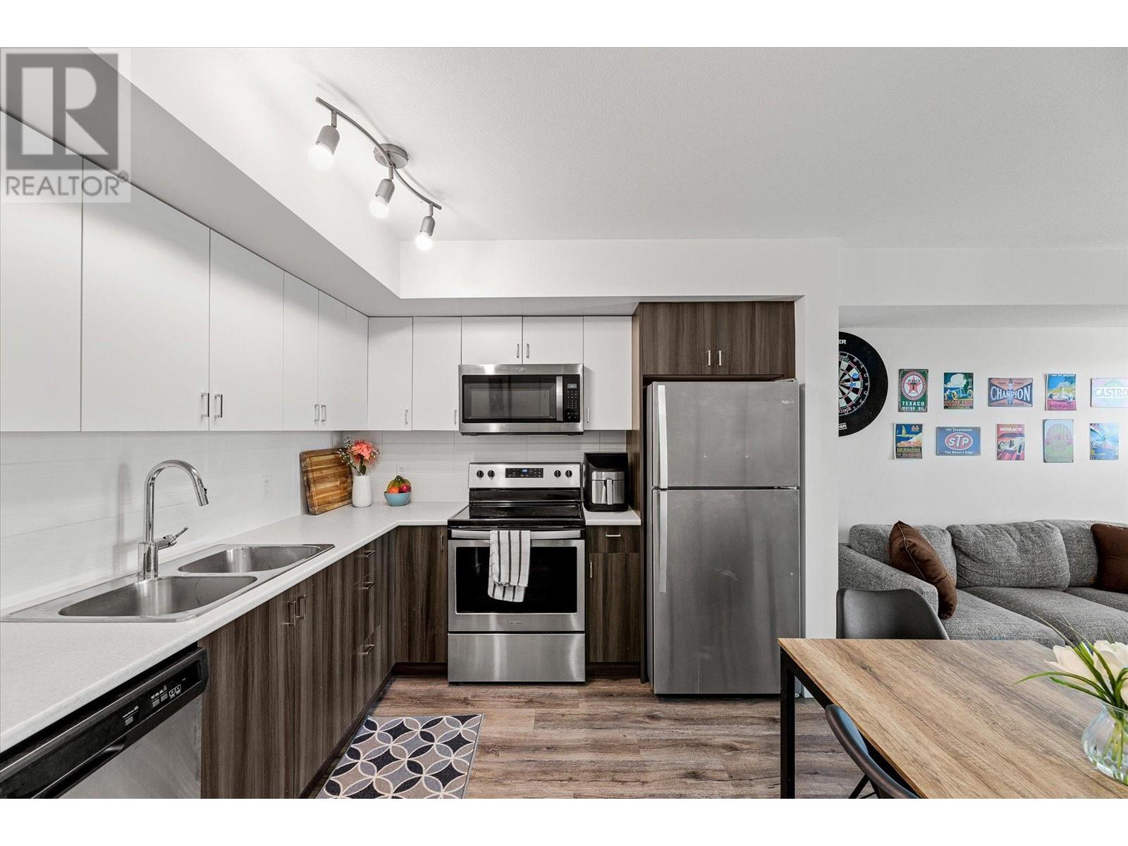 Welcome to U-Five, a stones throw away from the UBCO campus and airport! Ideal for students or young professionals, this condo features 2 bedrooms and 2 bathrooms with a good sized patio overlooking the valley and mountains. This south facing unit enjoys the beautiful afternoon sun, keeping it feeling bright and open. With the prime location walking distance to UBCO's rapidly expanding campus, U-Five represents an excellent investment opportunity with a low vacancy rate in a growing community. Other walking distance amenities nearby include restaurants, the Kelowna Brewing Company and plenty of walking trails. A short drive away find easy access to groceries, golf courses, and all of your other necessities. This unit comes with a secure parking spot in the garage, a bike storage rack, and the building features EV charger! An excellent opportunity for getting into the market while still being near the university for a young professional, for parents helping their kids secure prime accommodation while attending the university, and as an investment. Available fully furnished, setting up for success couldn't be easier in this condo! (id:22211)