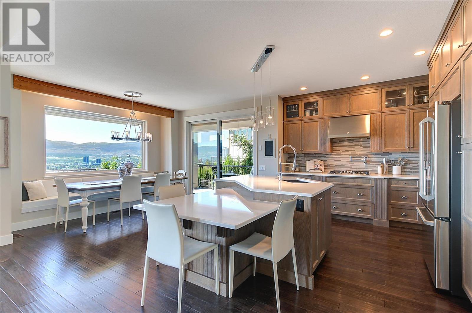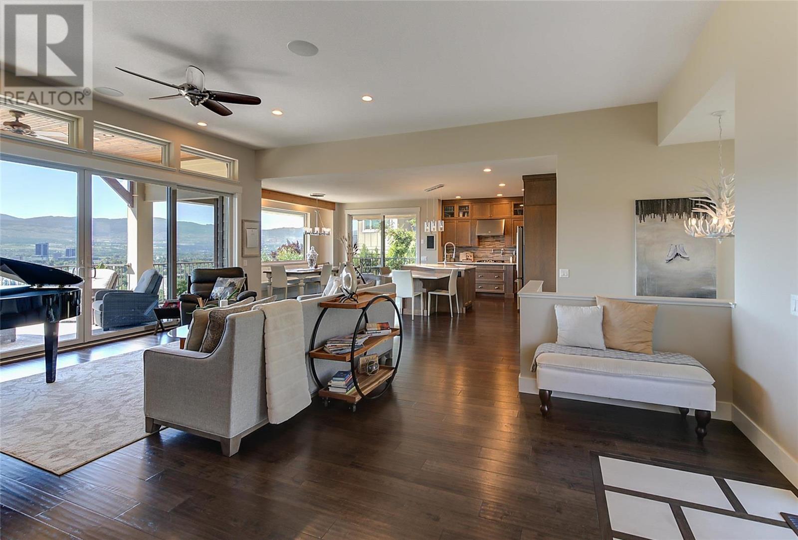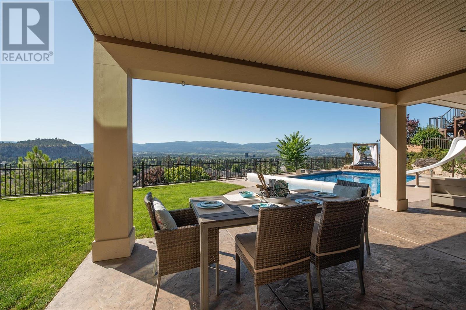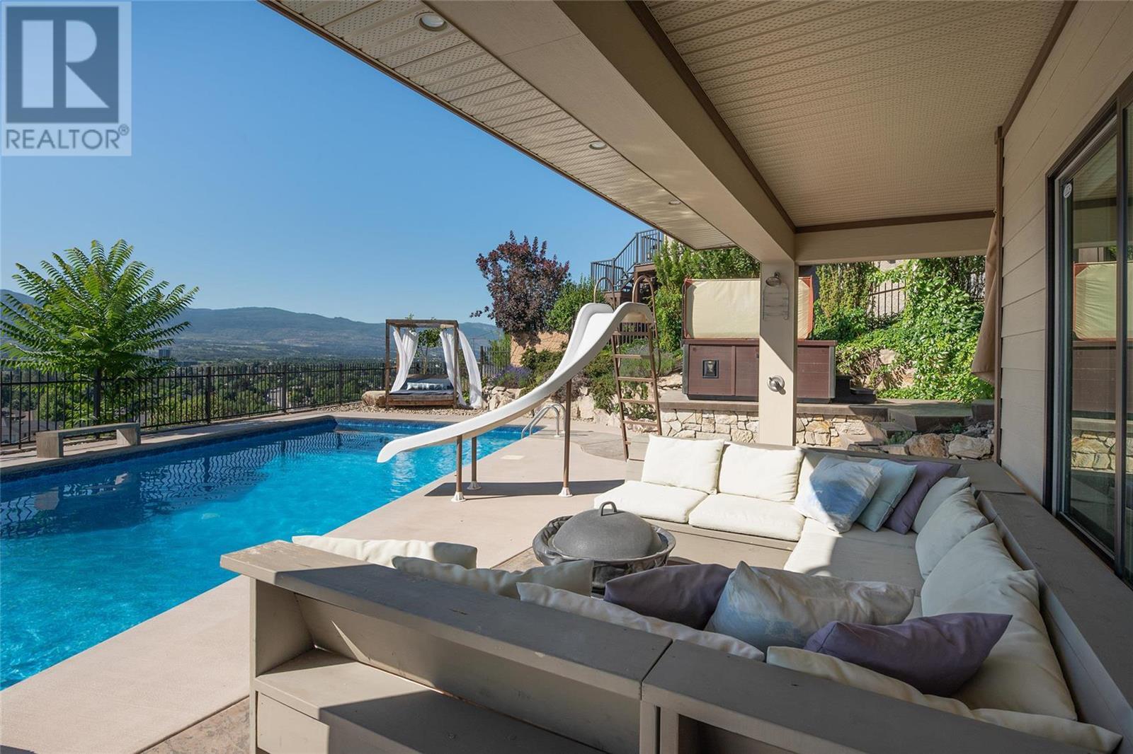 ""TAKE YOUR BREATH AWAY"" UNOBSTRUCTED VIEW OVER CITY, DILWORTH CLIFFS AND LAKE! MODERN CUSTOM DESIGNED 4500 SQFT RANCHER WALKOUT w/ GORGEOUS POOL and LEGAL SUITE...Must be seen! Open the door and it's a WOW! Ingenious thought & design offer a Seamless Inside & Outside Living flow. Spacious Open living areas with 11' ceilings & Massive Wall to Wall windows that take in the Expansive Views! Great room with Engineered White Oak floors, Feature Gas fireplace, and 2 sets of Glass sliding doors to large wrap round deck. White Oak shaker Kitchen with oodles of cabinets, Quartz counters, GE Cafe commercial grade appliances is a Chef's Dream. Huge Dining area with bench & room for 12 person table. 5 Bedrooms, 4 bathrooms total. Luxurious Primary suite with massive 5 pc ensuite, separate soaker tub & shower, heated tile. Giant mud room is a mom's dream! Walkout basement features a Massive open Family & Games Room with entertainment bar, media room & 2 more bedrooms. Self contained 1 Bed Legal suite is privately situated w/ separate entrance, private fenced garden area- perfect for extended family, guests or mortgage helper. Extra large Triple Garage/workshop. Tons of parking. Super wide lot offers Privacy and Space for Sport designed Inground Pool, raised Hot tub, outdoor shower, level grass areas for lounging & play, garden areas, large covered deck and patios & dog run. Live the Okanagan Life! Only minutes to Glenmore schools, Golf, Knox Mountain park, Downtown and more! (id:22211)