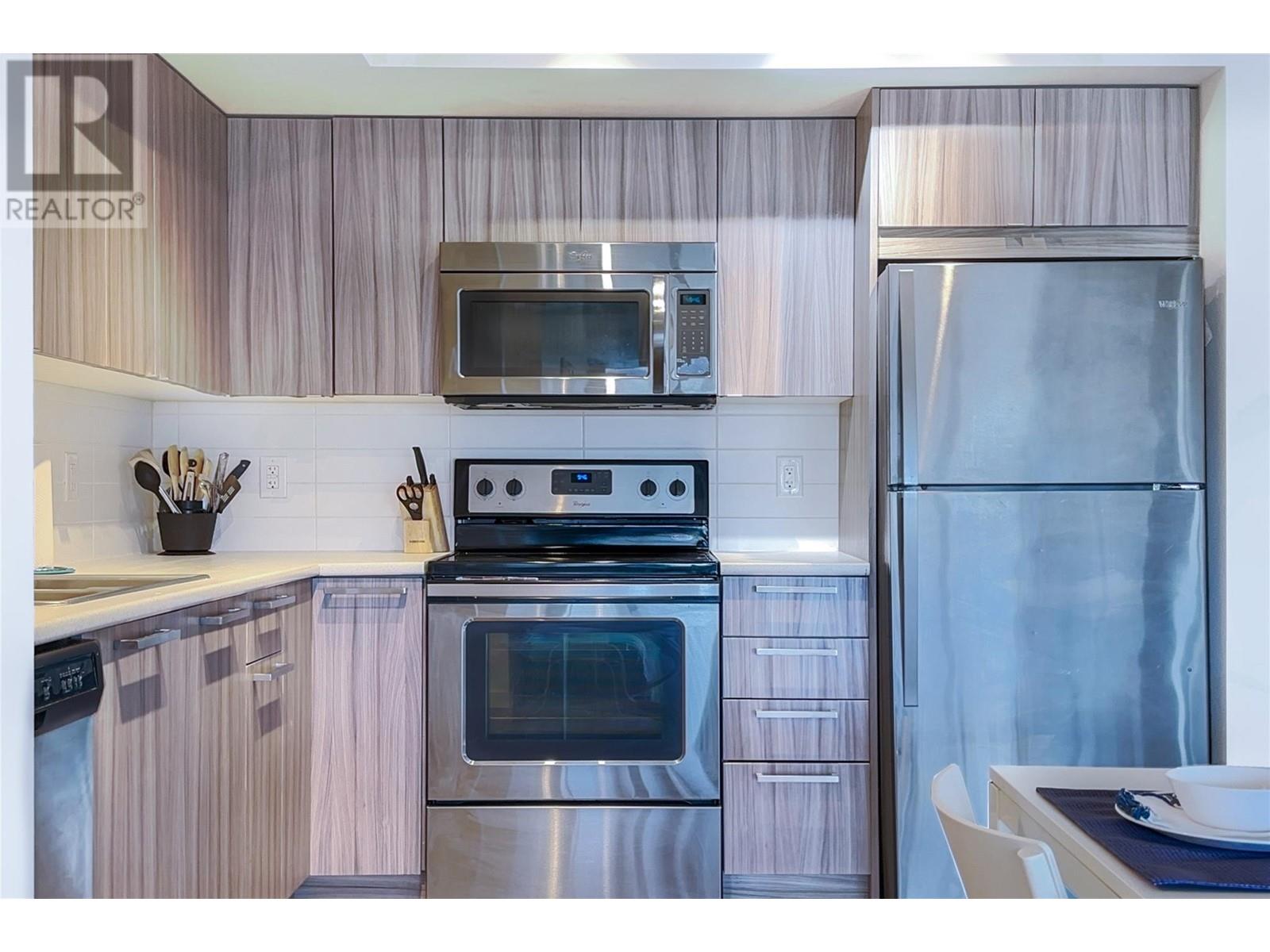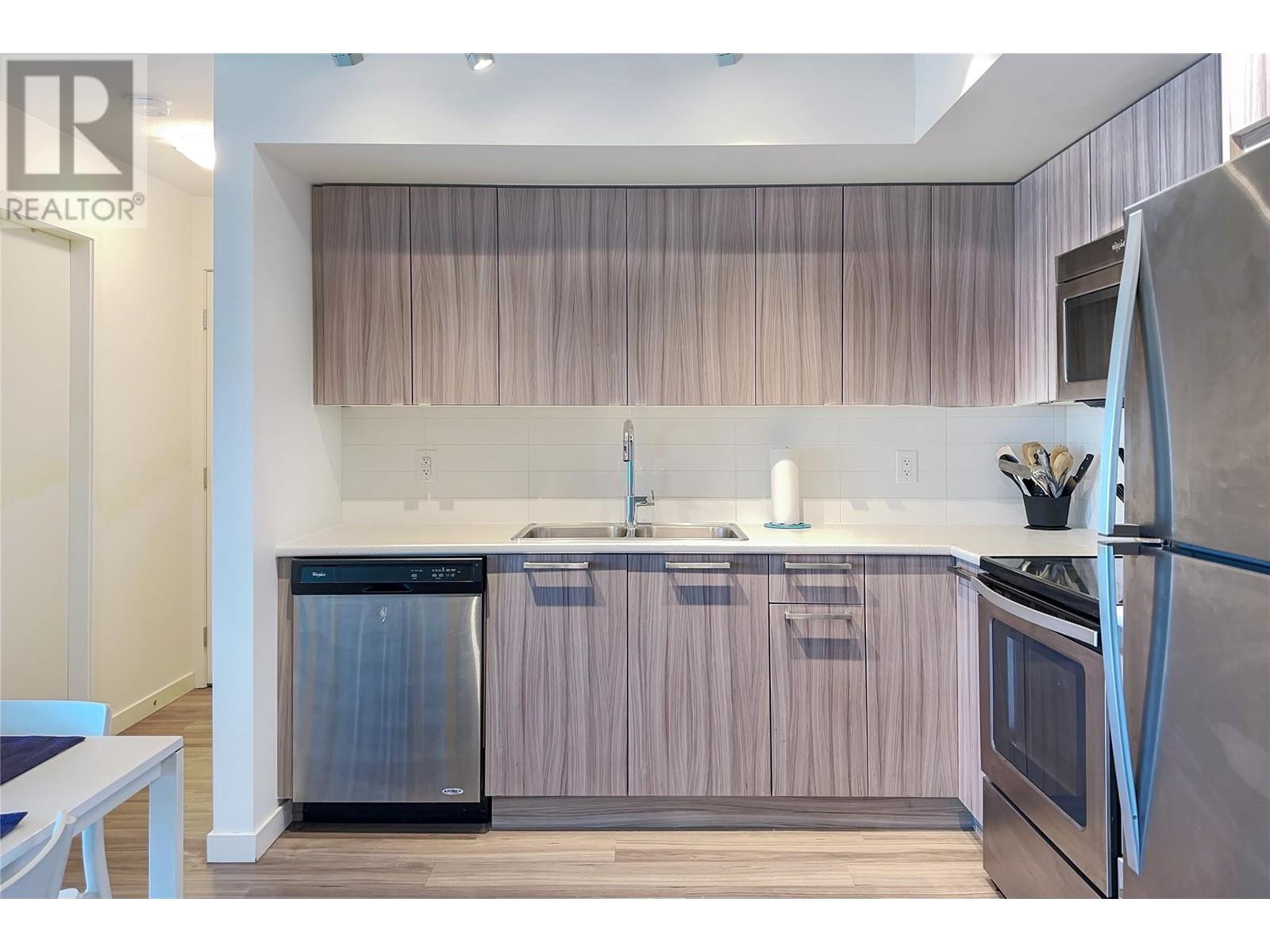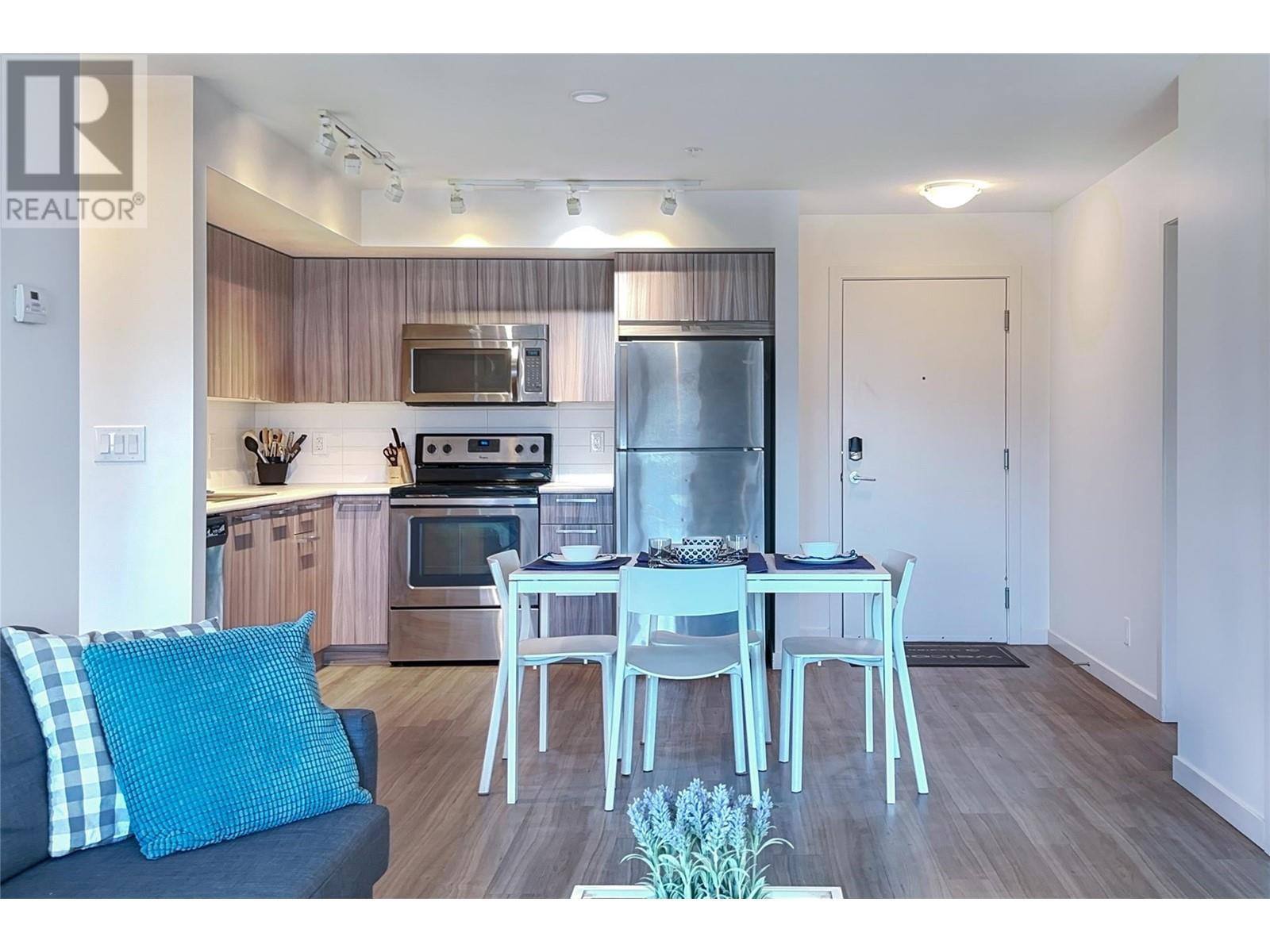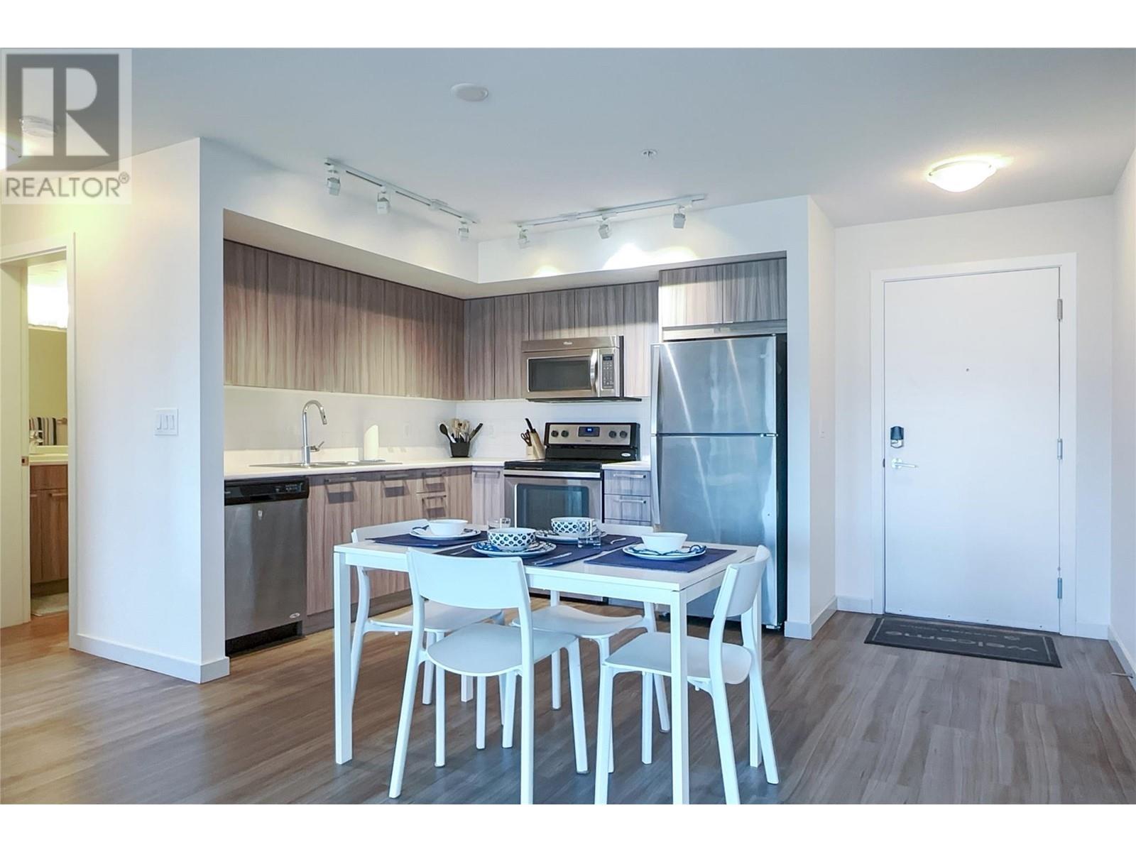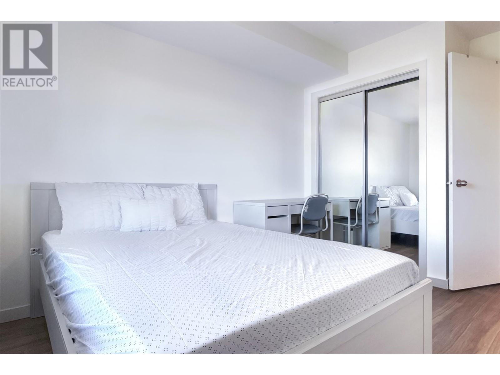 Investment opportunity or student alternative to renting! Save tens of thousands in rent while attending UBCO. This 3rd floor apartment style condo residence is located in sought after U TWO, in the quiet East building on the view side. Just a short 7-min walk from campus so no need for a car or to wait for a bus here. Outside is a fun, modern, stucco and brick exterior designed by leading Kelowna architects and inside is a bright, stylish, open concept kitchen and living room space, perfect for student life. Each bedroom gets a dedicated bathroom. This is a major upgrade from dorm living with a full kitchen including stainless steel appliances, in-suite laundry, and space to lounge both inside and outside on the oversized balcony with stress-relieving lake and mountain views. Includes 1 underground parking stall. Nearby Academy Hill building has restaurants, brewpub, a convenience store, and doctor's office. Less than 5-min drive to the Airport and 15-min to Downtown and the beach. Surrounded by hiking trails. WHY RENT WHEN YOU CAN BUY? Typically near zero vacancy in the area, among highest rents in the city... an investor's dream! Google search University District Kelowna to learn more about this fantastic location to invest. (id:22211)