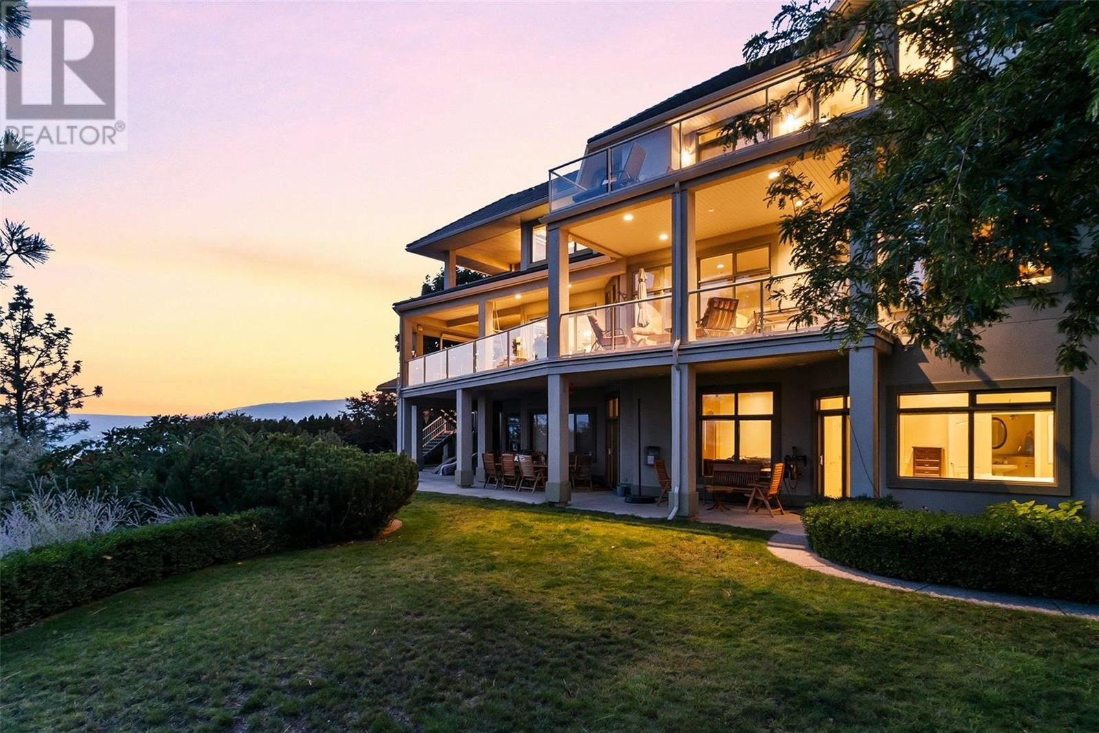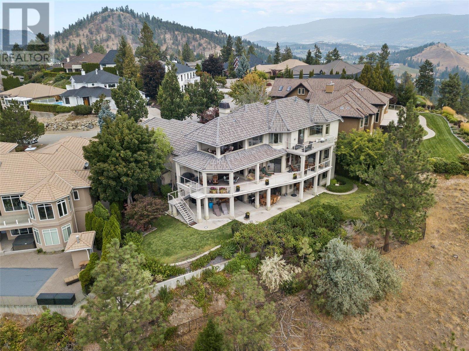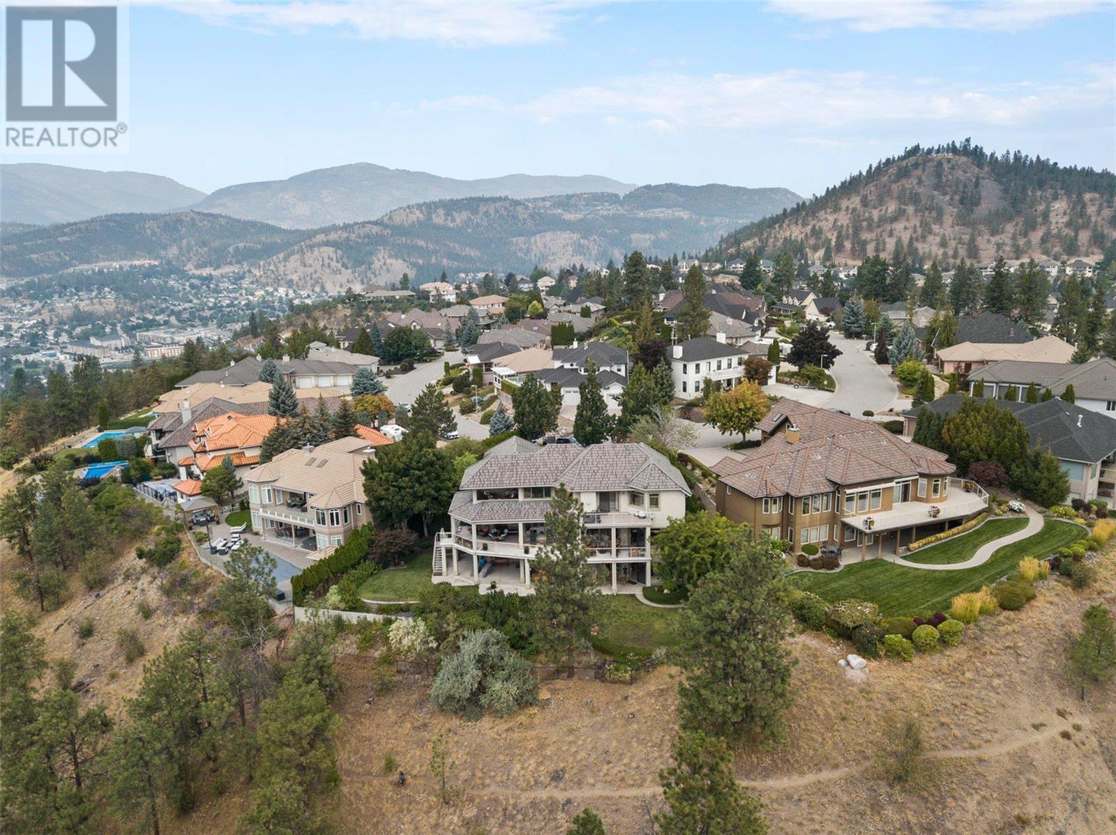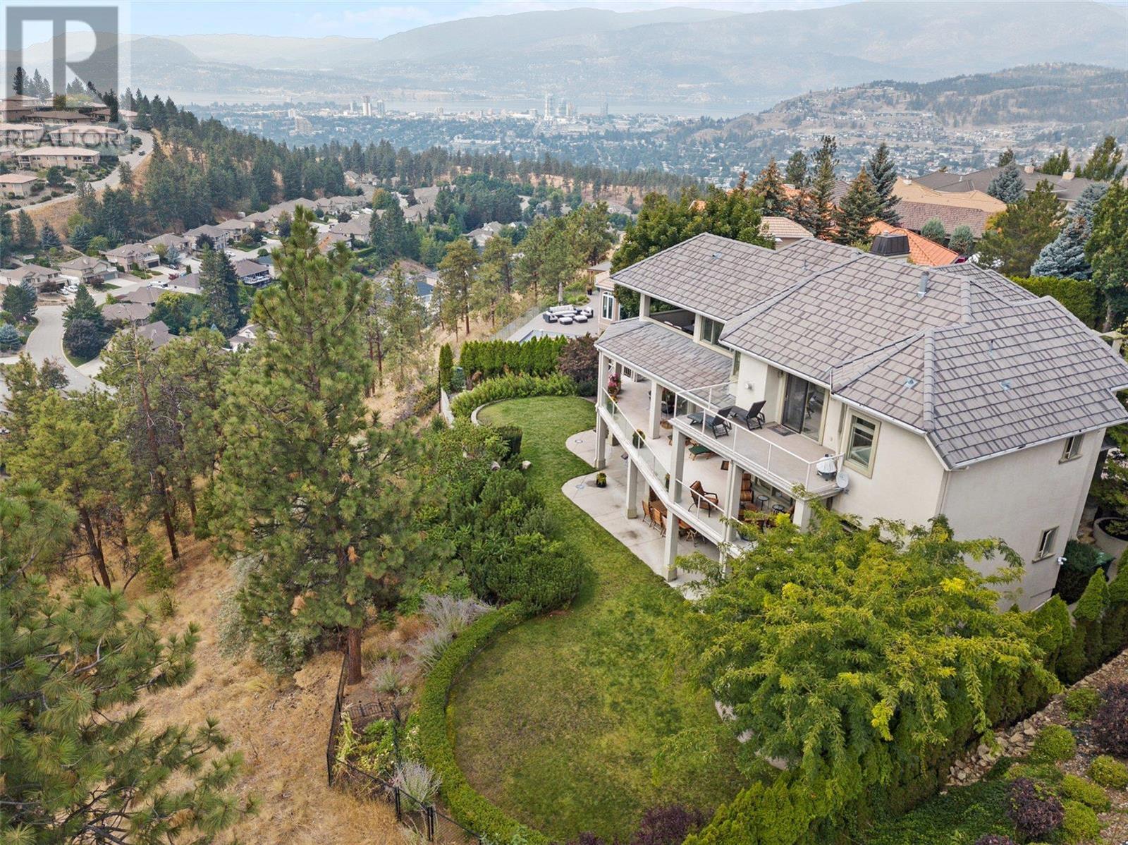Perched at the top of Skeena Drive, and we mean right at the top, this breathtaking 4,385 SQFT home offers unparalleled luxury. Enjoy stunning sunsets and breathtaking sunrises from the comfort of one of the two covered decks. The expansive windows throughout the home provide unobstructed views of the valley, the lake, and twinkling cityscape. A triple garage and abundant parking are afforded by the over 1/4 acre lot. Where do you find this size lot in the centre of town? Inside, 4 bedrooms and 5 bathrooms provide comfort and convenience. Indulge your passions in the ""over the top"" 3000+ bottle wine room. Speaking of over the top, the home has a tile roof. The gourmet kitchen is perfect for culinary experiences. It featuring top-of-the-line appliances, premium finishes, a continental sized island, and a supremely functional layout. The adjacent butler's pantry provides additional storage and prep space, ensuring you're fully equipped to entertain. Every important room in the home has a fabulous view - it was designed that way. Additional features include a spa-like master en-suite, a home office, gardens and landscaping that just adds to the sense of beauty and then of course there is the meticulous craftsmanship throughout which includes built ins and really unique high end touches. There is a small kitchenette in the basement for additional possibilities. Experience elevated living with all the urban amenities, schools, and parks within reach. (id:22211)