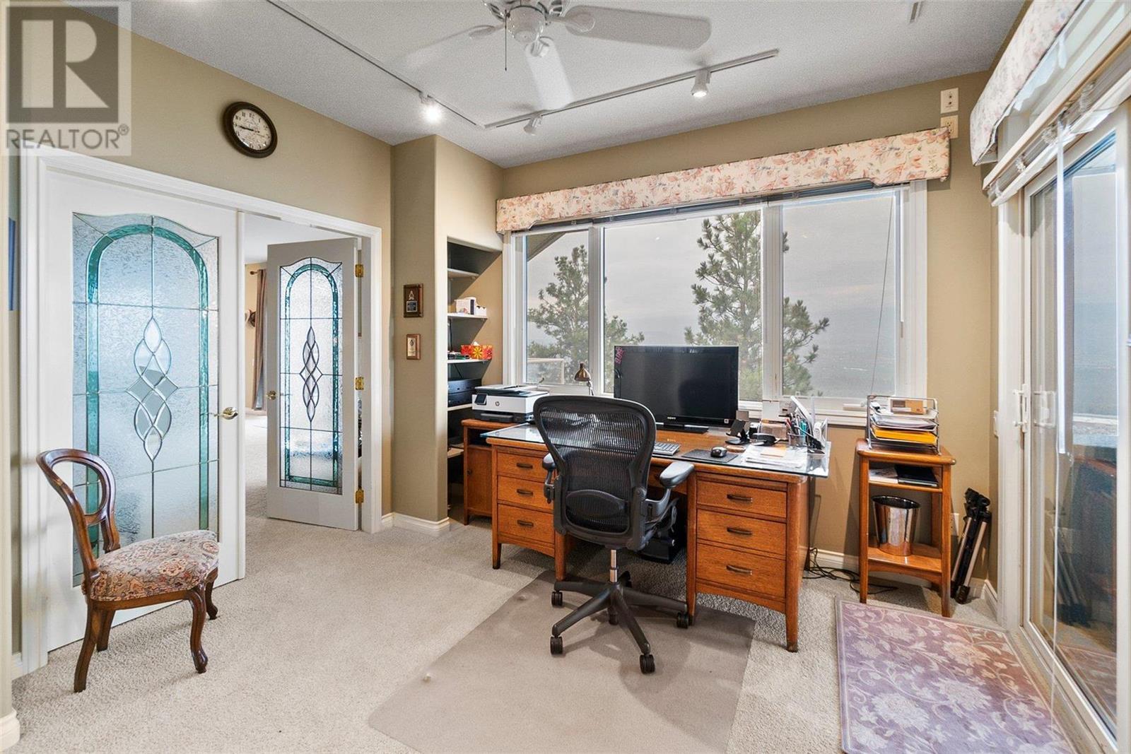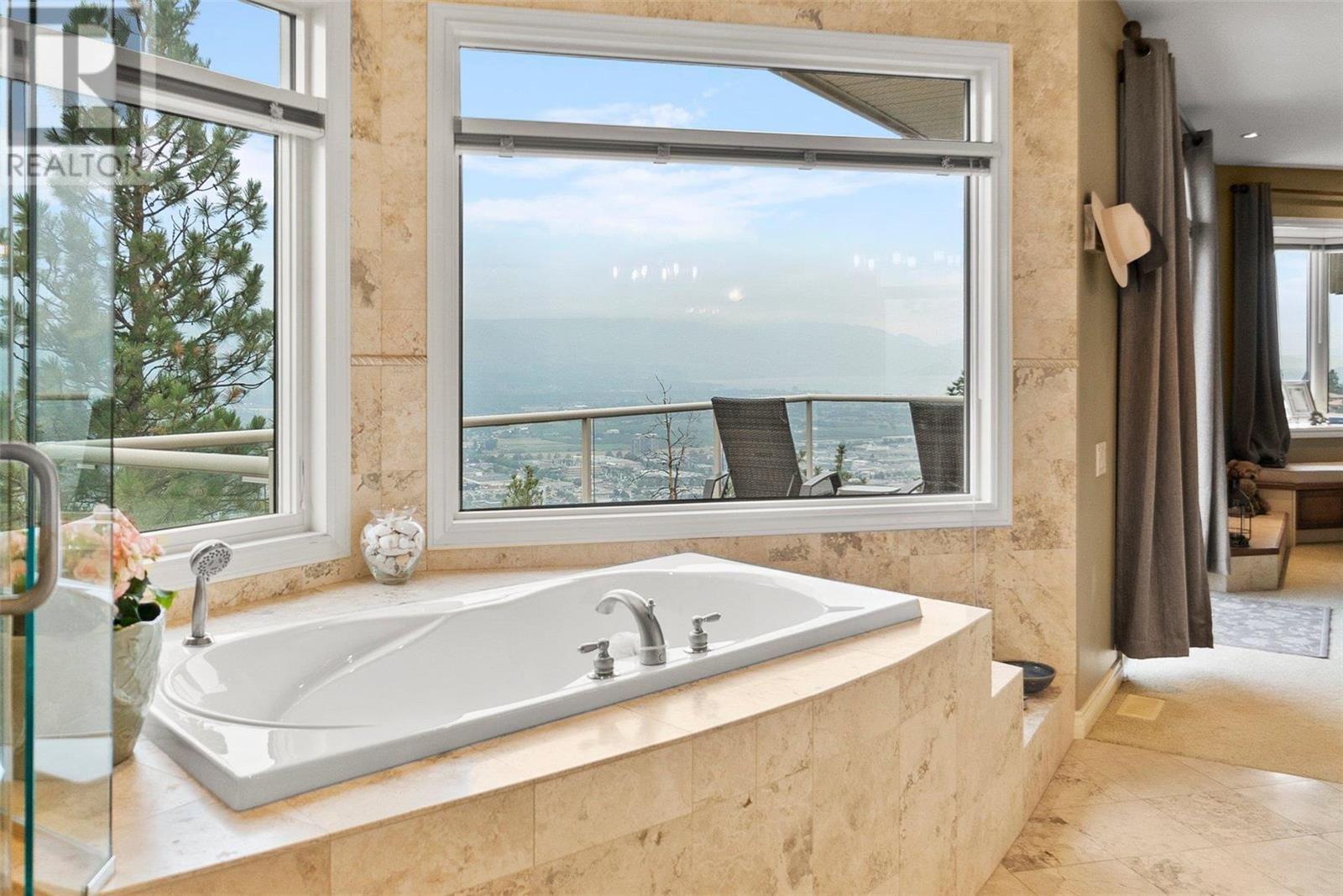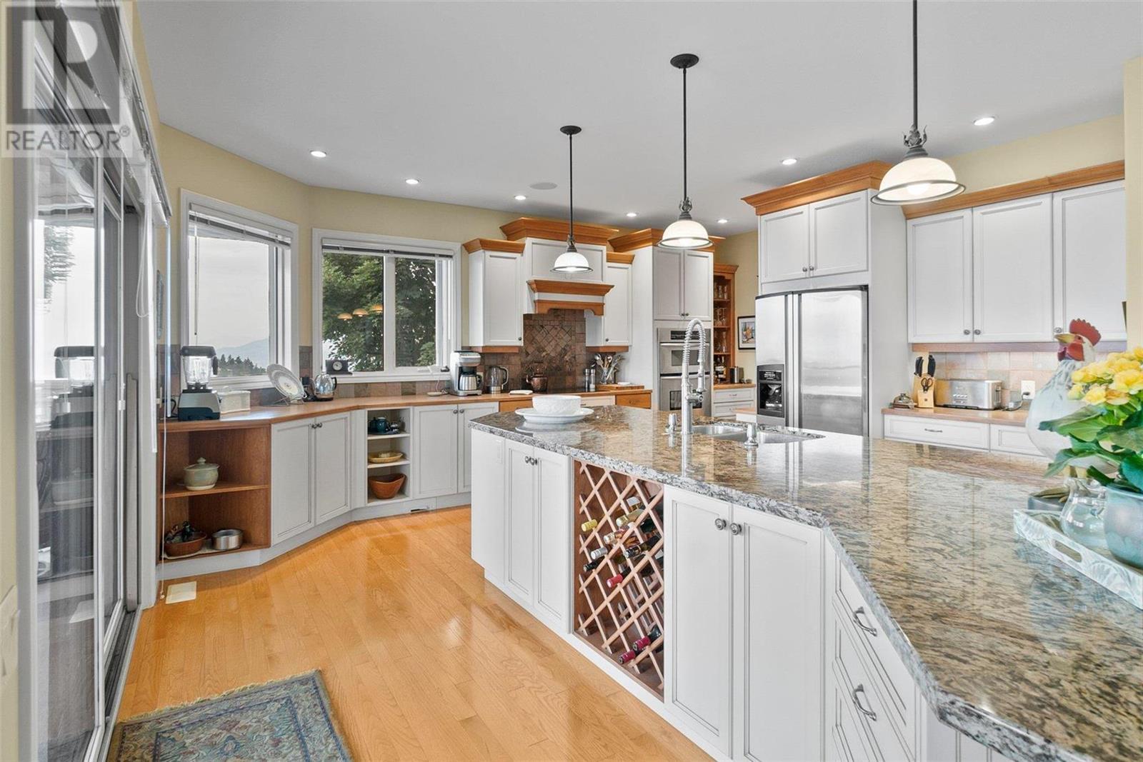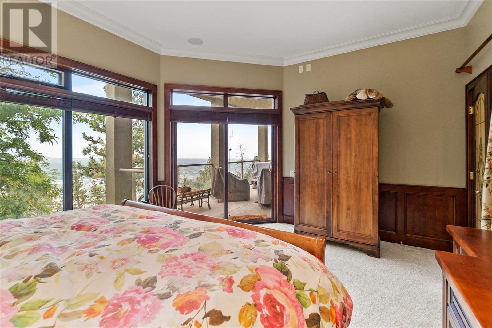 Perched at the top of Skeena Drive, and we mean right at the top, this breathtaking 4,385 SQFT home offers unparalleled luxury. Enjoy stunning sunsets and breathtaking sunrises from the comfort of one of the two covered decks. The expansive windows throughout the home provide unobstructed views of the valley, the lake, and twinkling cityscape. A triple garage and abundant parking are afforded by the over 1/4 acre lot. Where do you find this size lot in the centre of town? Inside, 4 bedrooms and 5 bathrooms provide comfort and convenience. Indulge your passions in the ""over the top"" 3000+ bottle wine room. Speaking of over the top, the home has a tile roof. The gourmet kitchen is perfect for culinary experiences. It featuring top-of-the-line appliances, premium finishes, a continental sized island, and a supremely functional layout. The adjacent butler's pantry provides additional storage and prep space, ensuring you're fully equipped to entertain. Every important room in the home has a fabulous view - it was designed that way. Additional features include a spa-like master en-suite, a home office, gardens and landscaping that just adds to the sense of beauty and then of course there is the meticulous craftsmanship throughout which includes built ins and really unique high end touches. There is a small kitchenette in the basement for additional possibilities. Experience elevated living with all the urban amenities, schools, and parks within reach. (id:22211)