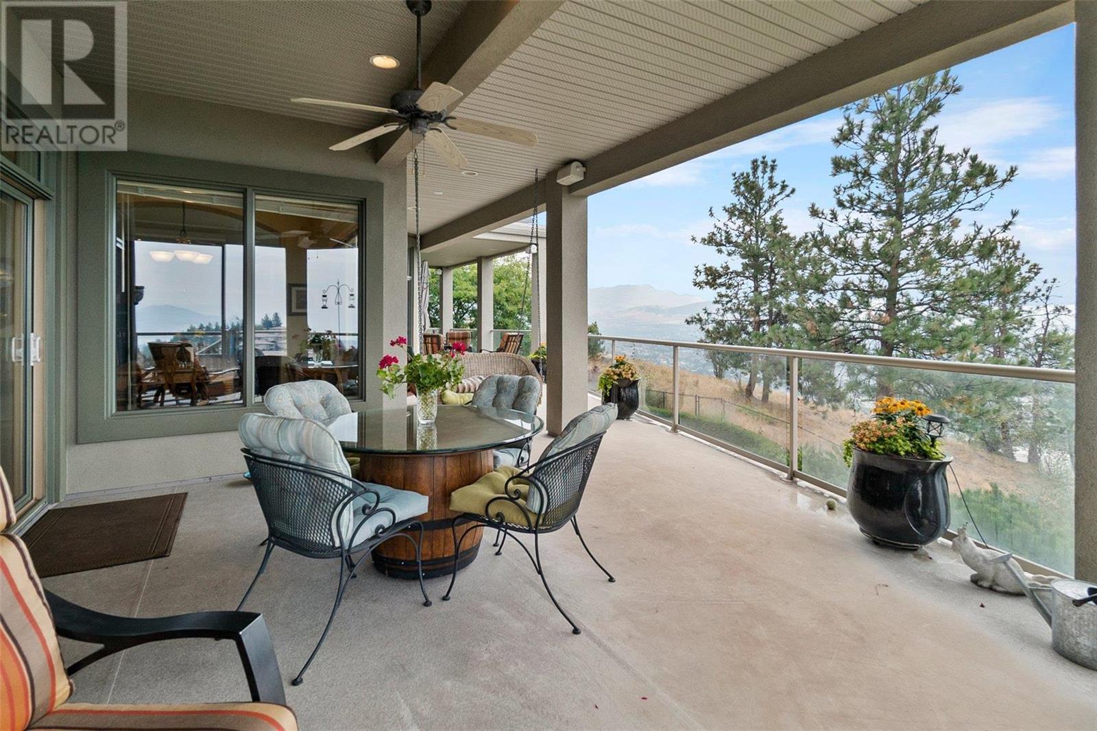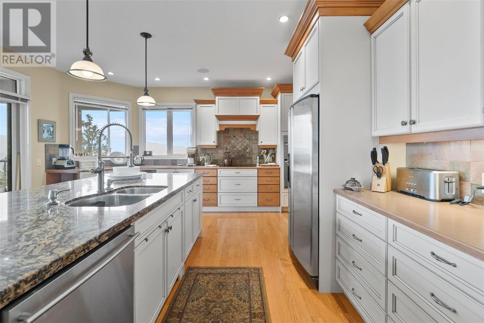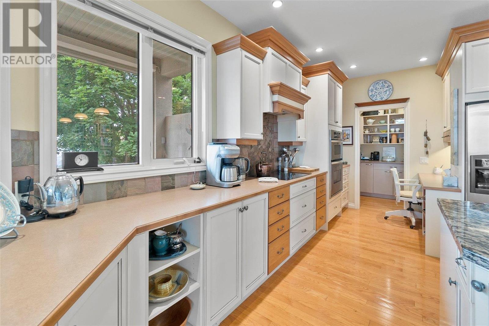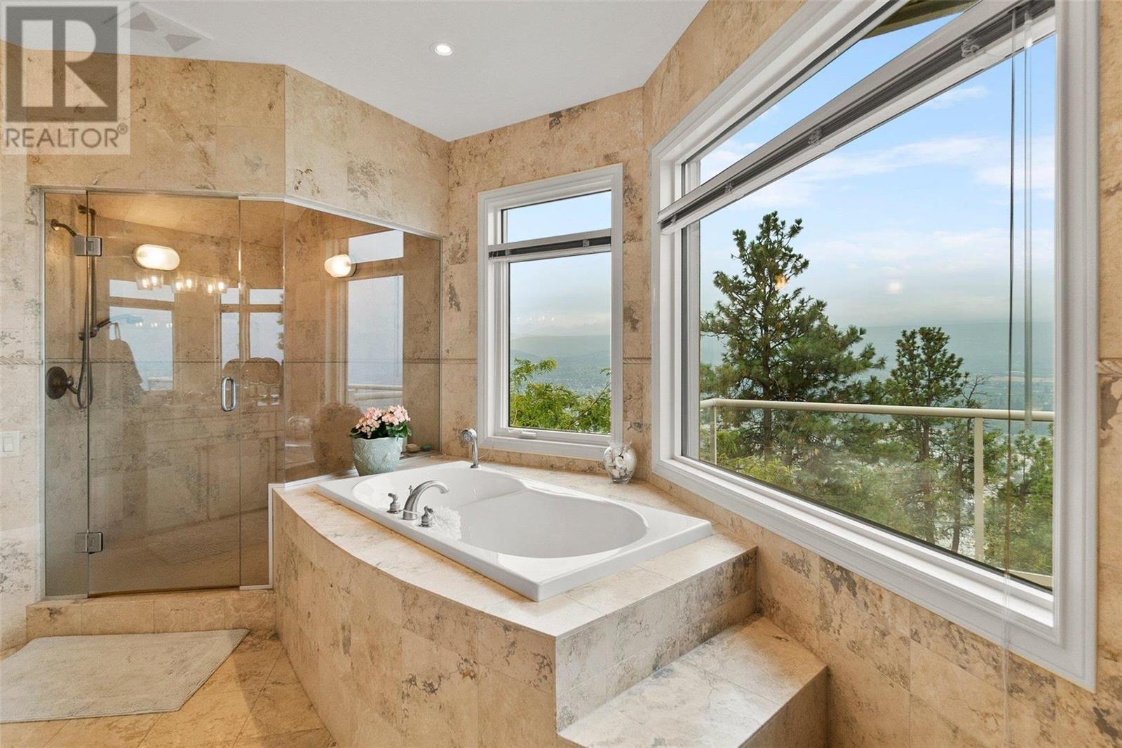 Perched at the top of Skeena Drive, and we mean right at the top, this breathtaking 4,385 SQFT home offers unparalleled luxury. Enjoy stunning sunsets and breathtaking sunrises from the comfort of one of the two covered decks. The expansive windows throughout the home provide unobstructed views of the valley, the lake, and twinkling cityscape. A triple garage and abundant parking are afforded by the over 1/4 acre lot. Where do you find this size lot in the centre of town? Inside, 4 bedrooms and 5 bathrooms provide comfort and convenience. Indulge your passions in the ""over the top"" 3000+ bottle wine room. Speaking of over the top, the home has a tile roof. The gourmet kitchen is perfect for culinary experiences. It featuring top-of-the-line appliances, premium finishes, a continental sized island, and a supremely functional layout. The adjacent butler's pantry provides additional storage and prep space, ensuring you're fully equipped to entertain. Every important room in the home has a fabulous view - it was designed that way. Additional features include a spa-like master en-suite, a home office, gardens and landscaping that just adds to the sense of beauty and then of course there is the meticulous craftsmanship throughout which includes built ins and really unique high end touches. There is a small kitchenette in the basement for additional possibilities. Experience elevated living with all the urban amenities, schools, and parks within reach. (id:22211)