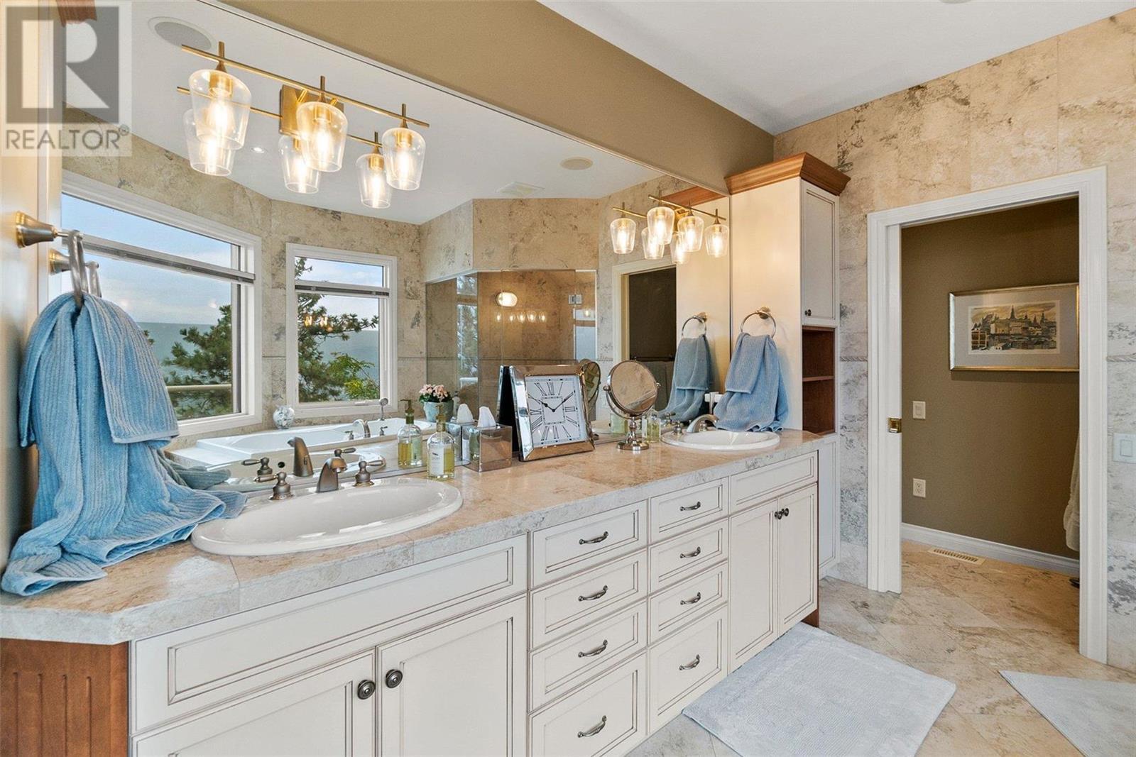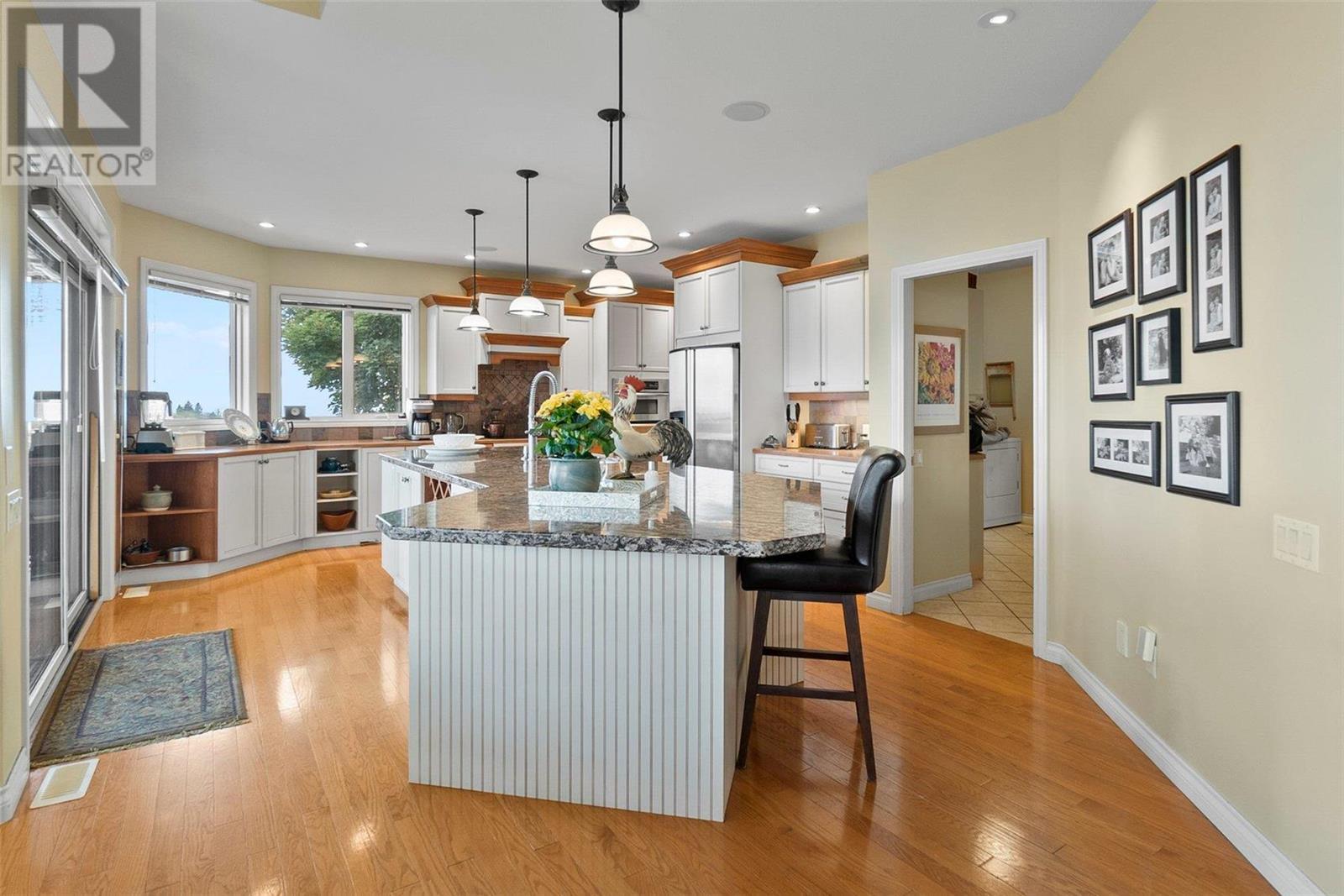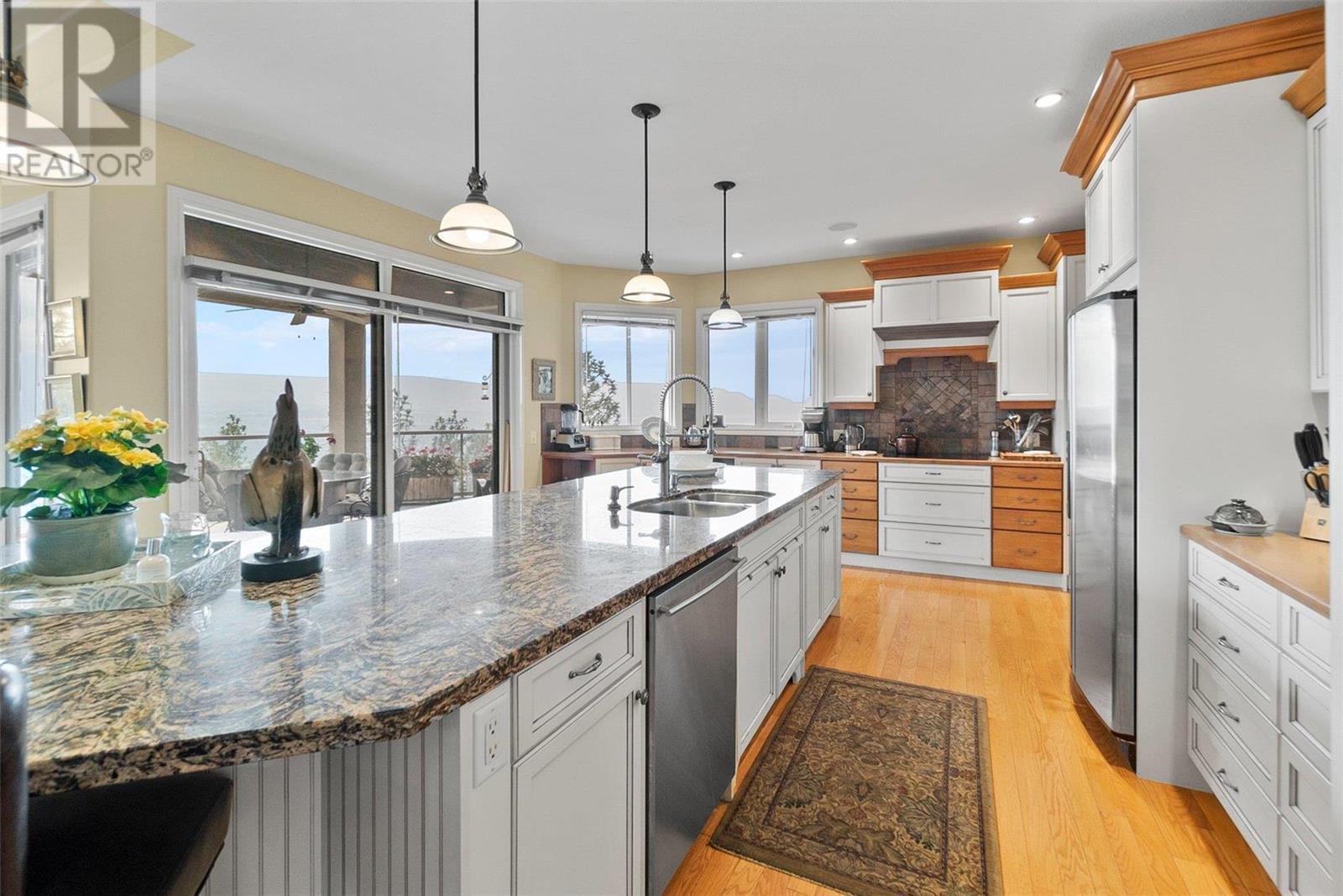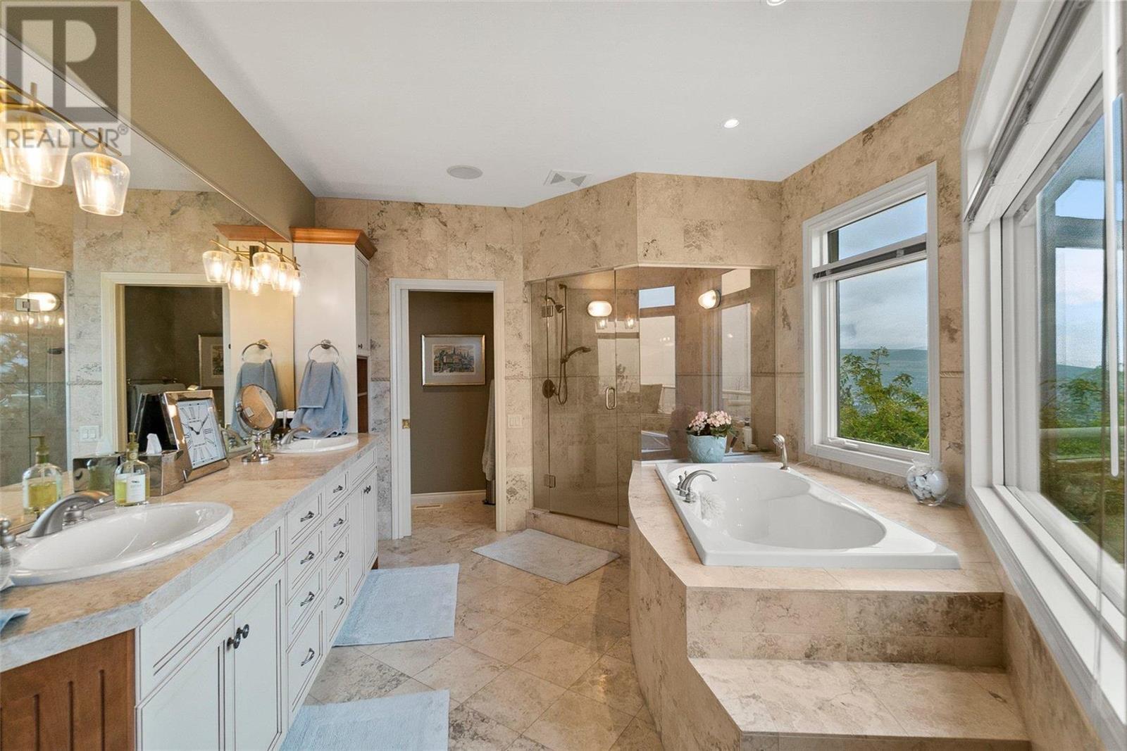 Perched at the top of Skeena Drive, and we mean right at the top, this breathtaking 4,385 SQFT home offers unparalleled luxury. Enjoy stunning sunsets and breathtaking sunrises from the comfort of one of the two covered decks. The expansive windows throughout the home provide unobstructed views of the valley, the lake, and twinkling cityscape. A triple garage and abundant parking are afforded by the over 1/4 acre lot. Where do you find this size lot in the centre of town? Inside, 4 bedrooms and 5 bathrooms provide comfort and convenience. Indulge your passions in the ""over the top"" 3000+ bottle wine room. Speaking of over the top, the home has a tile roof. The gourmet kitchen is perfect for culinary experiences. It featuring top-of-the-line appliances, premium finishes, a continental sized island, and a supremely functional layout. The adjacent butler's pantry provides additional storage and prep space, ensuring you're fully equipped to entertain. Every important room in the home has a fabulous view - it was designed that way. Additional features include a spa-like master en-suite, a home office, gardens and landscaping that just adds to the sense of beauty and then of course there is the meticulous craftsmanship throughout which includes built ins and really unique high end touches. There is a small kitchenette in the basement for additional possibilities. Experience elevated living with all the urban amenities, schools, and parks within reach. (id:22211)