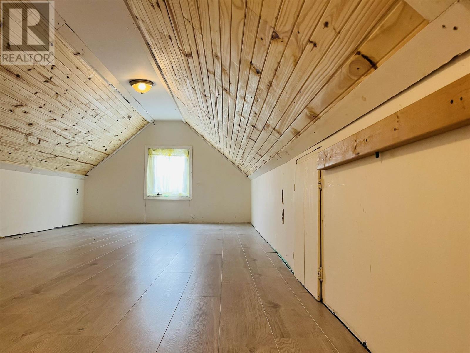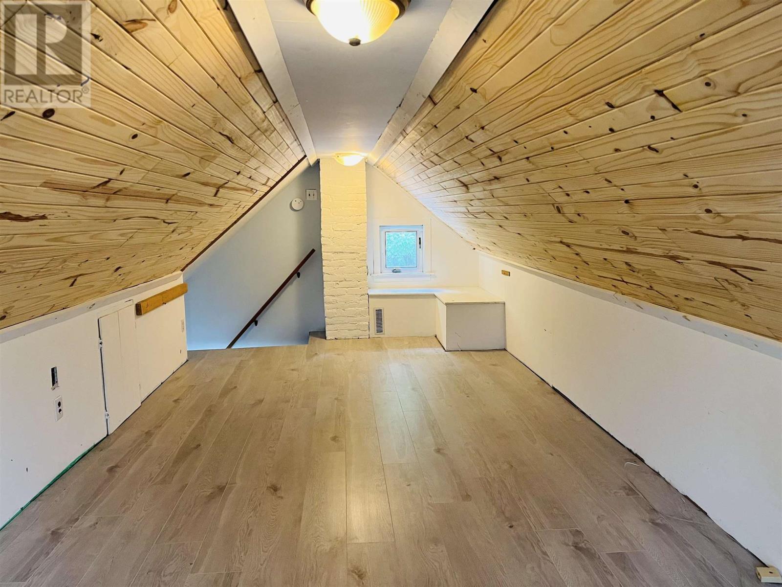 Conveniently located close to amenities, this 2 Bedroom, 1 Bath home is a great option as a starter, rental or retirement home. The exterior of the house features maintenance free vinyl siding, a newer metal roof and windows. On the main floor you will find the kitchen, updated bathroom and an open concept living room/dining room, along with the second bedroom. The Second floor has been converted into a large loft bedroom with tongue and groove pine. Bonuses include a foyer, large storage shed and a veranda that’s perfect as a summer sitting room. Possession can be quick! 2023 Taxes $1023.42 (id:22211)