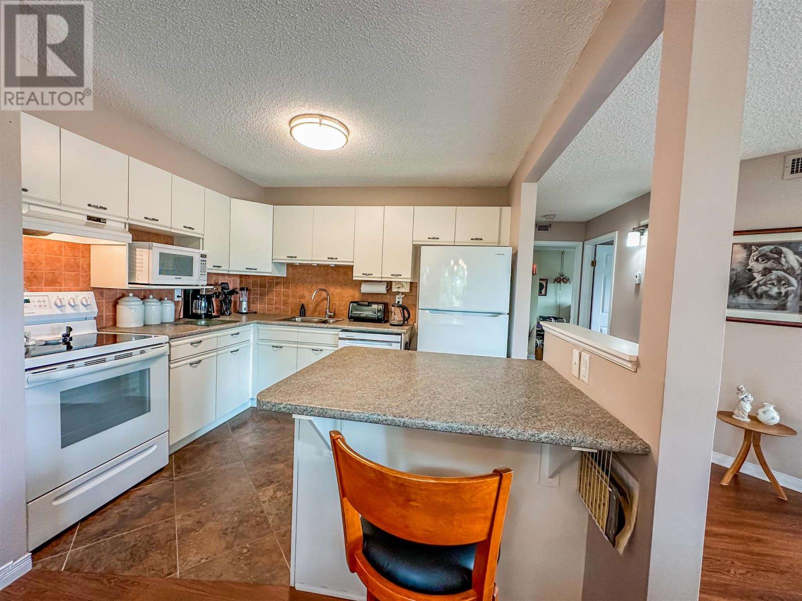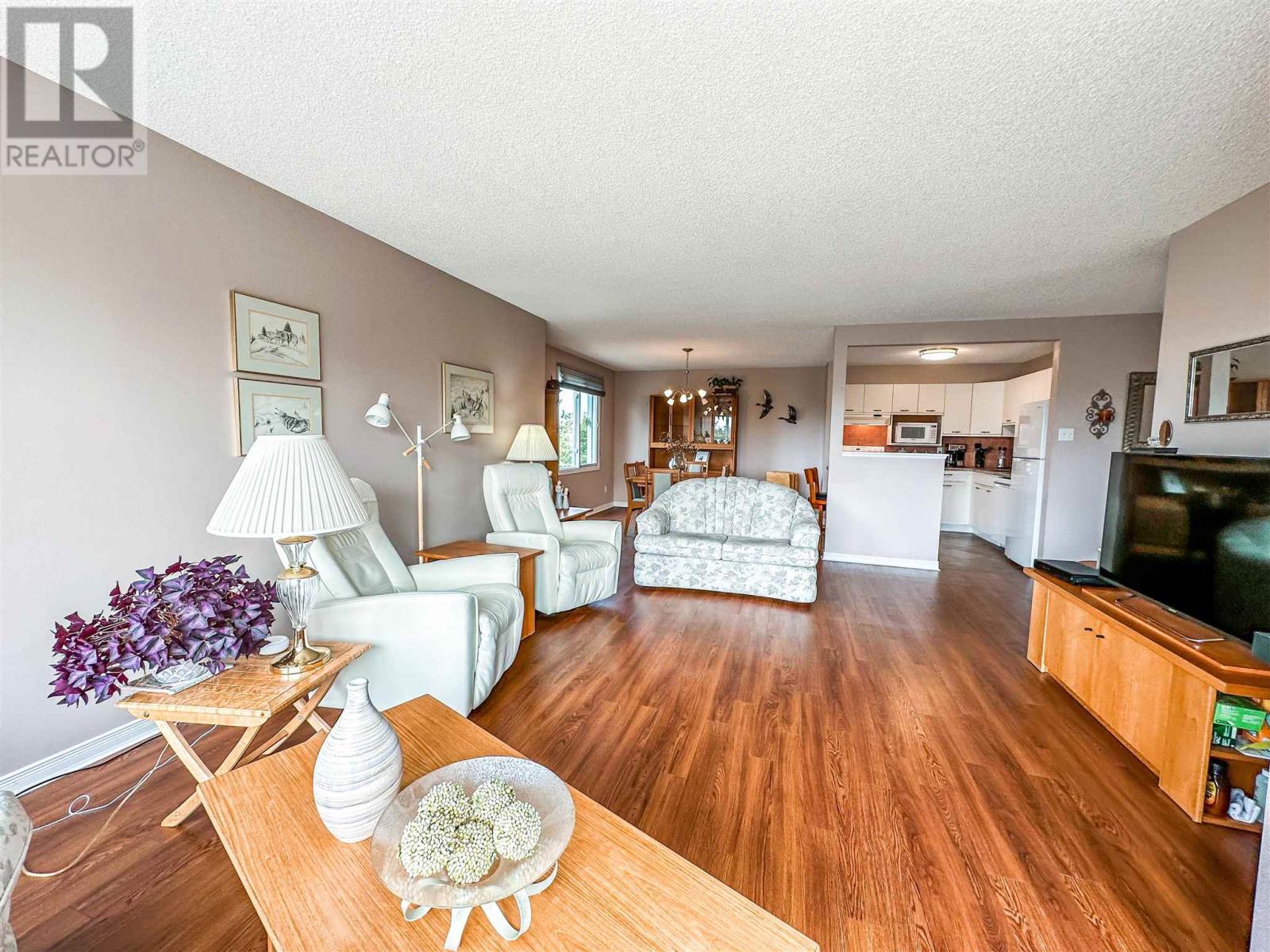 Welcome to Lakeview Condominiums! This well-cared-for third-floor condo has 2 bedrooms, 1 bathroom, a spacious kitchen and open living, dining and kitchen space within its 1096 sqft. The 2 bedrooms are spacious and bright, with good-sized closets. The bathroom has been tastefully finished, and the tub has been refitted to a walk-in. There is also a laundry and utility room with enough space for a stand-up freezer. Amenities: This unit includes 1 inside parking stall, 1 outside parking stall, 1 storage locker Walking distance to docking on Lake of The Woods, Tim Hortons, and downtown Kenora Unit Features: Furnace/AC 2 years old, upgraded appliances, the windows and siding are being redone this summer, electronic blinds in the living room. Building Features: Elevator, mail delivery, garbage/recycling, heated parking, multi-purpose room. Taxes: $4776.00 for 2022 Hydro: $60/monthly average Natural Gas: $84/equal billing Rental Items: Hot water Tank $23.19 Chattels: Fridge, stove, built in dishwasher, washer, dryer, all window coverings and all furniture Condo Fees: $660.57/month Condo Fees Include: Cable tv, internet, sewer/water, snow removal, landscaping, garbage, reserve fund contributions, common area maintenance and insurance Possession: End of August (id:22211)