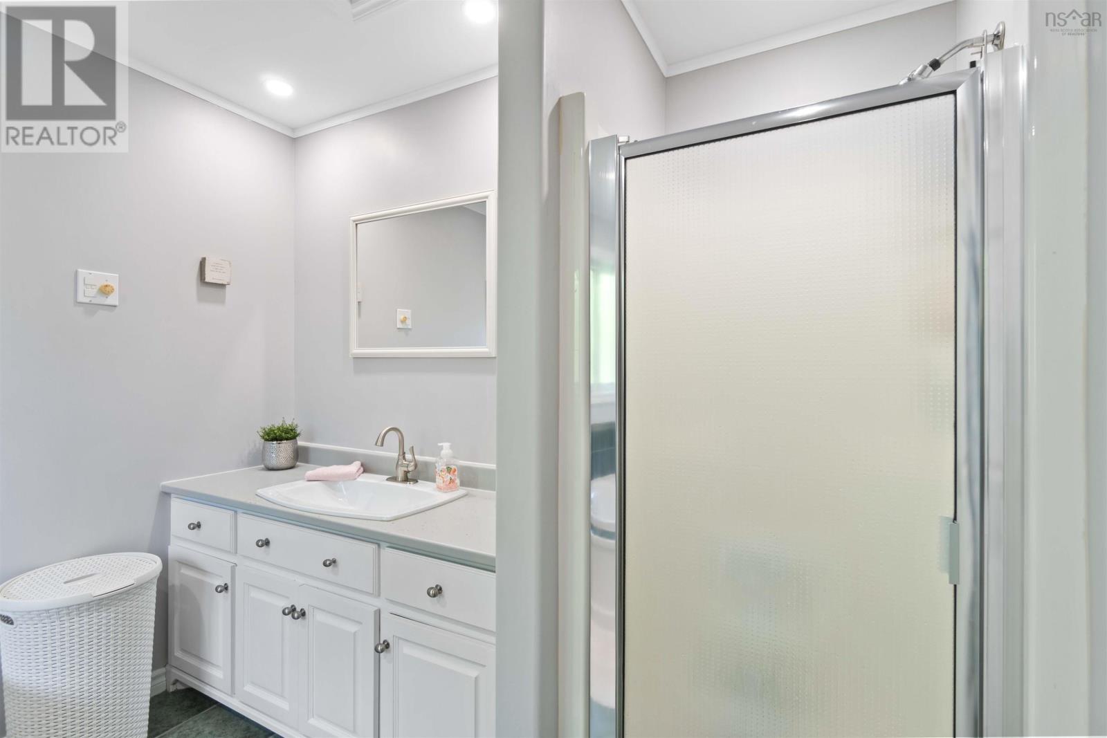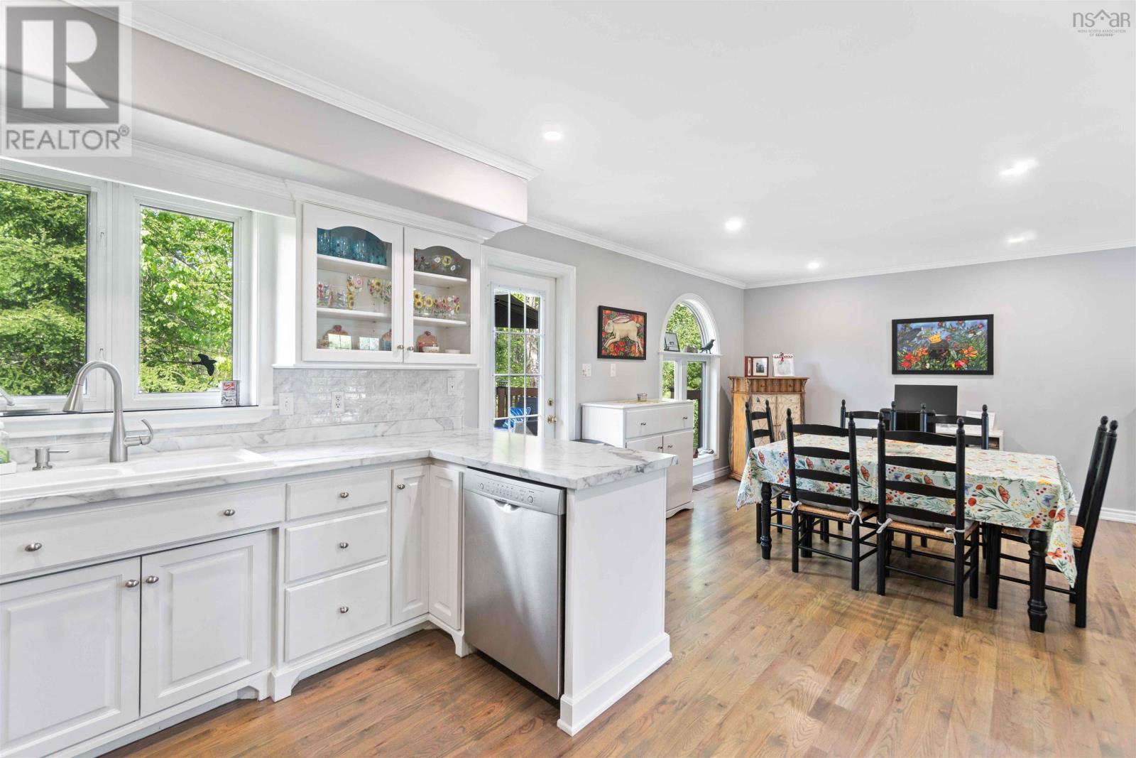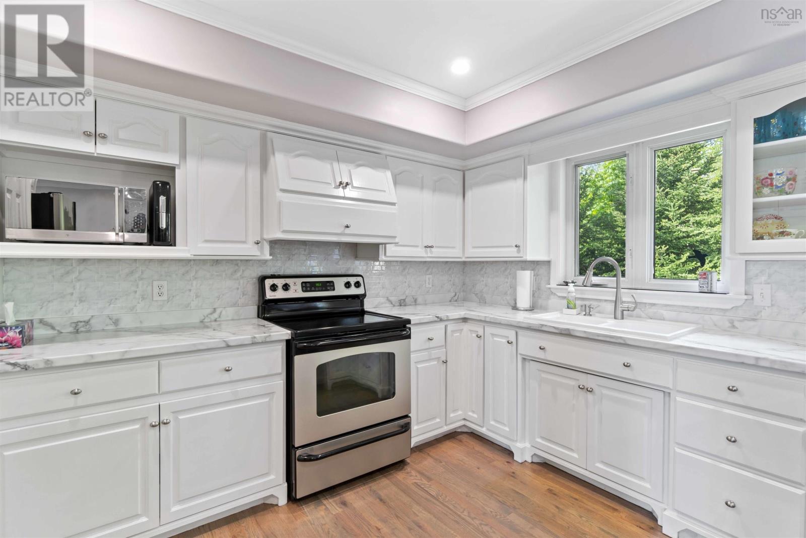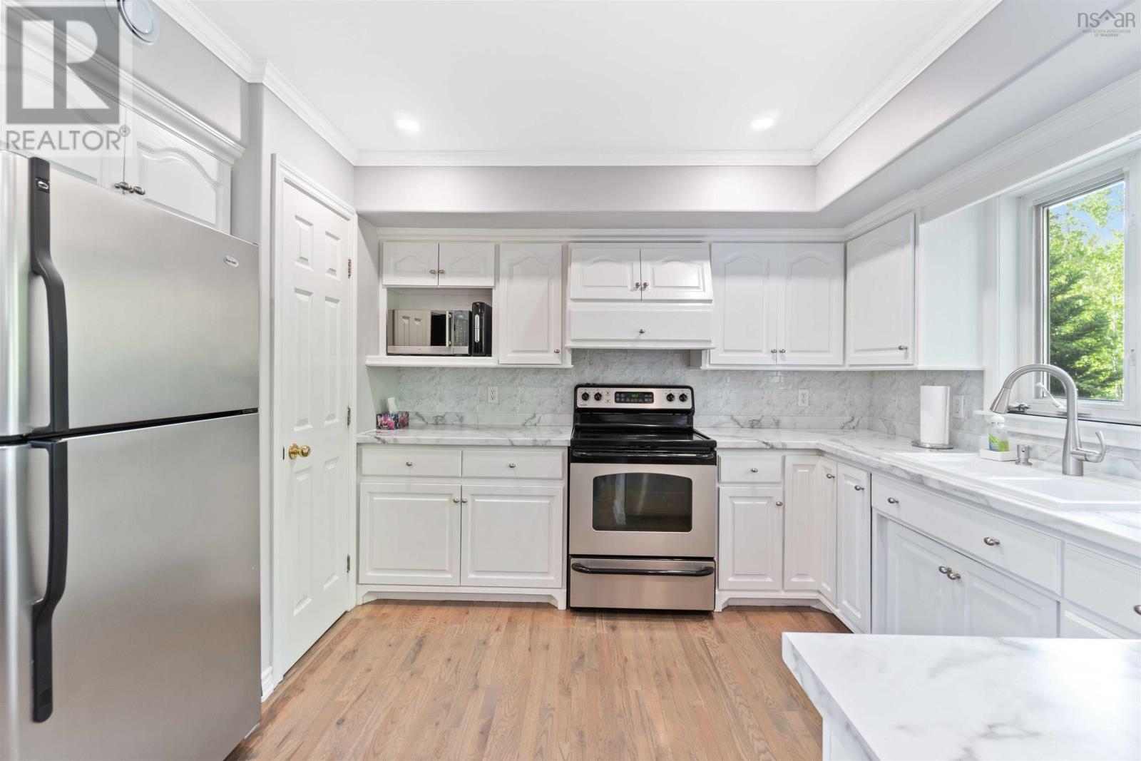 This immaculate, move in ready home is located in the very desirable McDougall Heights Subdivision in the beautiful Town of Kentville. Step in through the spacious and bright foyer and into the newly renovated, open concept Living Room, Dining Room and gorgeous Kitchen with large pantry! This space is perfect for entertaining and leads out to a private back deck and newly landscaped, tree lined backyard. On this level you will also find a very convenient half bath, a bright and spacious bedroom/office and the beautiful Primary suite complete with 8x6 walk-in-closet and 4 piece ensuite! The lower level is fully finished and where you will find the third bedroom with large windows and double closet and also has a cheater door to the second full bathroom. The bright family room on the lower level has large windows overlooking the backyard and is kept cozy by the propane fireplace. The laundry area, large utility room and built in, double car garage complete the lower level. With recent upgrades such as new front steps/landscaping, Kitchen countertops, fresh paint throughout, new flooring, toilets, sinks, and all in a fabulous location within walking distance to an excellent Elementary school, town amenities, parks, walking trails, etc. this home is sure to please! Contact your agent of choice for a private showing today! (id:22211)