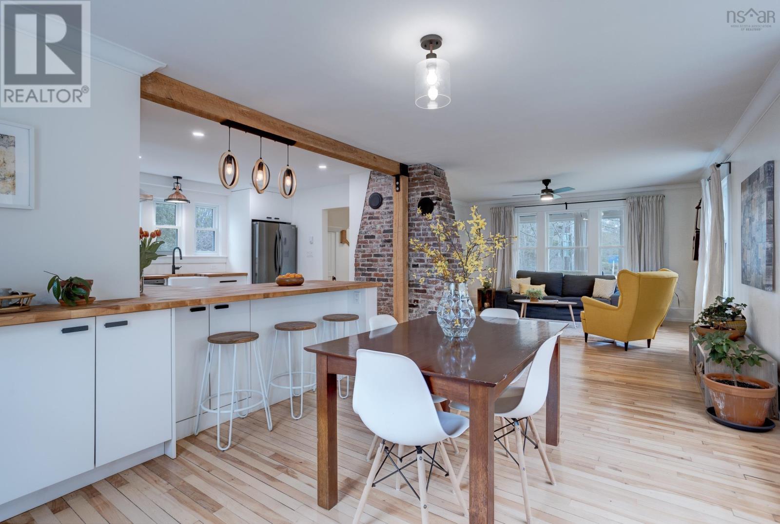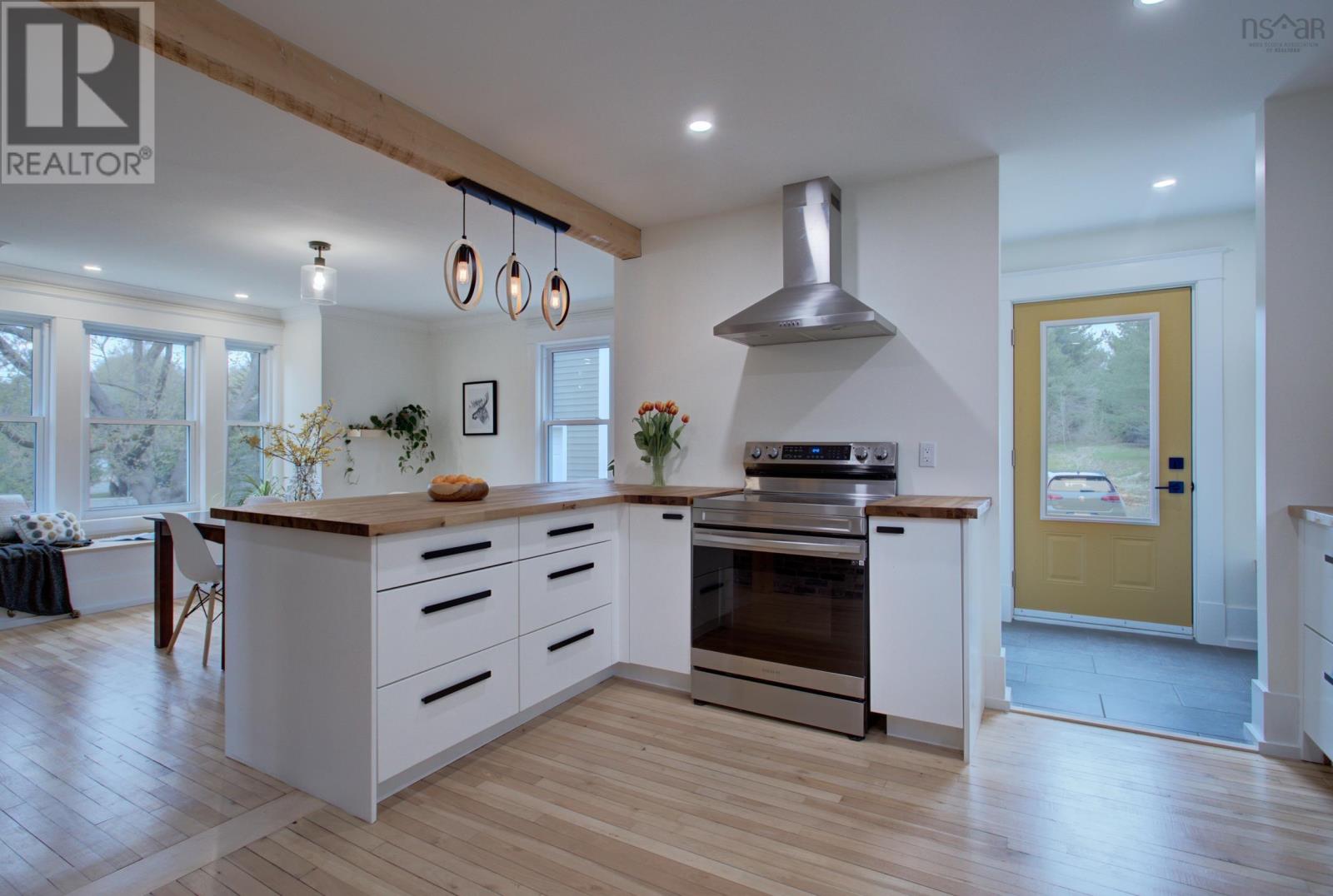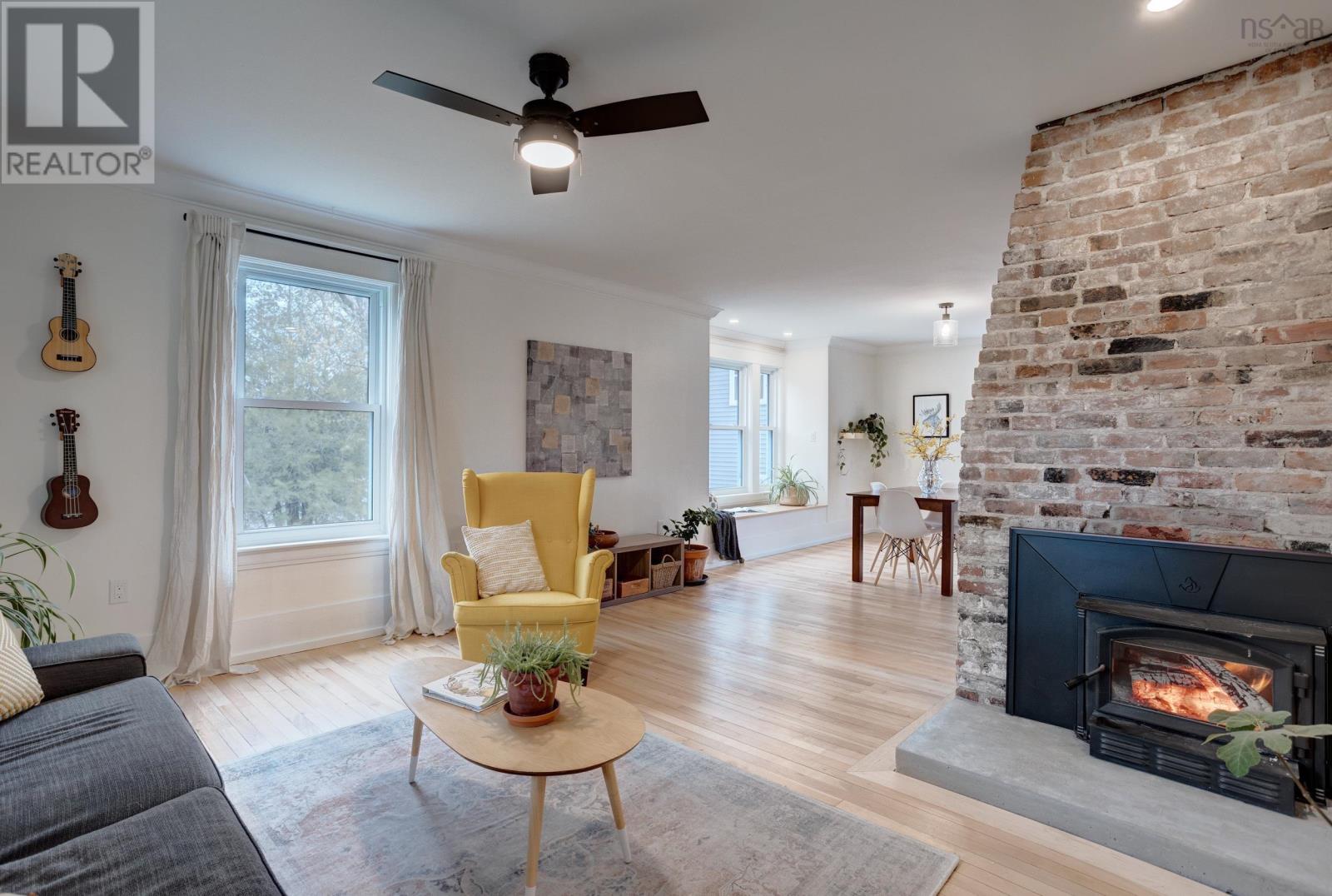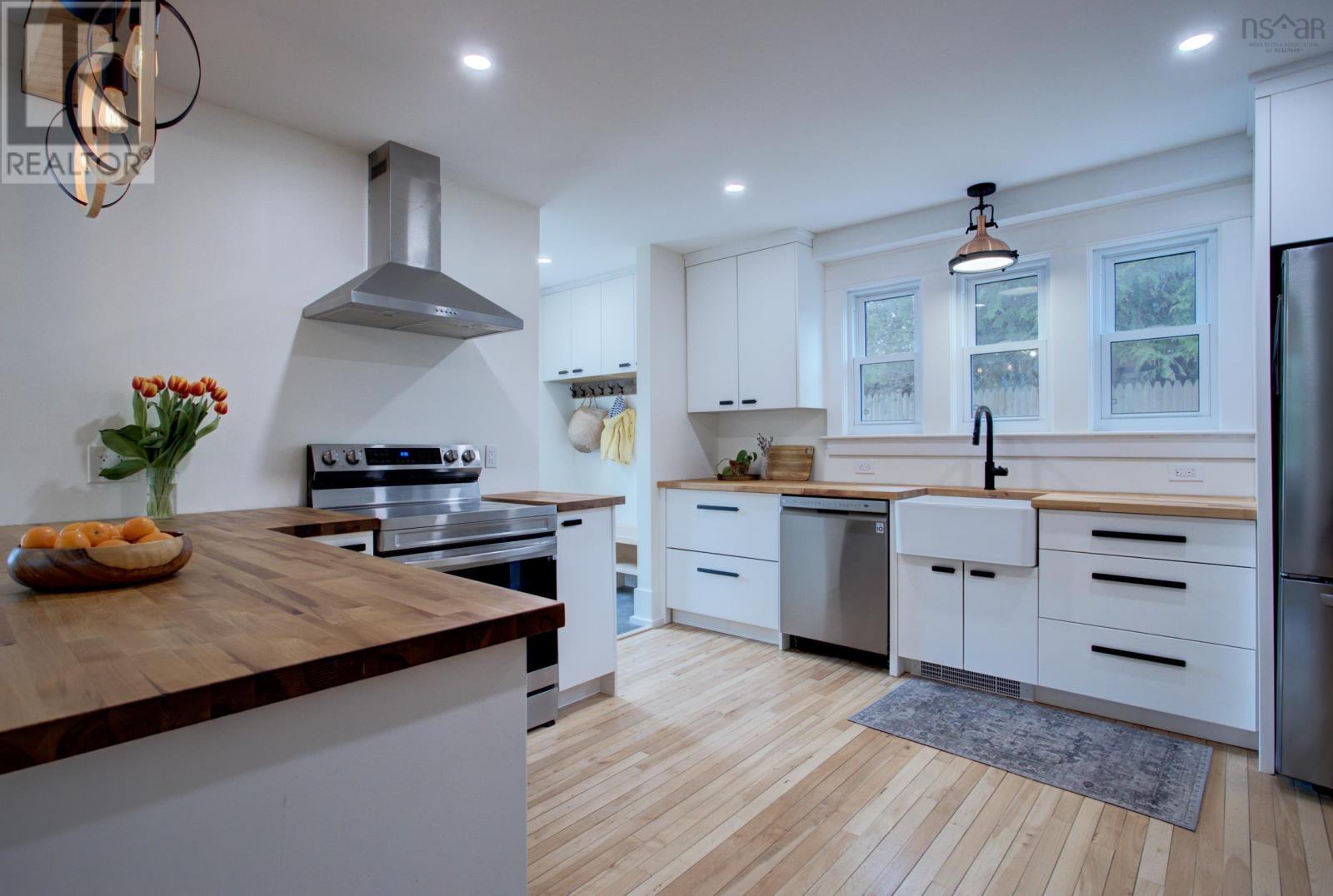 Welcome to 3 Nichols Avenue, a fully restored character home in Kentville. Every room in this charming valley home has been updated since 2020. Walking into the home, you're greeted with a charming sunroom, drenched in sunlight and perfect for reading, board games, or simply relaxing in, all year round. Enjoy all new electrical throughout, an updated heating system, new plumbing and sewer line, two renovated bathrooms, brand new custom kitchen with butcher block counters and stainless steel appliances, and the list goes on. The character of the home still remains with it's original (but refinished) 100 year old hardwood floors, gorgeous brick wood-burning fireplace with new insert and stainless steel liner. The main floor is bright, welcoming and functional. Upstairs, the bedroom floor is calm, quiet and serene. Exposed brick, black hardware, and penny-tile bathroom with soaker tub provide a tasteful and timeless look. You'll be impressed - but that's just the inside! Outside, a very large backyard is home to fruit trees - 14 in total - including peaches, plums, apricots, apples and more. Various berry bushes and raised garden beds make this an absolute Gardener's Paradise. An acre of land in total, most of it cleared, leads to a partially wooded section, perfect for playing and exploring under a canopy of mature trees. The double garage (23' x 26' with 14' ceilings) is insulated and finished, complete with a custom workbench with heat pump sits just steps from the back door of the house. Think of all the possibilities. 3 Nichols Ave is not one to be over looked - showings start Friday! (id:22211)