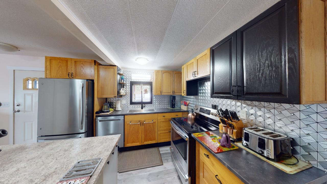 This will check all the boxes! Peaceful location backing onto the Rails to Trails and an easy-maintenance yard. You can park at least 6 vehicles in your front yard plus you have an attached garage with a heated workshop. The home features 1536 square feet of beautiful living space featuring a gorgeous new kitchen with top of the line appliances, a 23 x 13 ft living room will provide comfort and space, 3 bedrooms, 2 baths with a claw foot tub in your spa-like ensuite,, main floor laundry room and a huge screened in covered porch over the garage with gas for your barbeque for 3 season entertaining. Downstairs is a large rec room with cozy wood stove and loads of storage! Close to 2 golf courses & an elementary school. Ski hill and the airport are just 10 minutes away! (id:22211)