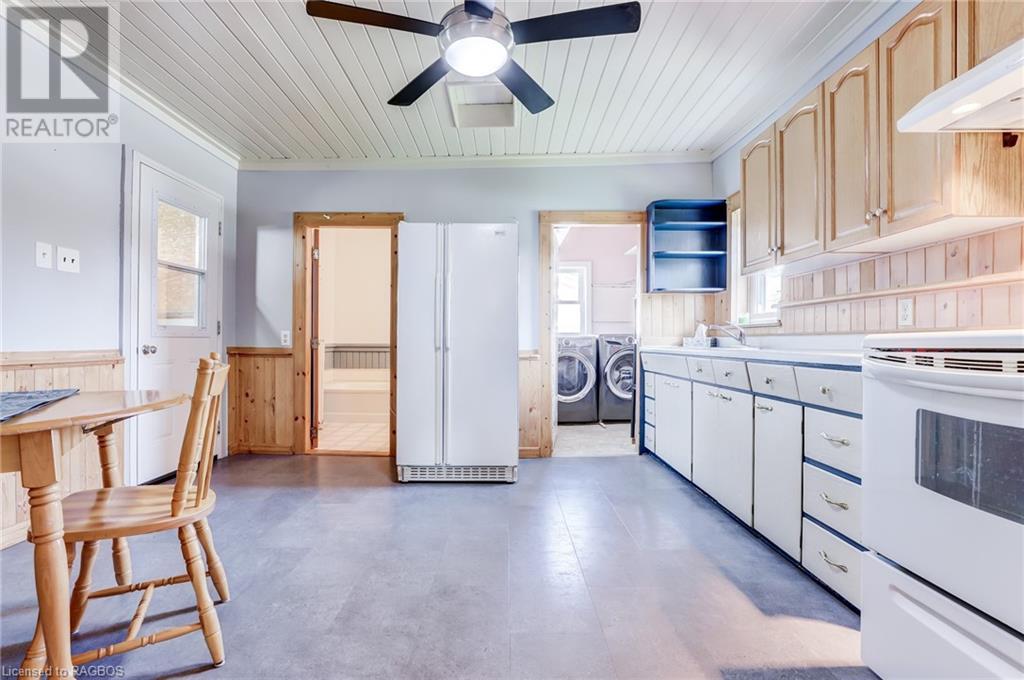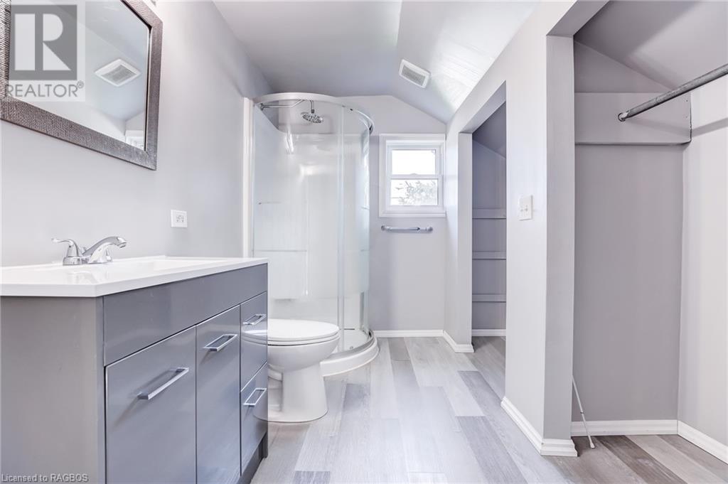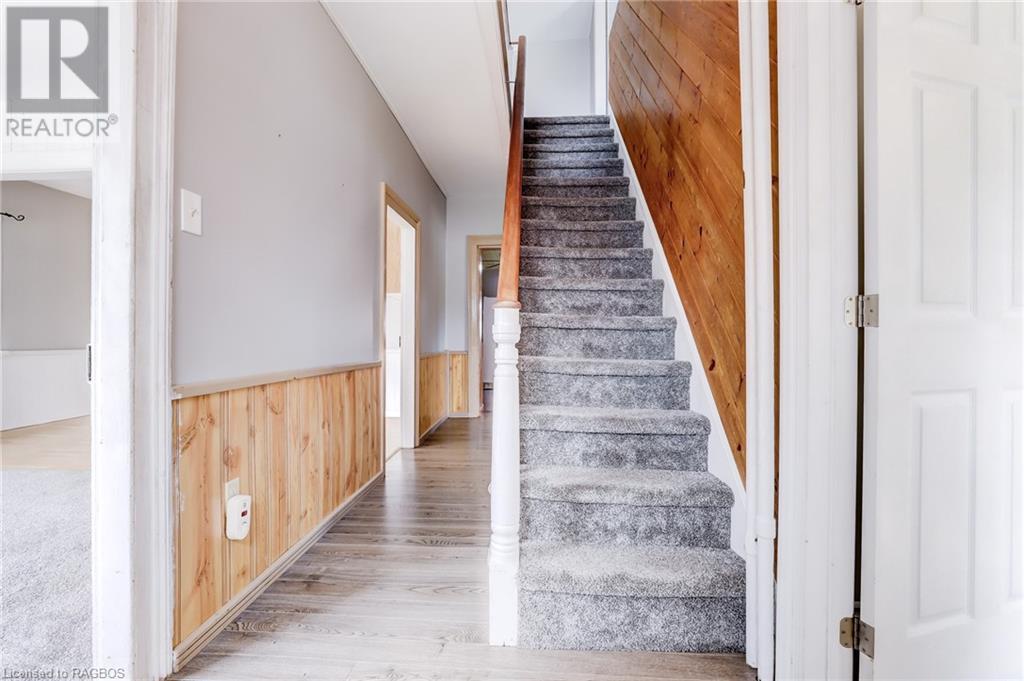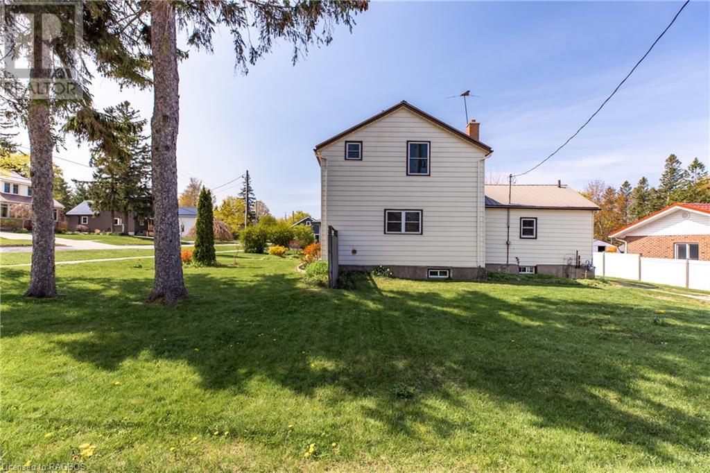 Great location for this Century home featuring 3 + 1 bedrooms and 2 baths, located a few blocks from lakeside Downtown Kincardine and a short walk to Lake Huron. Main floor has all newer flooring throughout, an eat-in kitchen with a separate dining room and a nice-sized living room with large windows to allow for plenty of natural light. Two additional rooms on this floor can be utilized for a home office and a primary bedroom or family room/den. The laundry room and a 3 piece bath are also conveniently located on the main floor and a large mudroom off the side entrance will appeal to many. Upstairs are 3 bedrooms with newer carpets (2020) and an additional 3 piece bathroom, which was updated in 2020. The Natural Gas Meter is at the house and just needs to be connected. There is an unfinished basement for storage. You will enjoy the private fenced yard with patio and the landscaped gardens surrounding the home. This is a good opportunity for a first time home buyer or for an investor. Come make this home your own! (id:22211)