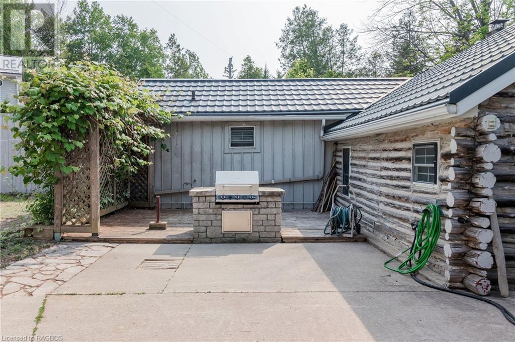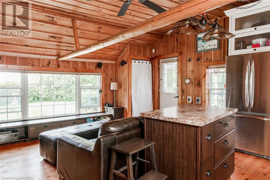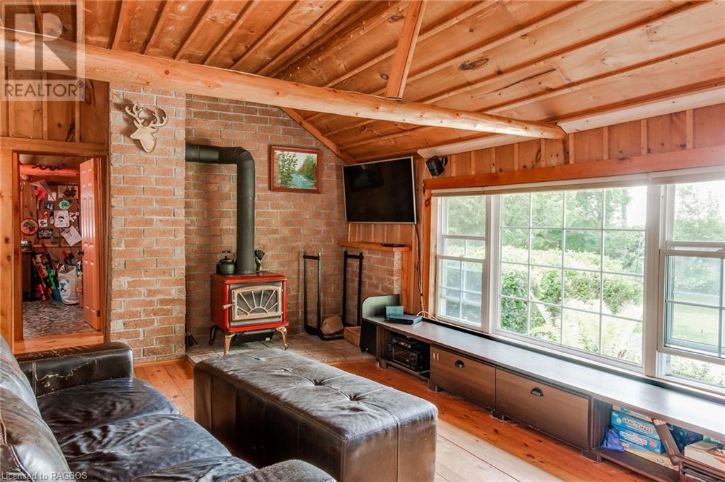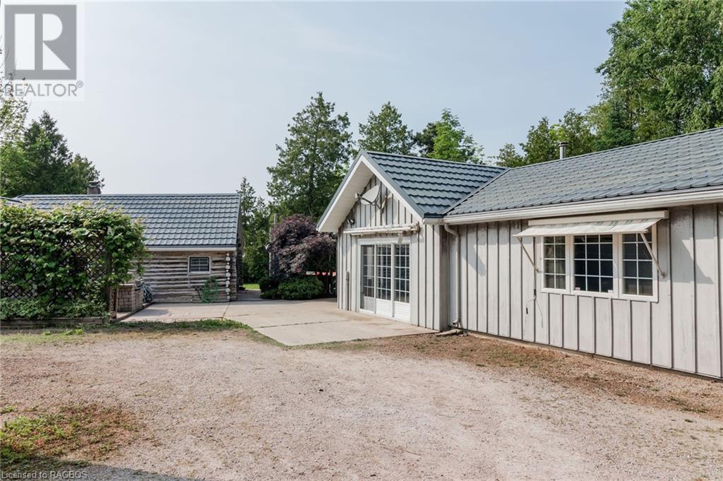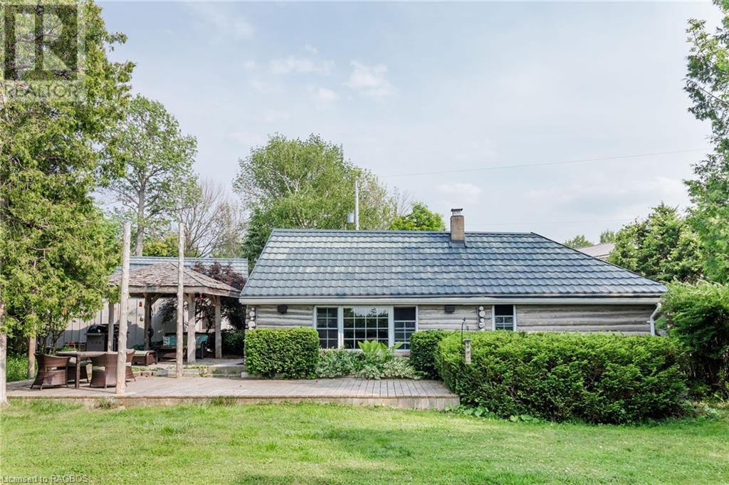 Welcome to 126 Sunset Drive in Kincardine Township; 4.94 acres of peaceful paradise located just steps from the shores of beautiful Lake Huron (waterfront with road between). This authentic log cabin-style home has been updated throughout the years, and can be used effectively as a home or cottage. The cabin provides an open-concept living/dining/kitchen space with cozy wood-burning stove, and large westward-facing windows that deliver an abundance of natural light. There are two spacious bedrooms, as well as an efficient laundry area, and a full 4-piece bathroom. This unique property also offers a winterized secondary structure, heated with a wood stove, that comfortably houses a kitchenette, living room, and a generously-sized bedroom with 3-piece ensuite. Other outbuildings on the property include a functional 10x10 storage shed, and a large detached garage/shop with concrete floor, wired for electricity, and heated with a wood stove. This stunning piece of land is full of trails and breathtaking views of Saugeen Shores’ infamous sunsets; the ambient outdoor fireplace and concrete patio space is perfect for entertaining. Whether you are searching for a private primary residence, a tranquil lakeside getaway, or an investment opportunity, 126 Sunset Drive presents a ton of opportunity! (id:22211)