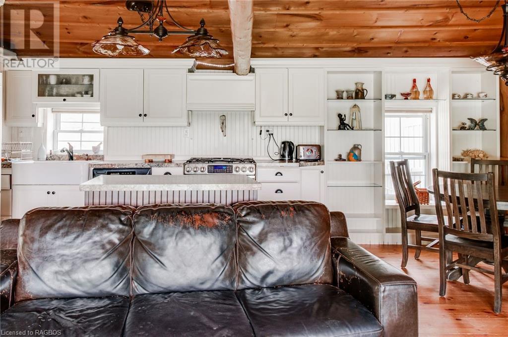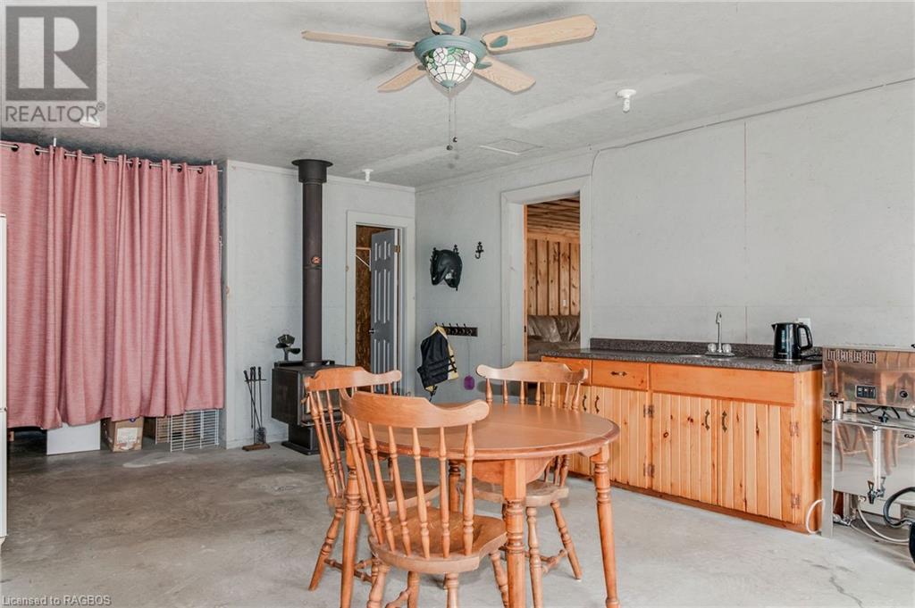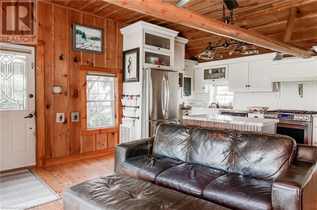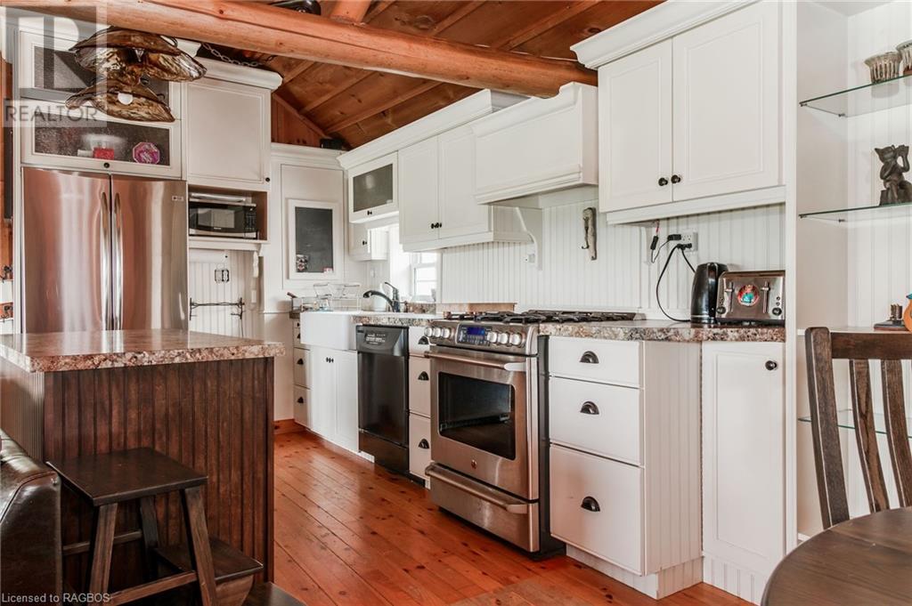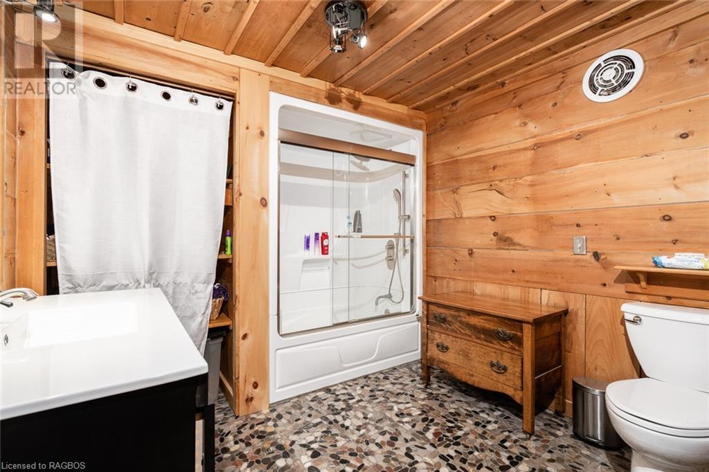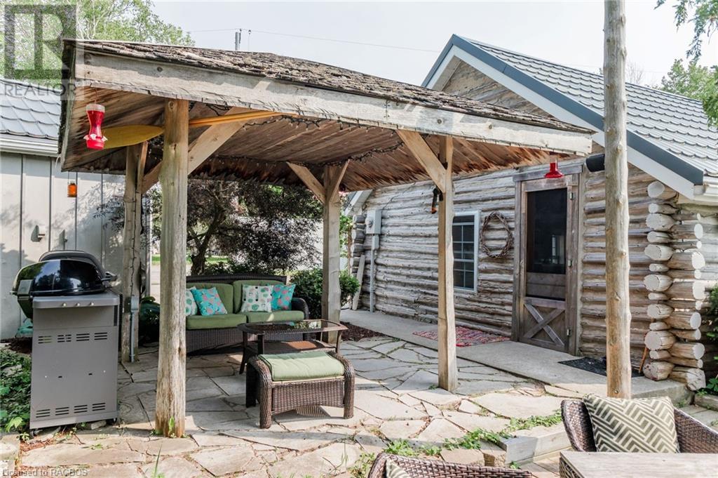 Welcome to 126 Sunset Drive in Kincardine Township; 4.94 acres of peaceful paradise located just steps from the shores of beautiful Lake Huron (waterfront with road between). This authentic log cabin-style home has been updated throughout the years, and can be used effectively as a home or cottage. The cabin provides an open-concept living/dining/kitchen space with cozy wood-burning stove, and large westward-facing windows that deliver an abundance of natural light. There are two spacious bedrooms, as well as an efficient laundry area, and a full 4-piece bathroom. This unique property also offers a winterized secondary structure, heated with a wood stove, that comfortably houses a kitchenette, living room, and a generously-sized bedroom with 3-piece ensuite. Other outbuildings on the property include a functional 10x10 storage shed, and a large detached garage/shop with concrete floor, wired for electricity, and heated with a wood stove. This stunning piece of land is full of trails and breathtaking views of Saugeen Shores’ infamous sunsets; the ambient outdoor fireplace and concrete patio space is perfect for entertaining. Whether you are searching for a private primary residence, a tranquil lakeside getaway, or an investment opportunity, 126 Sunset Drive presents a ton of opportunity! (id:22211)
