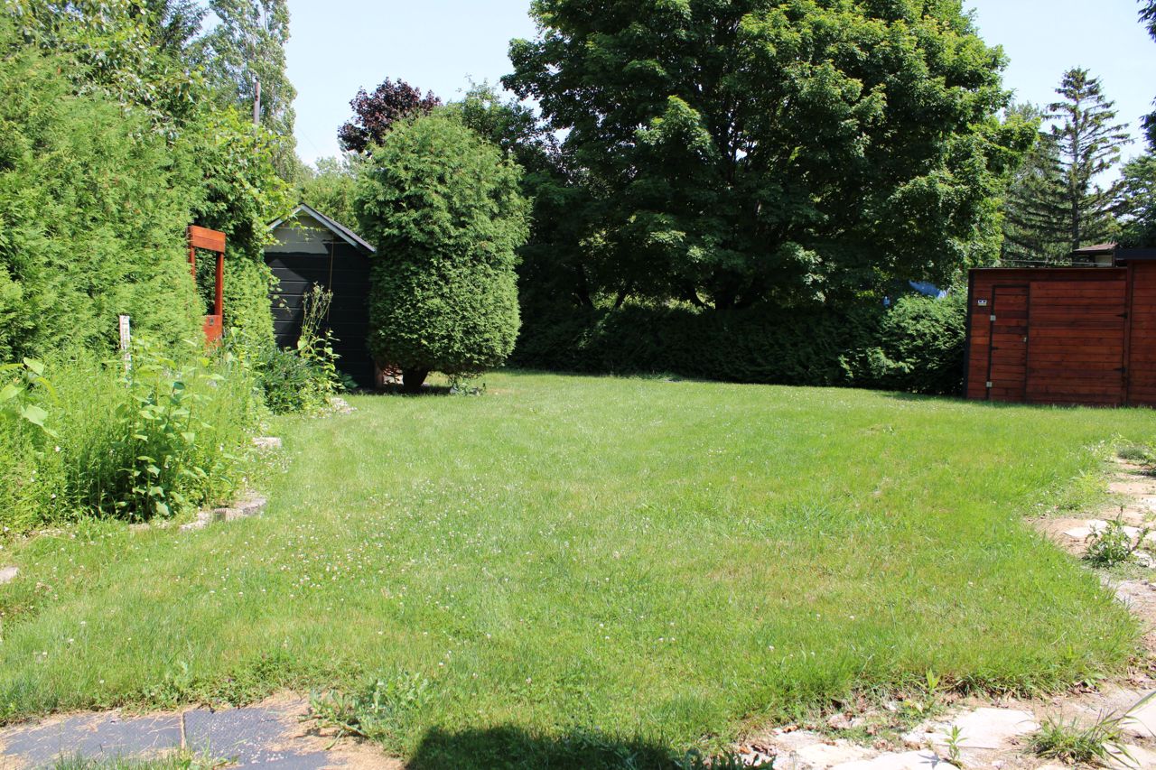 Excellent Fully detached bungalow , large pie shaped lot, mature trees, family room, side door entrance to partly finished basement, and quiet mature area. 3 Bedroom bungalow on oversized pie shaped lot *walk the blue trail to beautiful Samona Beach*. Lots of parking on the end of a quiet crescent. Main floor family room with vaulted ceilings, combined with open concept kitchen breakfast living area. Kitchen boasting oak cabinets, pot drawers, some upper glass doors and back splash. Large partially finished recreation room with bar, office and 2 nd bathroom. Quick closing available. Classic bungalow on big pie shaped lot with mature trees. Great area.