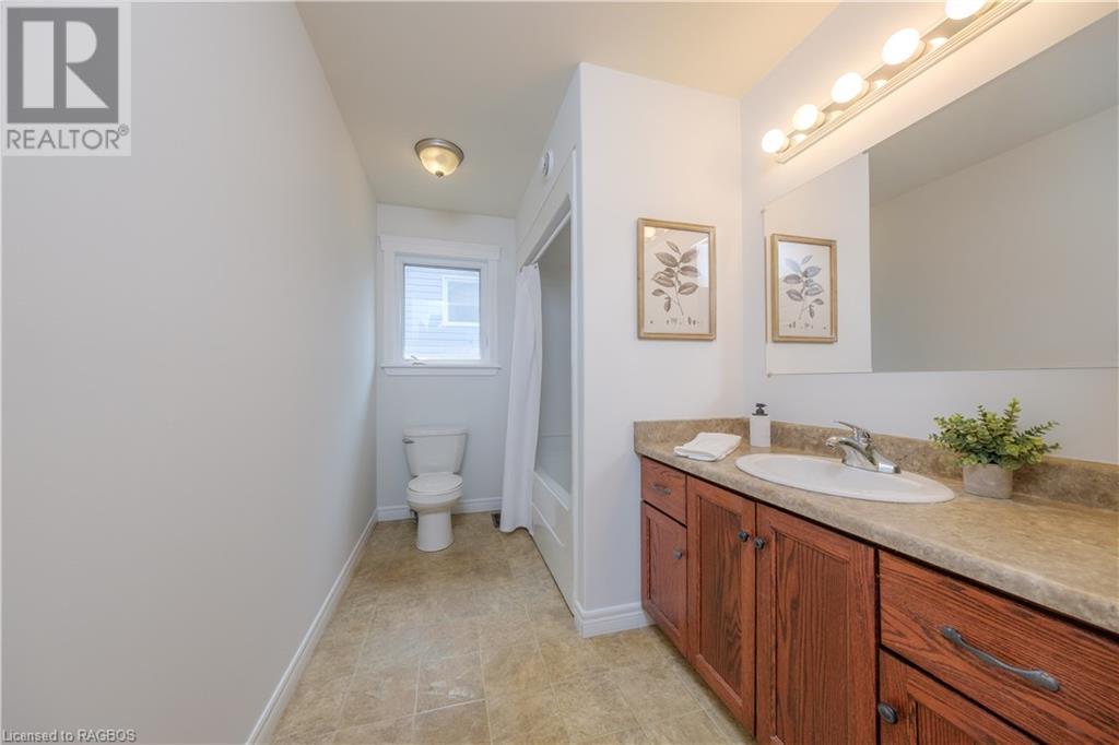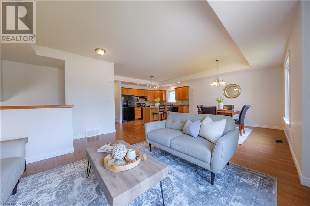 Raised bungalow located in one of the most desirable family friendly neighborhoods of Kincardine, situated on a premium ravine lot on a quiet cul-de-sac. Built in 2007 for the current owners; this home has been nicely cared for. As you approach the home you will notice the beautiful double wide concrete driveway poured in 2021, appealing exterior and landscaping leading you in through the front door into the spacious foyer where you can access the attached car garage or back yard. On the main level you will find a bright and inviting open concept living space including your kitchen complete with a garburator, walk in pantry and island, dining room and living room with tray ceiling. Three spacious bedrooms all with generous sized closets and one four piece washroom. In the lower level, picture yourself finishing the space for extra square feet for your family to enjoy, laundry and washtub and rough in full bathroom, studs and layout started to provide a family/rec room, utility and possibly 2 bedrooms or an office and exercise room! Walking distance to the beach, park nearby, schools and trail system! Desirable heating system; heat pump with back up natural gas furnace. (id:22211)