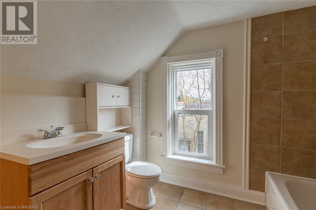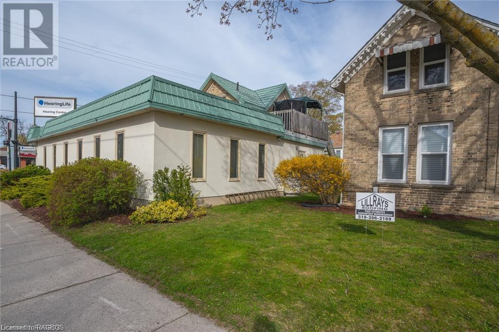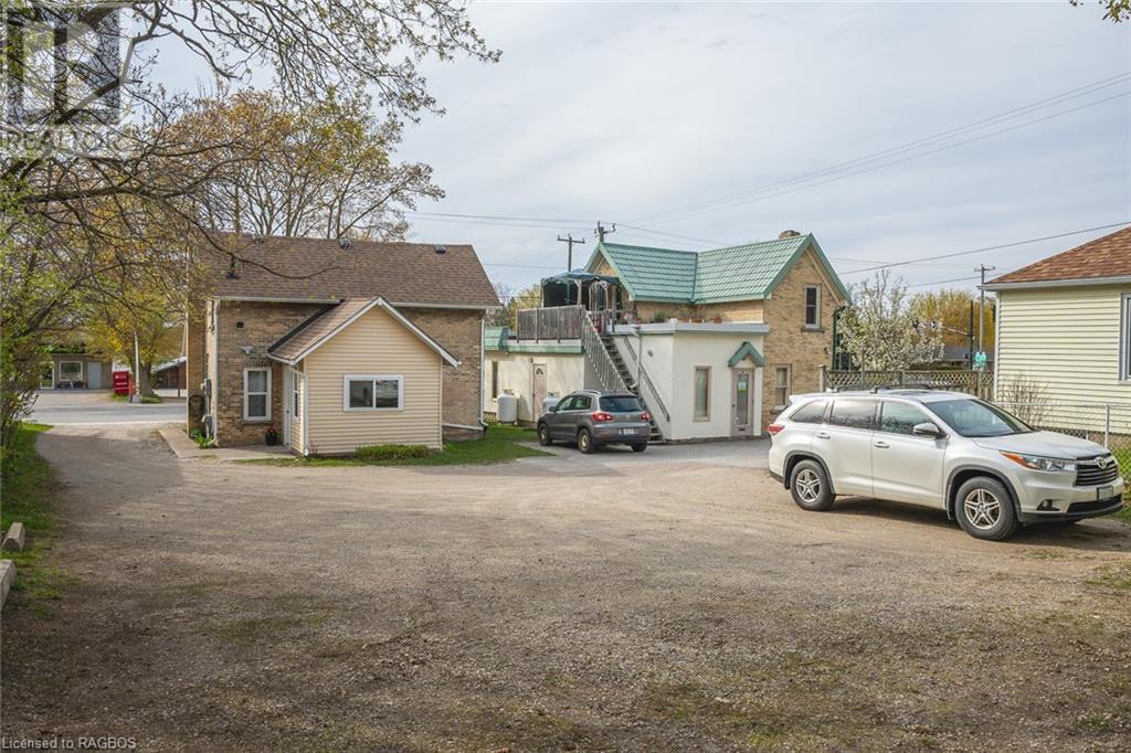 2 adjacent commercial properties at the intersection of Queen & Broadway Streets in Kincardine's commercial core (across from Tim Hortons). The home at 965 Queen St. & the commercial property at 969 Queen St are being offered for sale as a PACKAGE to share the 2 existing street entrances & 6+ parking spaces. The 1151 sq.ft. century brick home has had many upgrades this spring including new vinyl windows, roof shingles replaced, new electrical breaker panel, new kitchen & bathroom cabinets, sink & counter tops, some new flooring at entrance & stairs & complete interior re-paint. Although the home is zoned C-1 General Commercial, it can continue its residential use under a legal non-conforming provision in the zoning by-law as it has never been used for commercial purposes. See Kincardine's zoning bylaw for the extensive list of non-residential uses in a downtown commercial zone. 969 Queen St is the corner commercial building which was originally a brick, single family home before a large commercial addition was added in the early 1990's. The 3 ground floor commercial units totaling 1901 sq.ft. and the 2nd storey, 2 bedroom apartment (approx. 1055 sq.ft.) are fully rented with a gross income of $39,530 (plus future rental income from the 2 bedroom home) before expenses of about $8.000. The realty taxes for 2023 are $5287.83. This prime location with reliable tenants make this property a great opportunity. (id:22211)