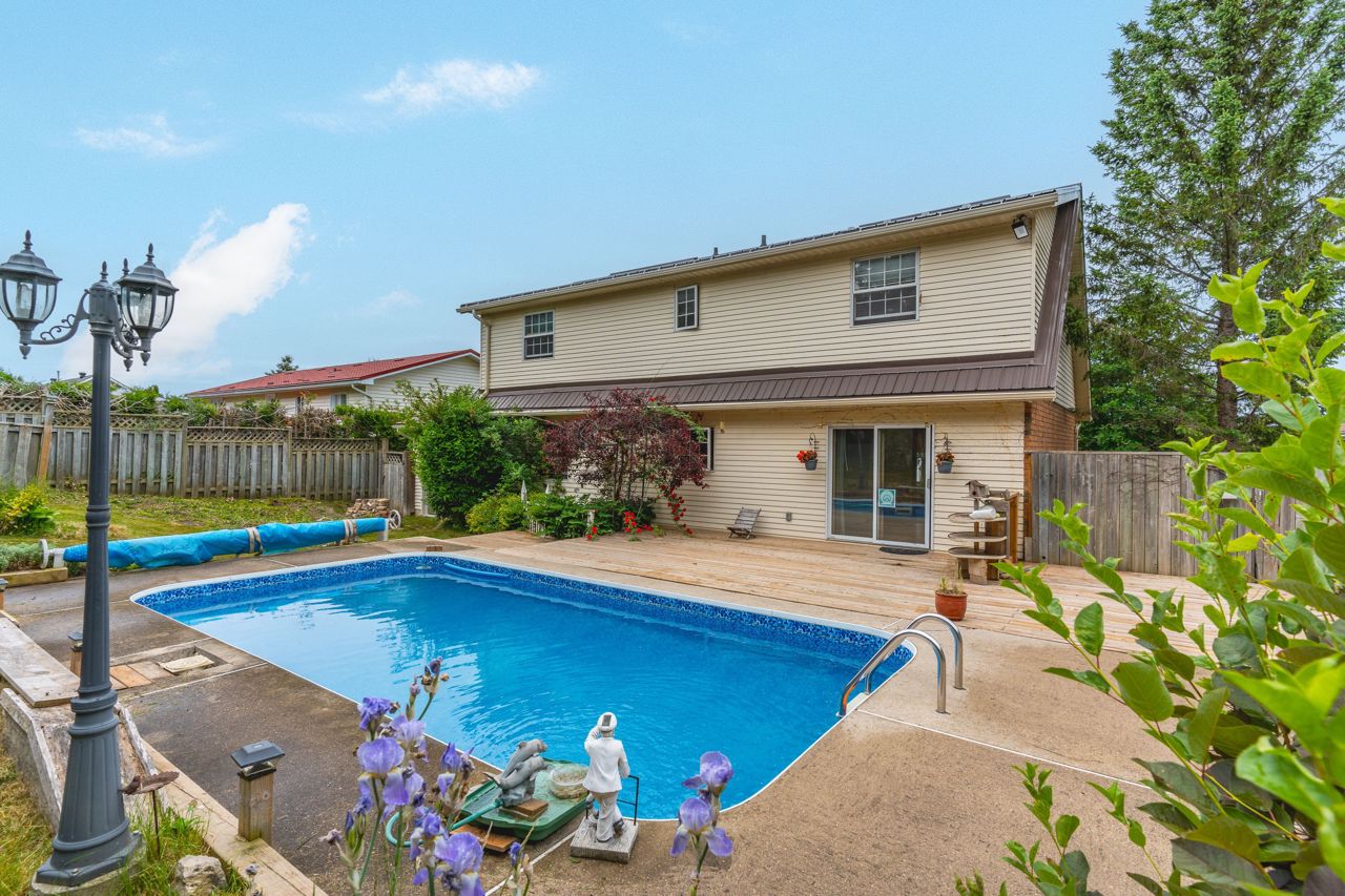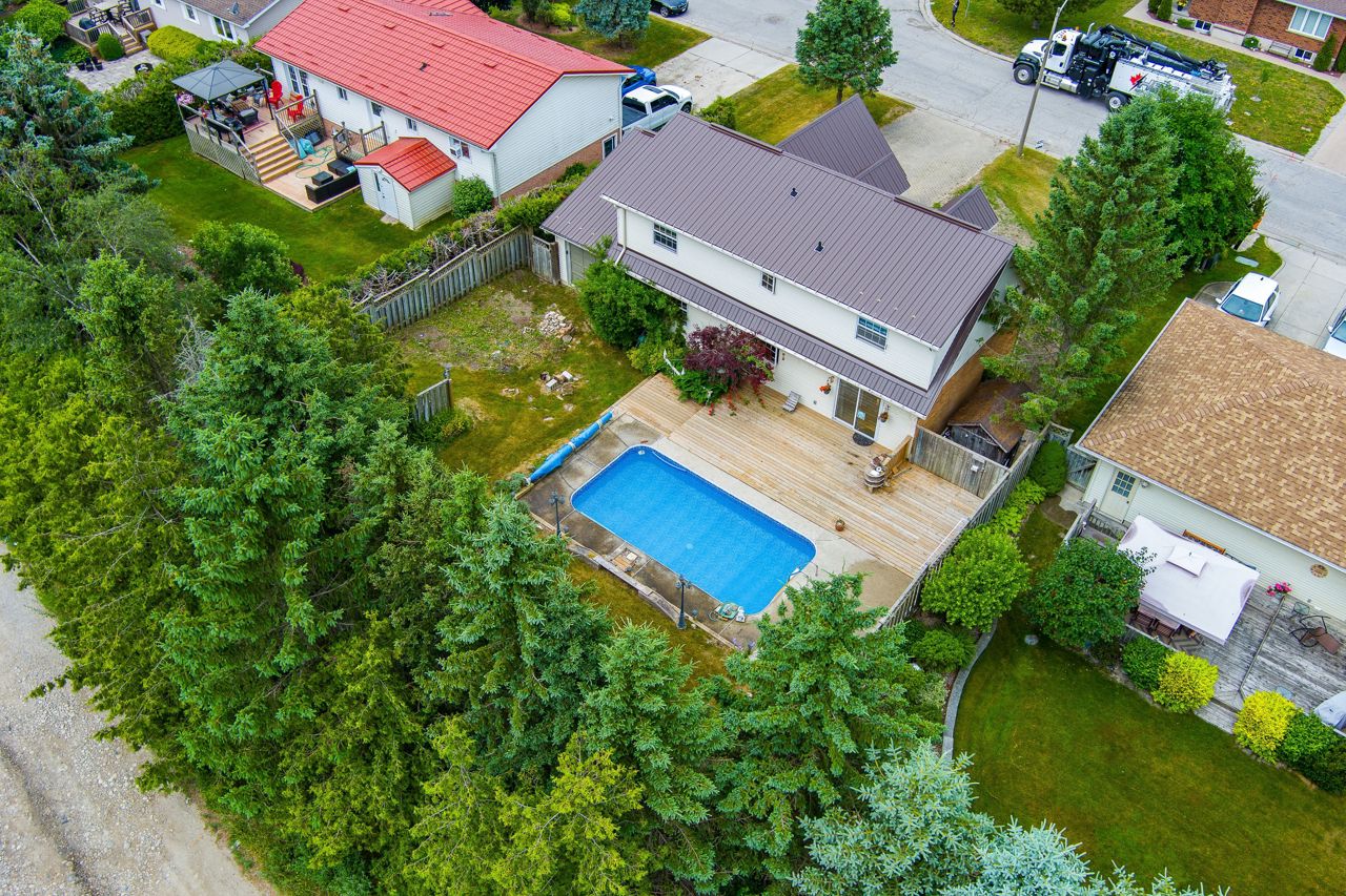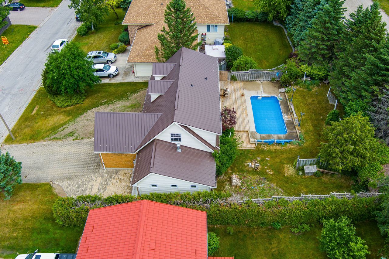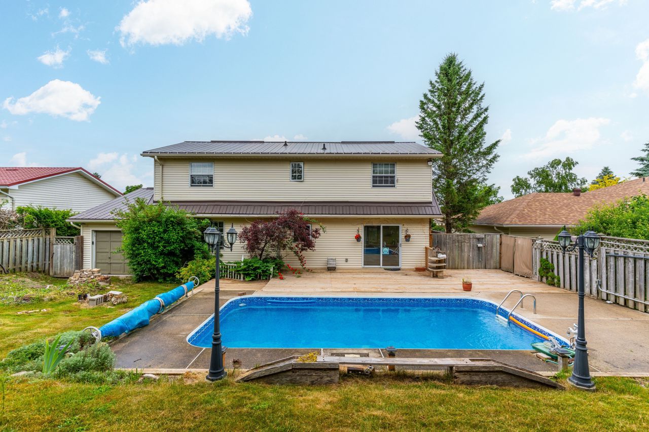 A great location for a growing family! In ground pool, private backyard, easy access from DR or second garage drive through doors, 3 bdrm, 4 bath, main floor laundry, 2 garages, steel roof and large brick driveway! Large primary bdrm with 3pc en-suite! Quality carpeting and some hardwood flooring! Close to schools, shopping, recreation centre, walking/hiking trails, quick access to Hwy 9 & 21. With so much more!Second garage is well insulated & electric heater for comfortable workshop use in winter!