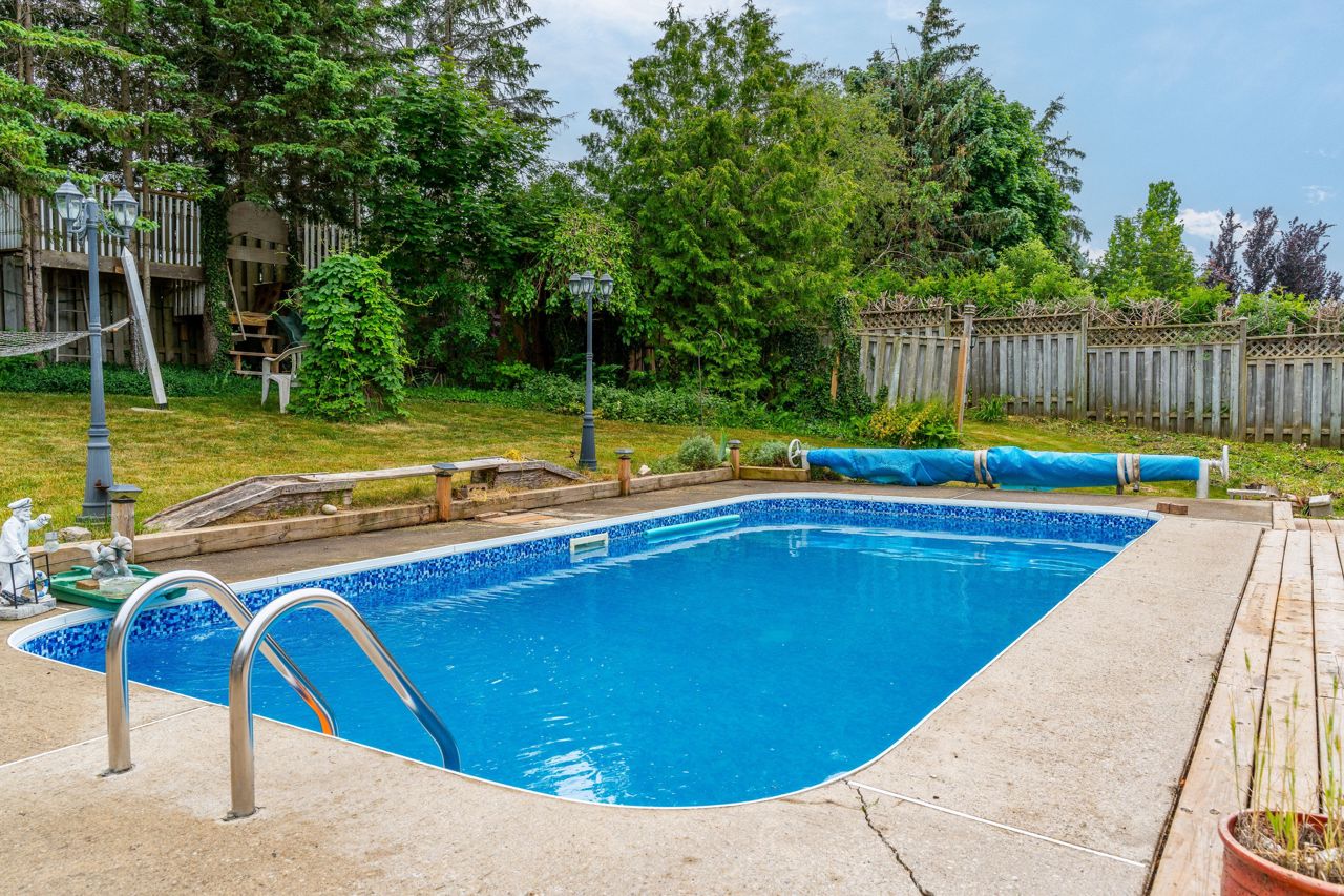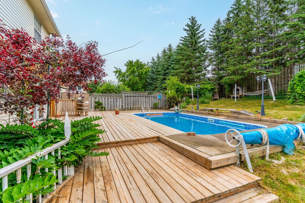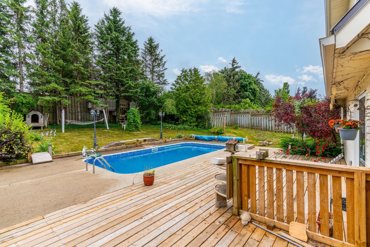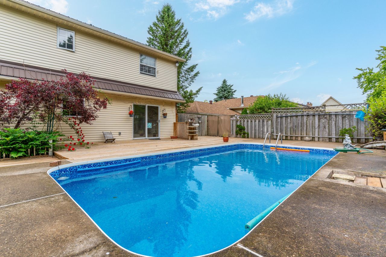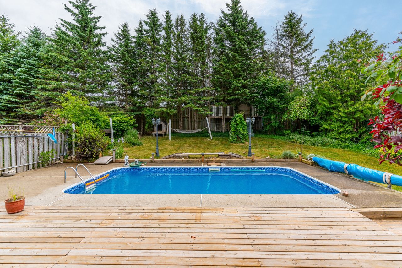A great location for a growing family! In ground pool, private backyard, easy access from DR or second garage drive through doors, 3 bdrm, 4 bath, main floor laundry, 2 garages, steel roof and large brick driveway! Large primary bdrm with 3pc en-suite! Quality carpeting and some hardwood flooring! Close to schools, shopping, recreation centre, walking/hiking trails, quick access to Hwy 9 & 21. With so much more!Second garage is well insulated & electric heater for comfortable workshop use in winter!