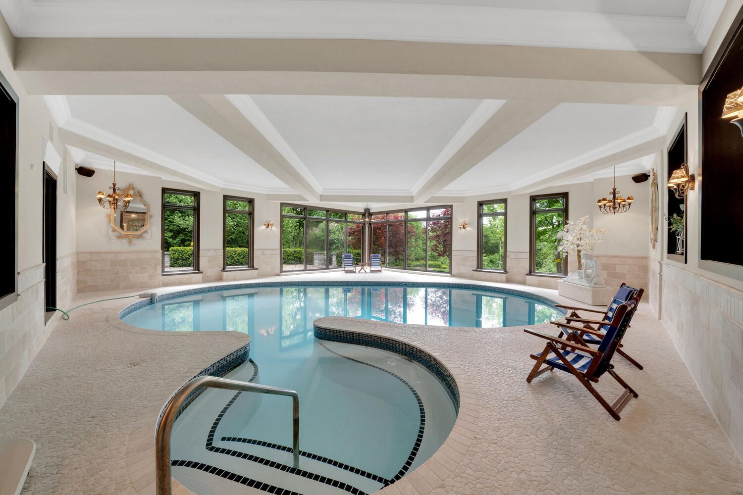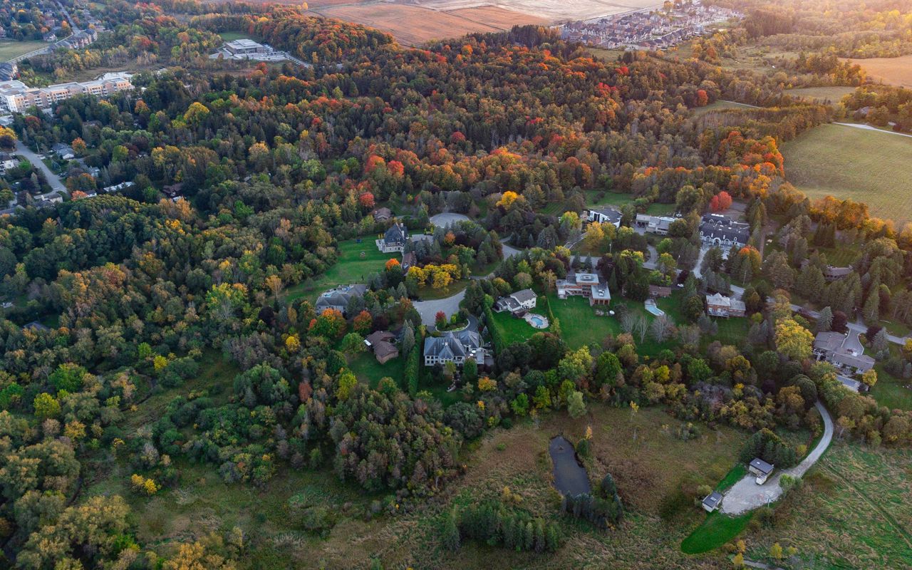 2.6 acres on a quiet cul-de-sac, nestled in the coveted Kingscross Estates! Extraordinary 11,300 sq ft French Country, Estate bungalow-loft is surrounded by perennial gardens and the Oak Ridges Moraine. An entertainer’s paradise featuring soaring volume ceilings, with a gourmet chef’s kitchen, built-in custom pantry, adjoining built-in bar and raised walkout terrace, featuring transitional, open concept floor plans. Masterful primary suite with additional 2-bedroom loft complete with separate family room and bath. Completely finished lower level with stunning indoor pool, infrared and wet saunas, steam shower, gym, separate W/D and several walkouts to covered lanai with F/P. Built with unparalleled detail & craftsmanship, this luxury oasis awaits you.4 gas/1 wood burning fireplaces, music, security, irrigation systems, Wolf Range, Sub Zero Frig/Freezer, Miele double dishwashers, B/I Coffee maker, Main Level & Lower Level Laundry.
