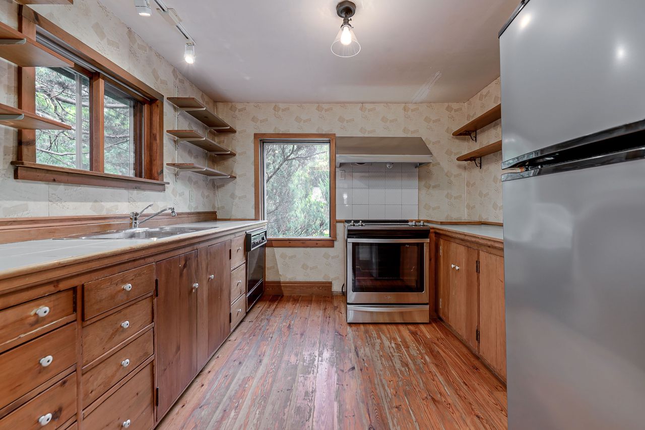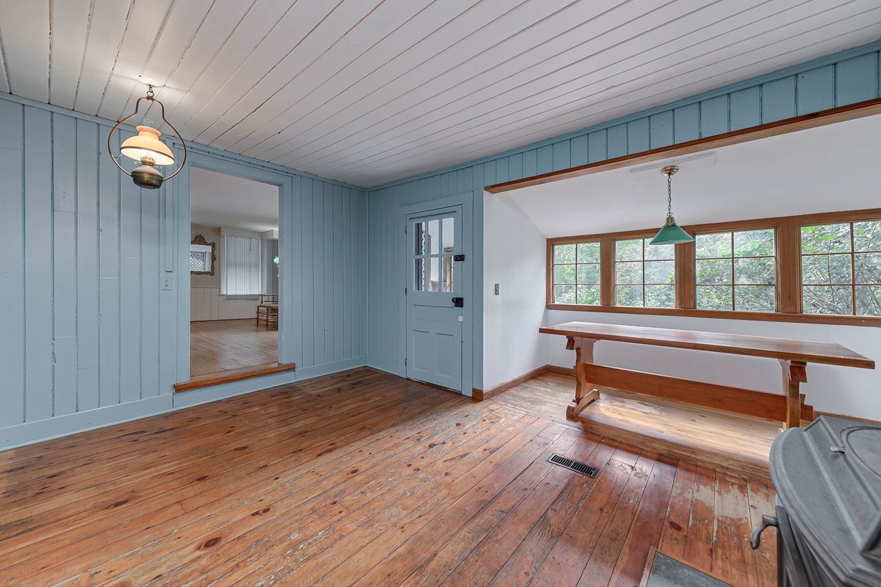 King Twp - Hamlet of Laskay, a prestigious enclave of homes enriched with history. This one is no exception, circa 1888 brings charm and character throughout. Family owned since 1939. It is a rustic gem looking to be upgraded to next level. Many options here, potential for full renovation or replace addition with your modern ideas. The floor plan can be easily modified and rooms can be re-purposed. What a great opportunity to reno a century home! Beautiful 1⁄2 acre lot with lush gardens, greenery, massive mature trees, woodshed, minute drive to 400/King Rd. Amazing original pine floors and beams to work with throughout. Wood features and built-ins, tall ceilings, board and batten exterior. Get out your favorite town and country design magazines and be inspired.Metal roof, furnace and electrical up to date, excellent drilled well, 2 septics, one blackwater & one greywater, fiber optic internet installed into the house, driveway located on side street with potential to expand and make circular,
