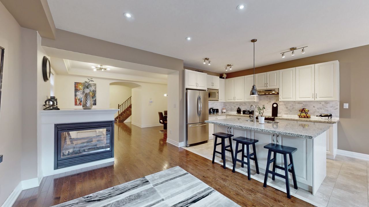 Stunning 4 Bedroom Family Home Built by Zancor in High Demand King's Ridge! End Unit Largest model offered by builder with *Heated 2 Car Garage*. Walk Into A Beautiful Granite Foyer; This True Entertainers Home Features Elegant & Luxurious Finishings All Throughout! Main Floor with Hardwood Flooring, Open Concept Living/Dining/Family Rooms with 3-way Gas Fireplace. Eat-In Kitchen with Granite Countertops, Custom Backsplash & S/S Appliances. Breakfast Area w/walk-out to your own backyard retreat. Vaulted & Smooth Ceilings, Pot Lights throughout. Upstaris with 4 bedrooms. Primary with 5 Piece Ensuite, Den/Office Niche & His/Her Walk-In Closets. Fully Finished Basement To Be Seen That Comes with Home Theatre, Custom Wet Bar, Electric Fireplace & 3-Piece Bath. Minutes To Highway 400, King Go Station, Seneca King Campus, Top Ranking Schools & All Amenities! *Home Is Only Atttached By The Garage*New Driveway done in 2022. Sprinkler System All around. Fully Heated 2 Car Garage. 2 Fireplaces (Gas & Electric)