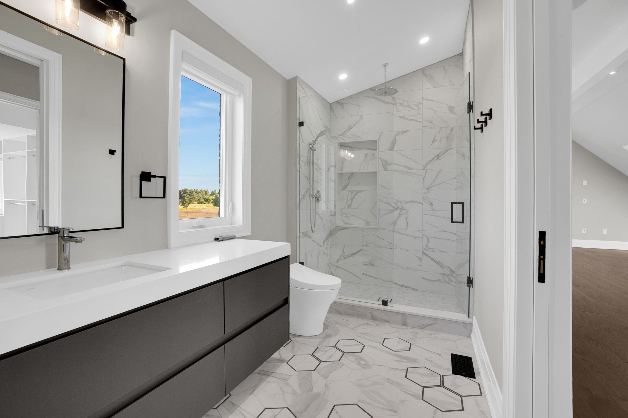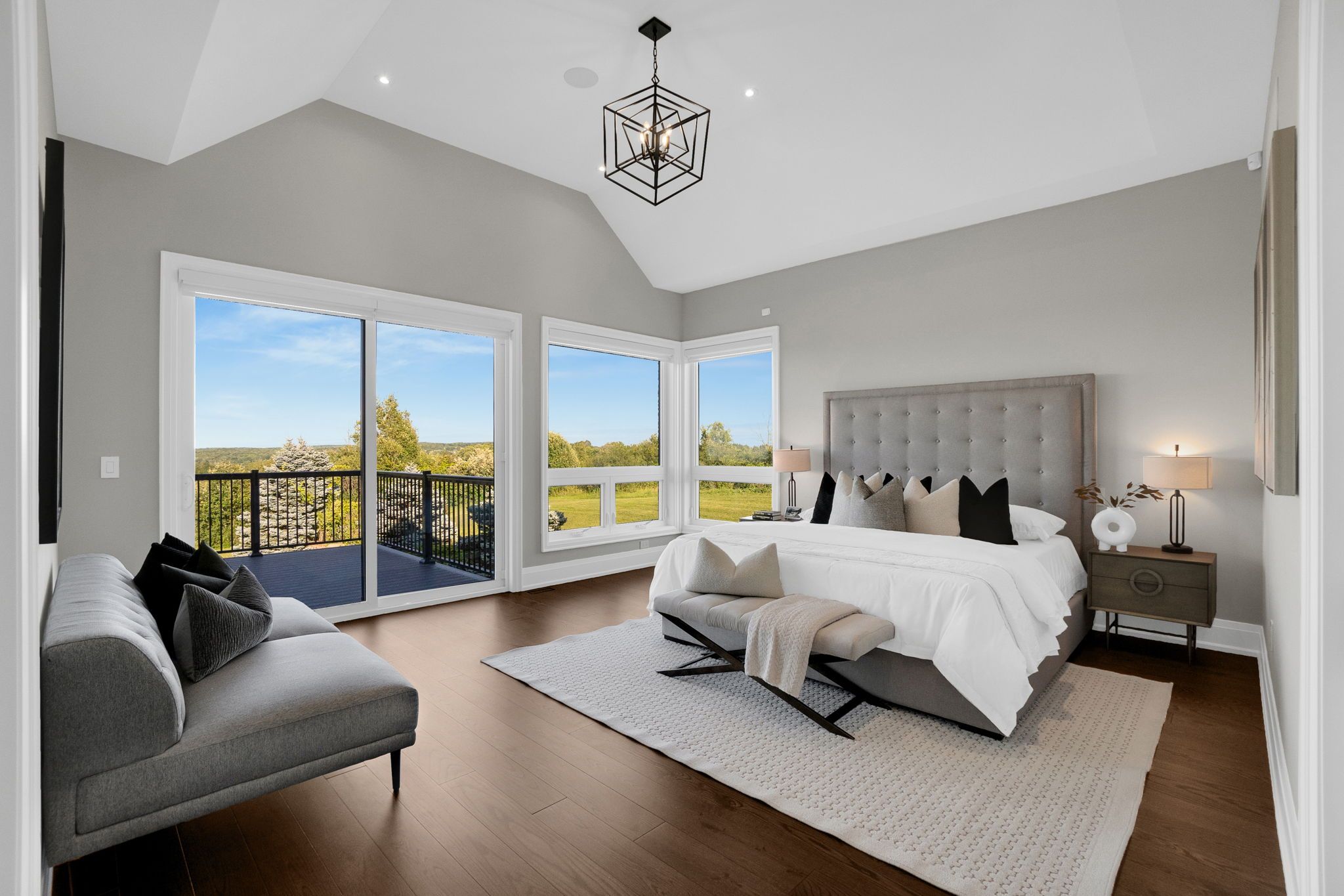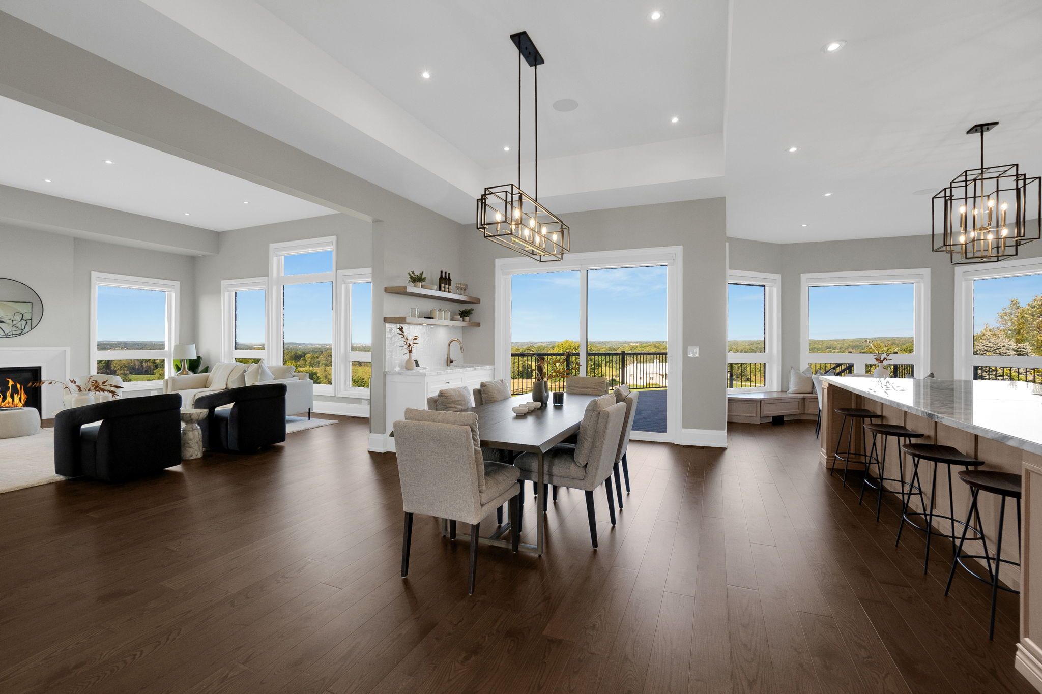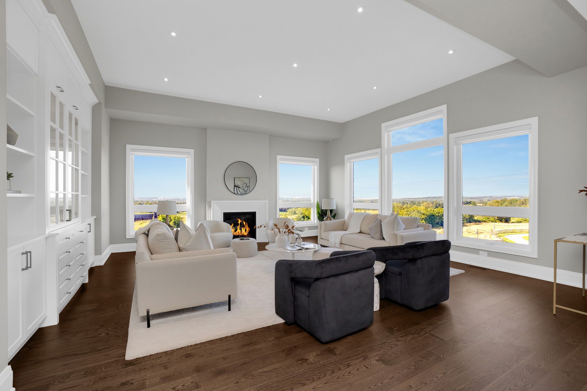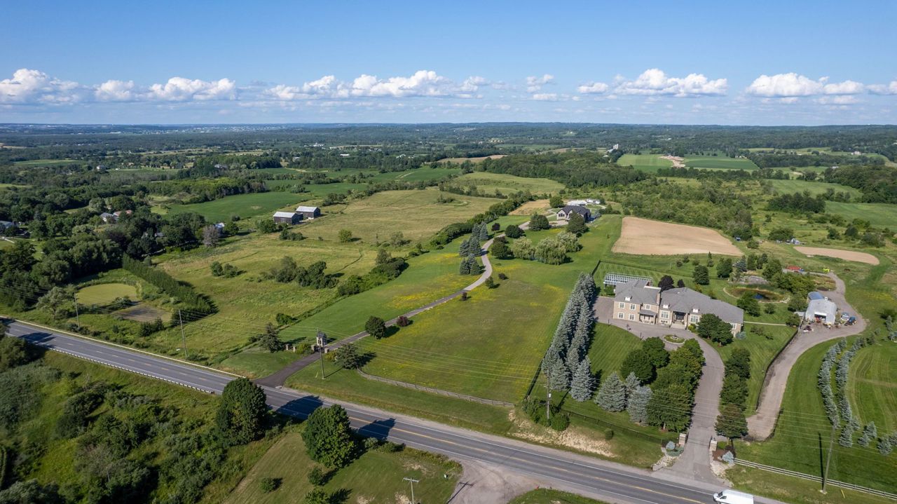 A privately gated drive leads to this remarkable newly built seven thousand eight hundred and sixty square ft home embracing endless views. Twenty-six rolling acres with trails and vistas over king township. The spectacular layout features a main floor great room, primary suite, separate loft, multiple walk-outs, impressive ceiling heights and an abundance of natural light. All six bedrooms have en suite bathrooms. The spacious loft space on the second floor includes an additional laundry room as well as a walk-in closet and custom millwork throughout. This countryside oasis is an entertainer's paradise with a lower level theatre room, wine cellar and open concept living/dining quarters overlooking the pool and 5-stall stable. Truly the epitome of living in serenity.Please see attached Features & Upgrades Sheet
