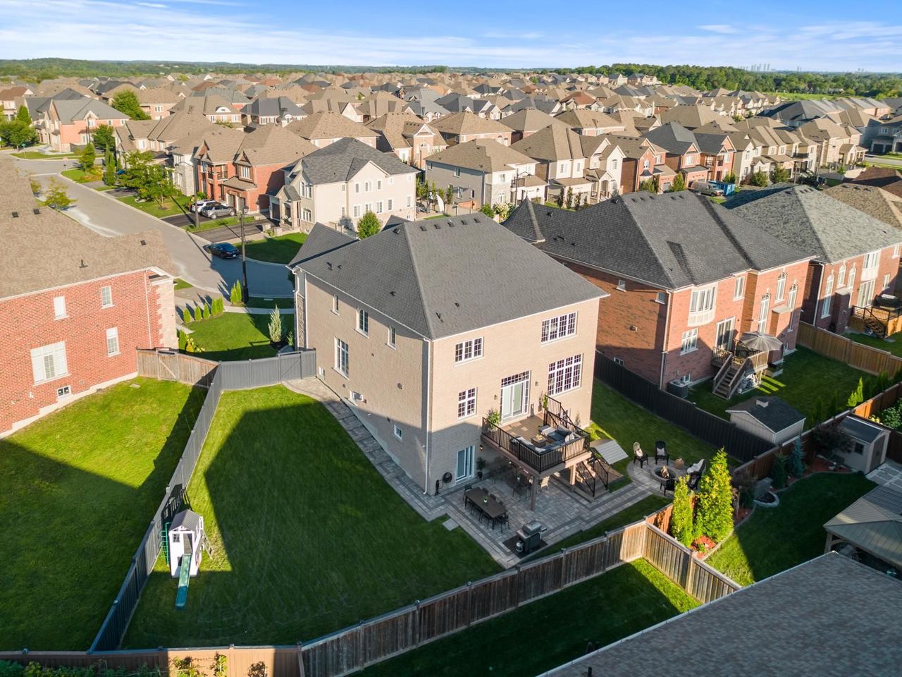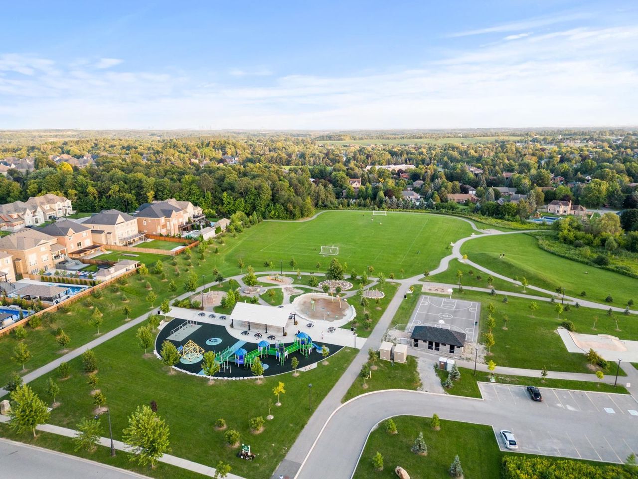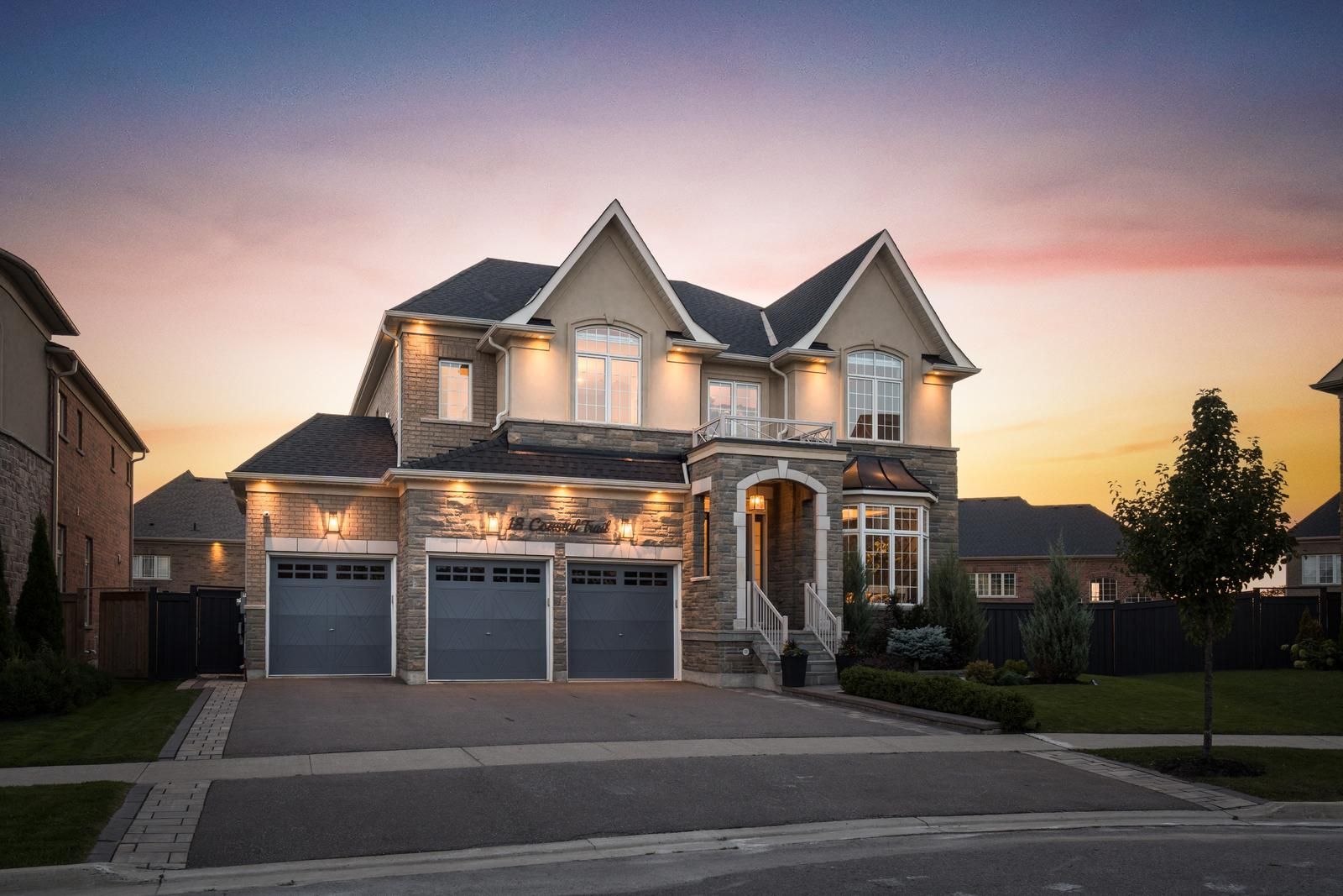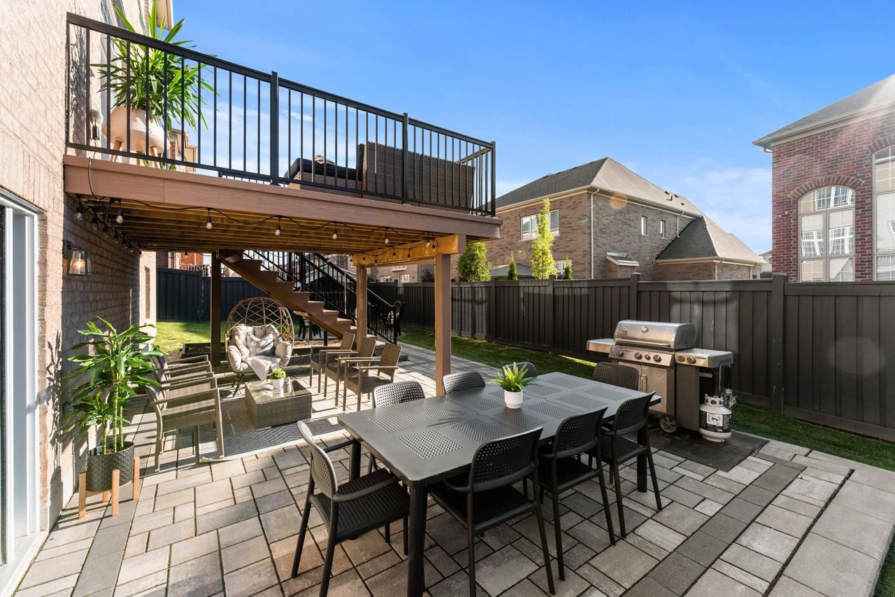 Welcome To The Prestigious King Country Estates. Situated on an Expansive, Premium Pie-Shape Lot, this Exceptional Marycroft-built Residence boasts an Impressive array of Features: 10 Ft Ceilings On Main Floor, 9 Ft On Second and Lower Levels, 3 Car Garage, Finished Walk-Out Lower Level w/Nanny Suite, Wet Bar, and Modern Elements. Crown Moulding, Pot Lights, Modern Wainscotting & Captivating Waffle Ceilings Adorn the Main Living areas. A Grand Chef's Kitchen With 36” Gas Range, Quartz Counters, & Butlers Pantry. The Large Family Room features an abdundance of Natual Light. 4+1 Generous sized Bedrooms & 6 Baths. The Primary Bedroom includes a Bonus Master Retreat, which can serve as a 5th Bedroom, Office, or Nursery. Enjoy Outdoor Living on the expansive PVC Upper Deck and Stone Patio. One of the best layouts. Upgrades From Top To Bottom.5000 + SF Luxury Living (3,675 Above) Professionally Finished Walk-Out Bsement w/9' Ceilings, Sep Ent, Nanny Suite, Wet Bar, Fully Fenced West Facing Pie-Shaped Yard, In-Ground Firept, Sprinkler System, Exterior Potlights, Spacious Mudroom