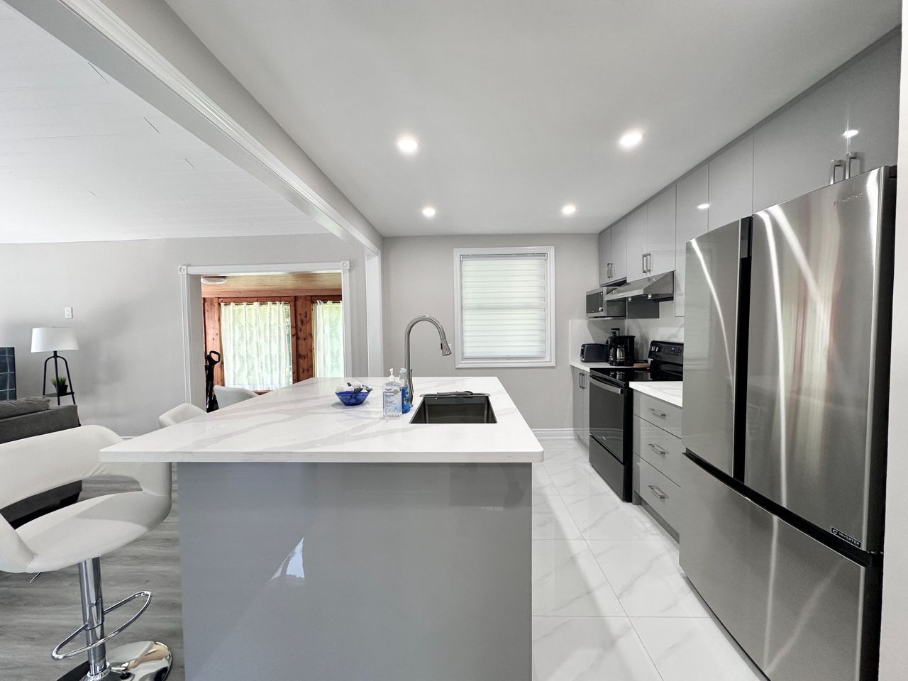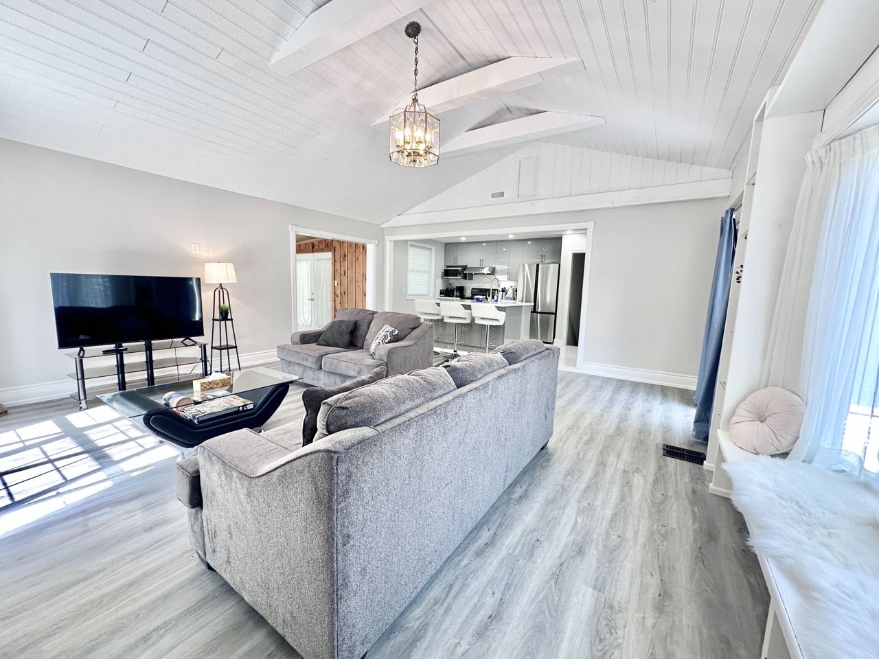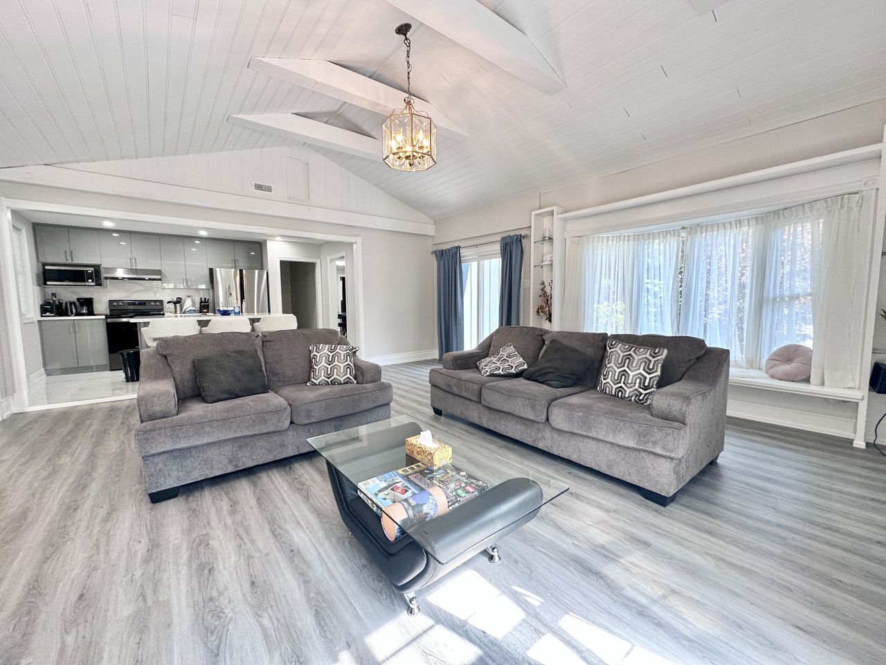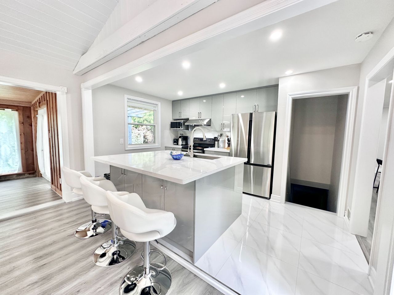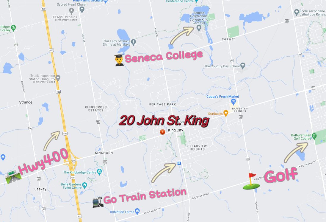 **106' x 168' Big lot in Central King City** Newly Renovated 3+1 Bungalow Surround by Mature Trees ! Huge Porch Overlooking Frontyard. Bright & Spacious w/Open Concept Layout. $$$ Upgrades: Laminate flooring & Pot Lights Throughout. Modern kitchen w/Large center island, Quartz countertop, backsplash & S/S Appliances. Finished Basement with Open Concept Recreation & Game Rm, the 4th bdrm & Laundry Rm. Large Patio & huge private backyard. Long driveway can park 8 cars. Steps to public transit, parks & School. Close to Supermarket, shopping, restaurants & Golf. Mins to Hwy 400, Go Train & Seneca College King Campus...Possible to make a Circular Driveway. Also good for rebuild a Multi Million Dollars Home with Big Lot surround by Trees.