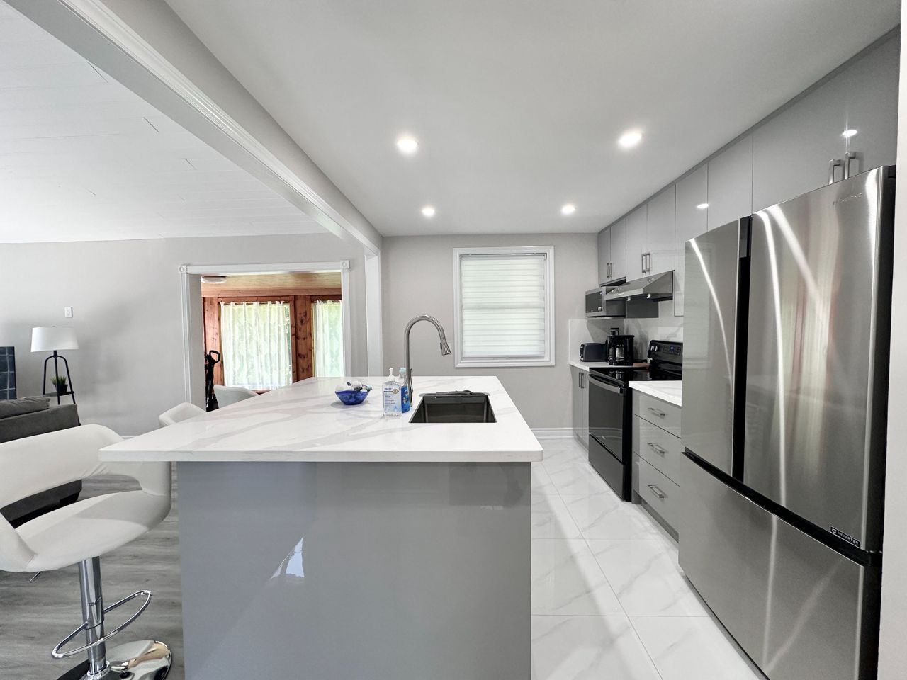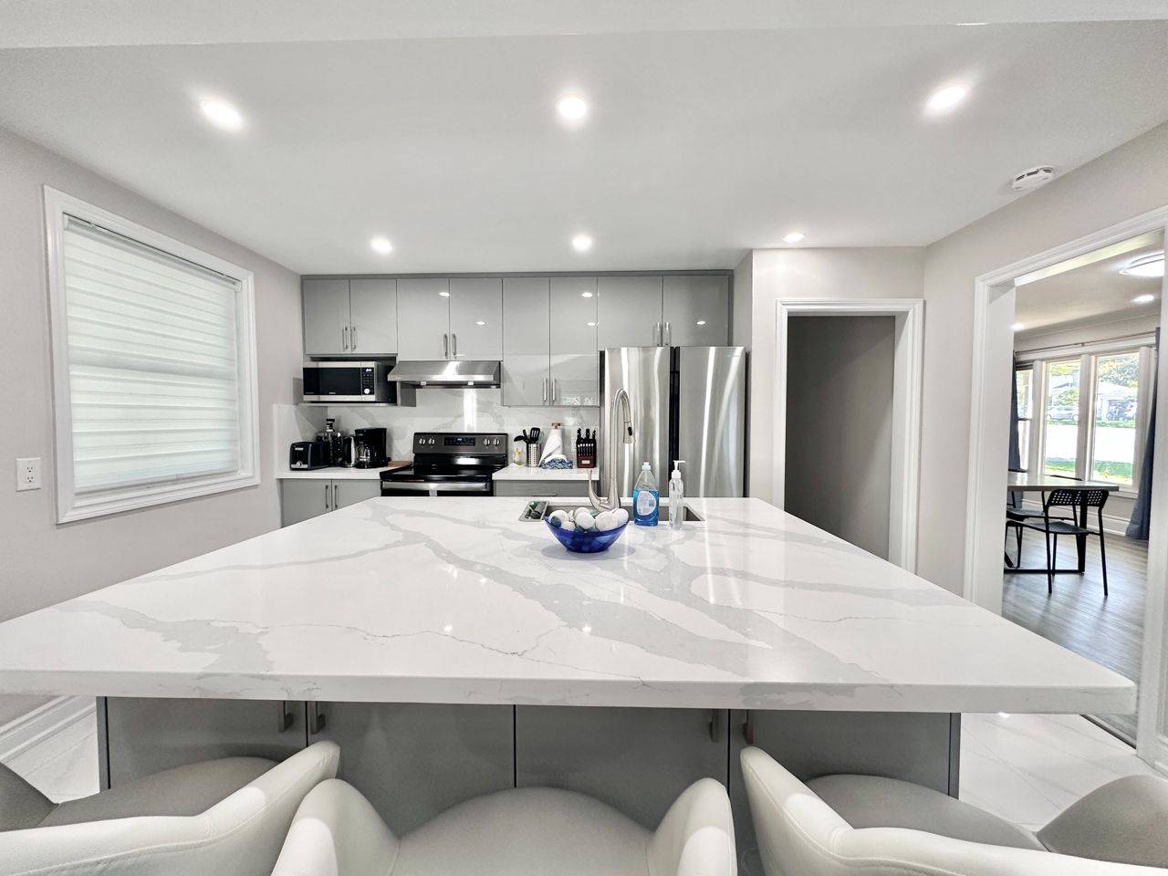 Newly Renovated 3+1 Bungalow with 106' x 168' Big lot in Central King City! Bright & Spacious w/open concept floor plan. $$$ Upgrades: Laminate flooring & Pot Lights Throughout. Modern kitchen w/Large center island, Quartz countertop, backsplash & S/S Appliances. Fin. Bsmt with Open Concept the 4th bdrm & Recreation Rm. Large Patio & huge private backyard. Long driveway can park more cars. Steps to public transit, parks & School. Close to Supermarket, shopping, restaurants & Golf. Mins to Hwy 400, Go Train & Seneca College King Campus...House can be furnished w/existing furniture for $4200/month.