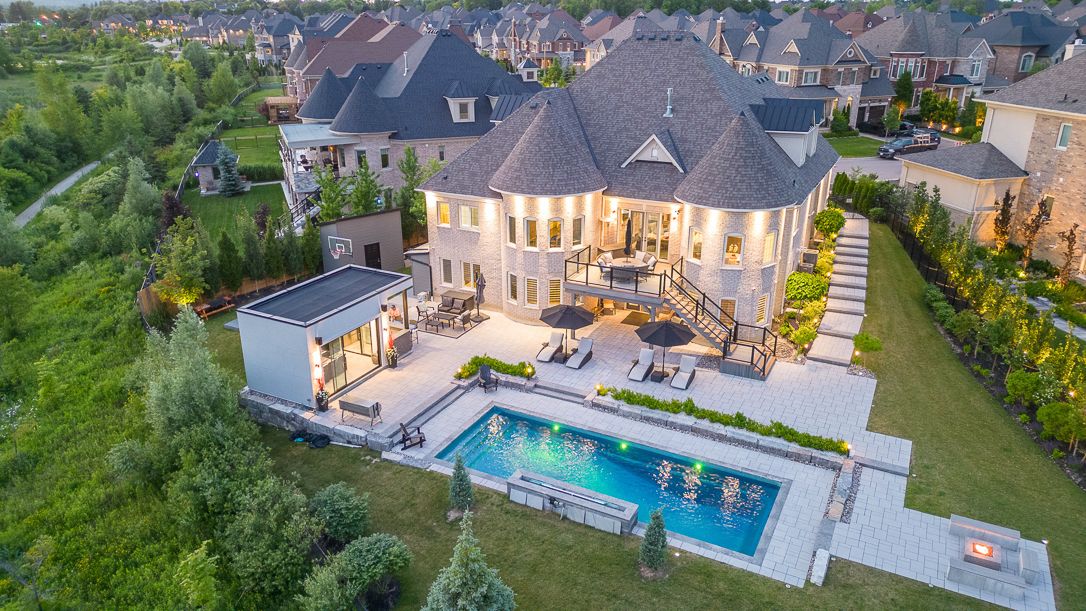 Step into the enclosed cabana room for private dinners with BBQ station and wet bar. Immerse yourself in the oversized resort-style pool, indulge in alfresco dining under the twinkling stars while enjoying the built in Fire Pit, and sports court. Two chef's custom kitchen, equipped with top-of-the-line appliances that ignite your culinary passions. The elegant appointments extend to the inviting family room, creating an atmosphere of comfort and warmth a Large mudroom and 2 laundry rooms. A retreat to the main floor principle suite with oversized Ensuite and soaring ceilings and SW views.The lower level with a full Walk out and 2 bedroom in-law suite ensures both convenience and privacy. Two additional bedrooms on the second level and sitting room provide serene retreats for family or guests.