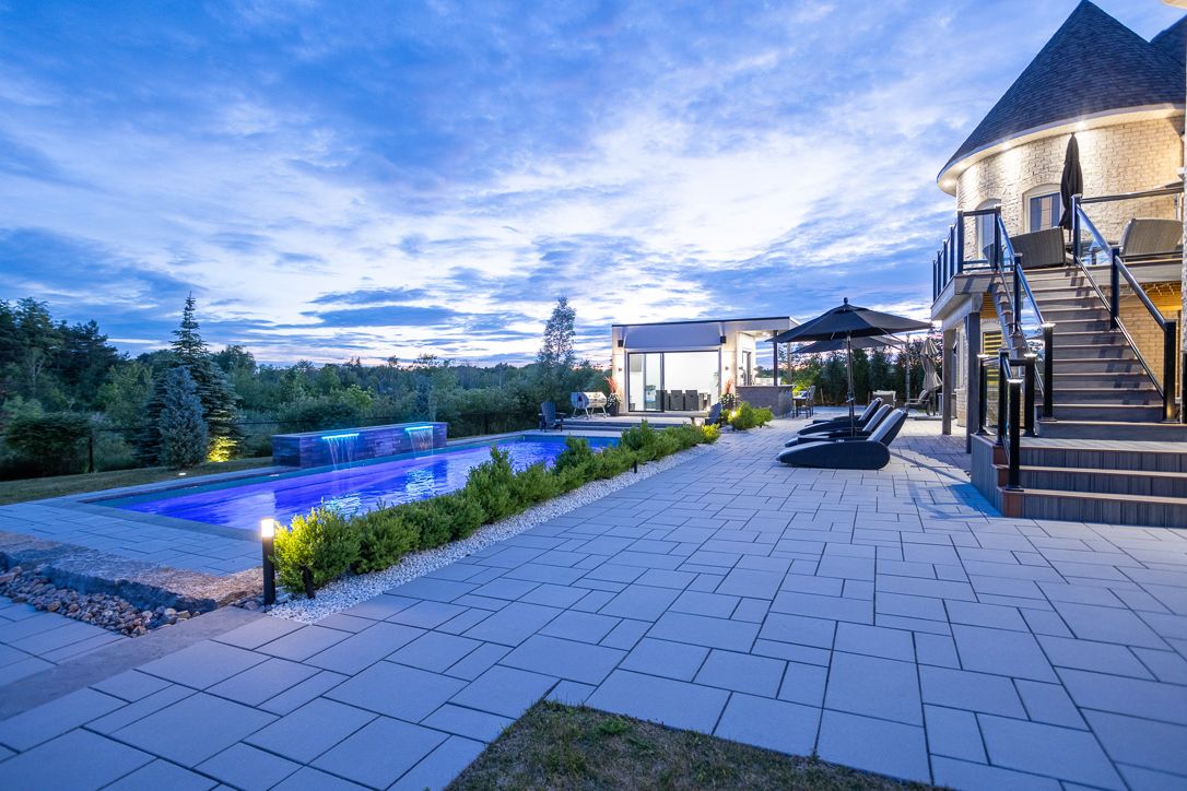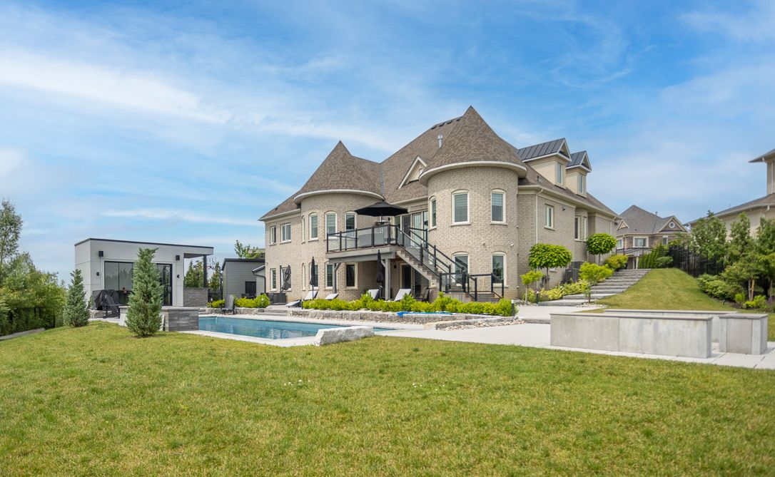 Indulge in an oasis of seclusion and beauty, where the grounds stretch over a huge lot with breathtaking SW views of the evening sunset, spanning over 50 acres of unobstructed vistas. This remarkable residence seamlessly blends indoor and outdoor spaces, creating the perfect setting for hosting grand events or relishing a relaxed lifestyle. Step into the enclosed cabana room for private dinners with BBQ station and wet bar. Immerse yourself in the oversized resort-style pool, indulge in alfresco dining under the twinkling stars while enjoying the built in Fire Pit, and sports court. Two chef's custom kitchen, equipped with top-of-the-line appliances that ignite your culinary passions. The elegant appointments extend to the inviting family room, creating an atmosphere of comfort and warmth a Large mudroom and 2 laundry rooms. A retreat to the main floor principle suite with oversized Ensuite and soaring ceilings and SW views.The lower level with a full Walk out and 2 bedroom in-law suite ensures both convenience and privacy. Two additional bedrooms on the second level and sitting room provide serene retreats for family or guests.