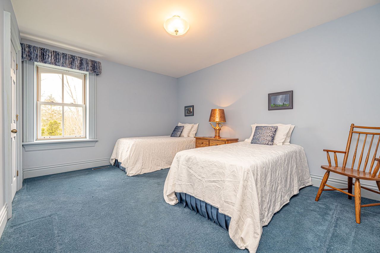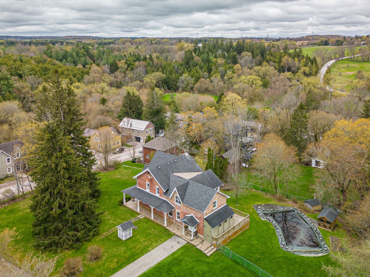 A prominent home overlooking the village of Kettleby. 3-acre lot with rolling hills, mature trees & expansive lawns. They do not make houses like this anymore! Historic trim, amazing woodwork and tall ceilings. A gracious family home with 3-storey outbuilding too! Expansive deck with access to pool change rooms and bath. Concrete pool with gazebo. "Brunswick Hall" is the opportunity to acquire the best lot in Kettleby with a fine example of Victorian architecture which has been featured in many books and tours over the years!Impressive primary suite: en suite bath, seating area, vaulted ceiling, private staircase to sun room, walk-in closet, paneled walls. Main floor mudroom with laundry & powder room. Wide porches, light-filled rooms, unmatched craftsmanship