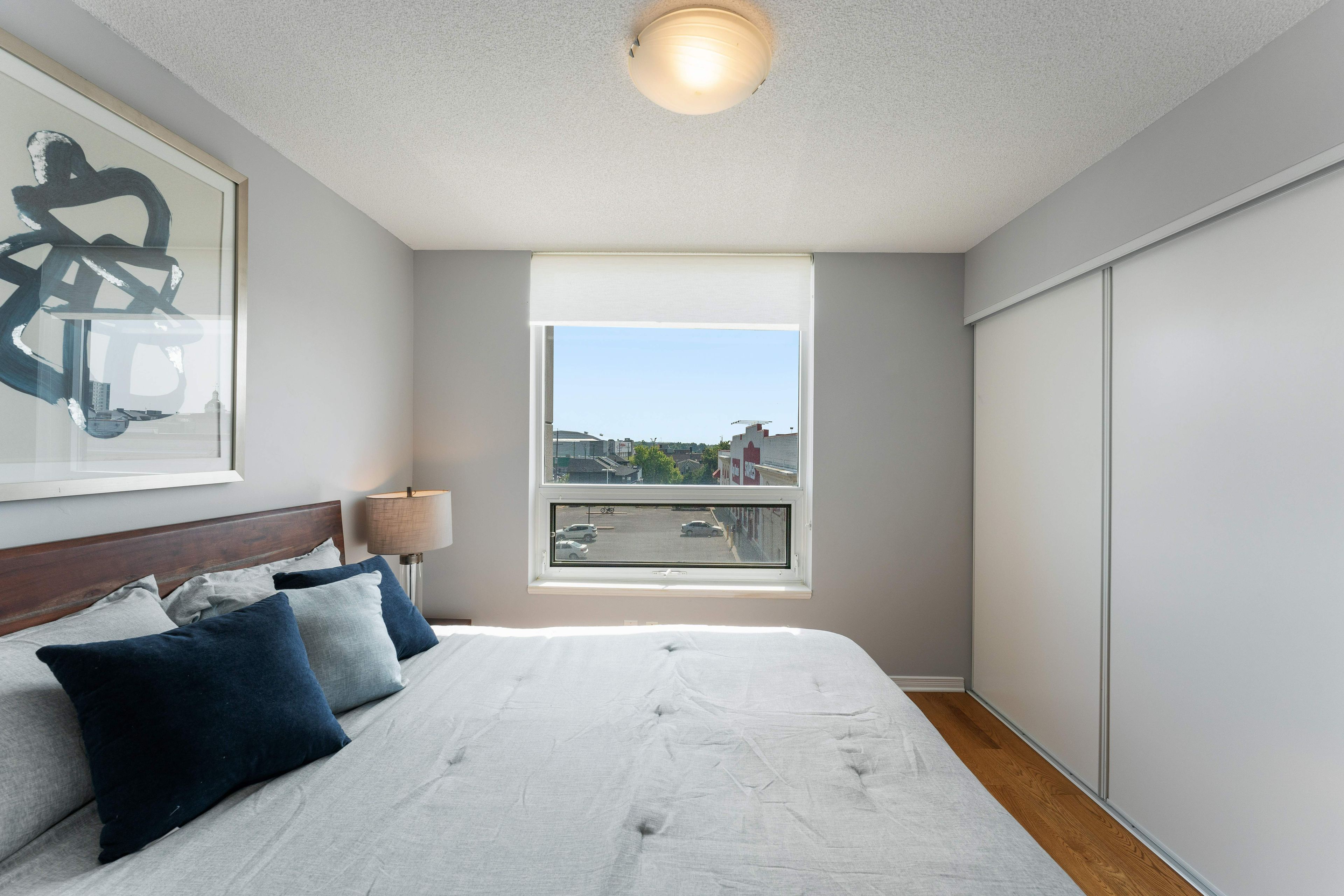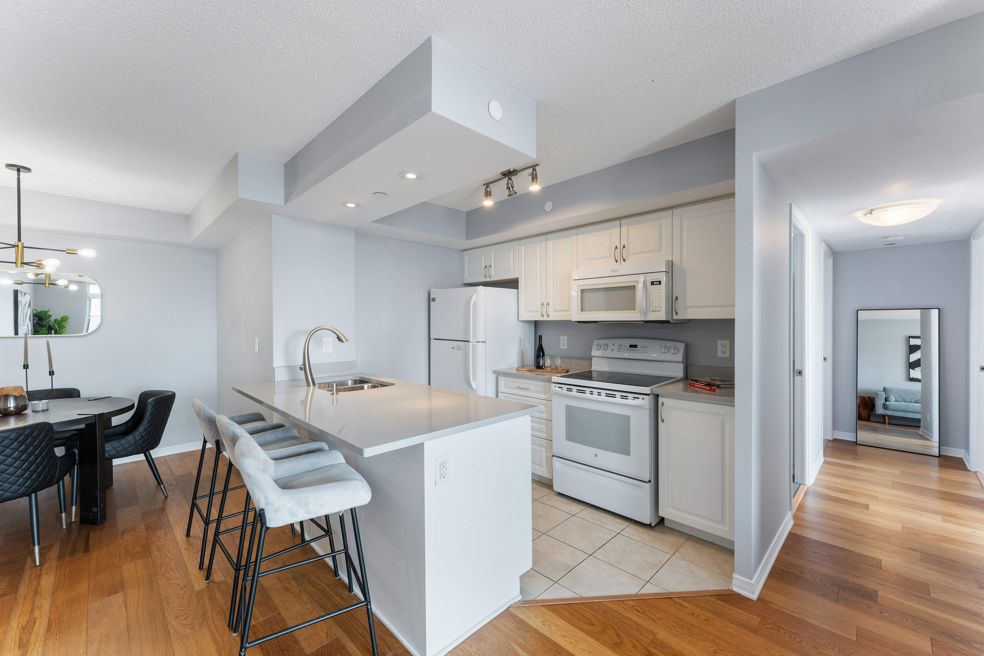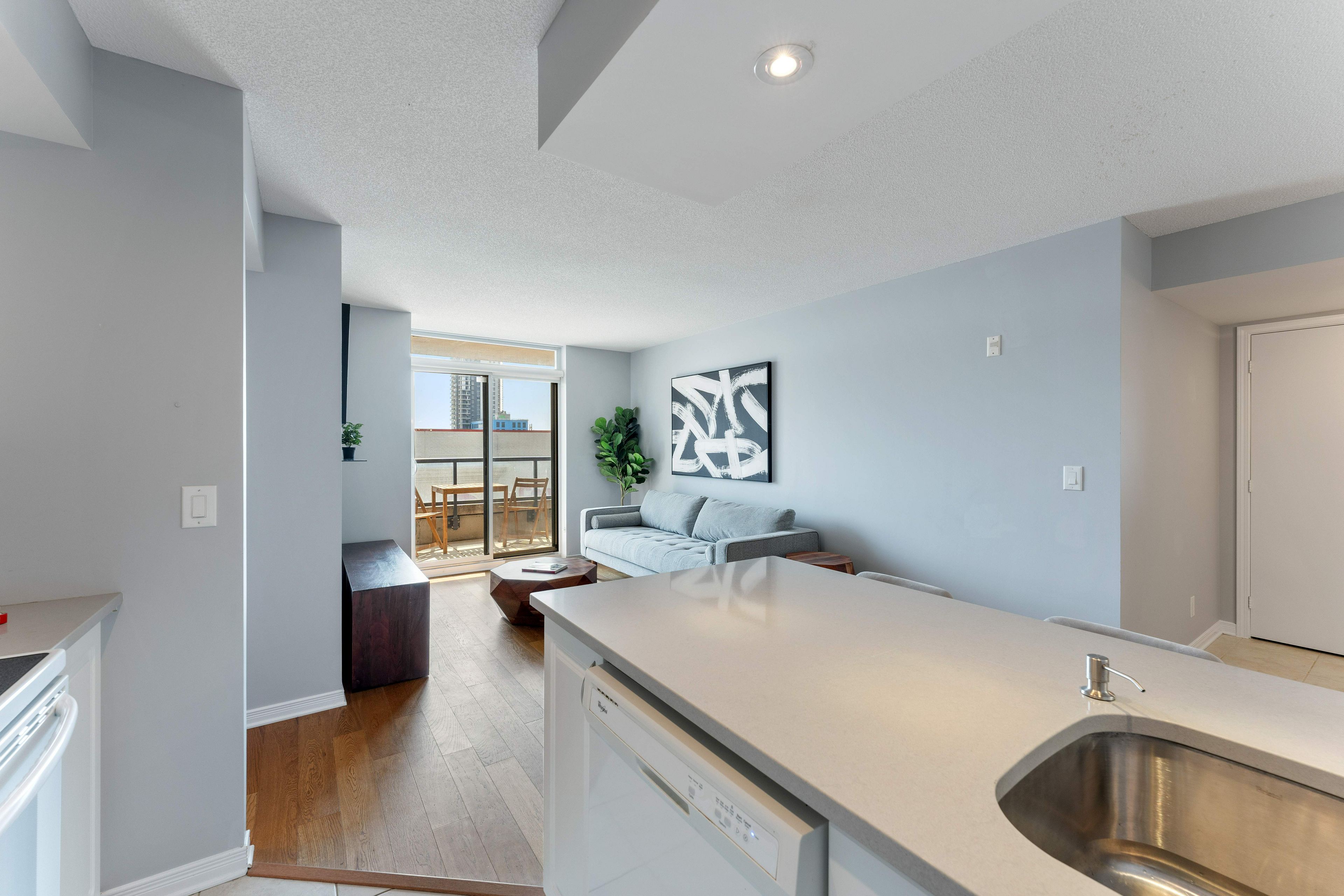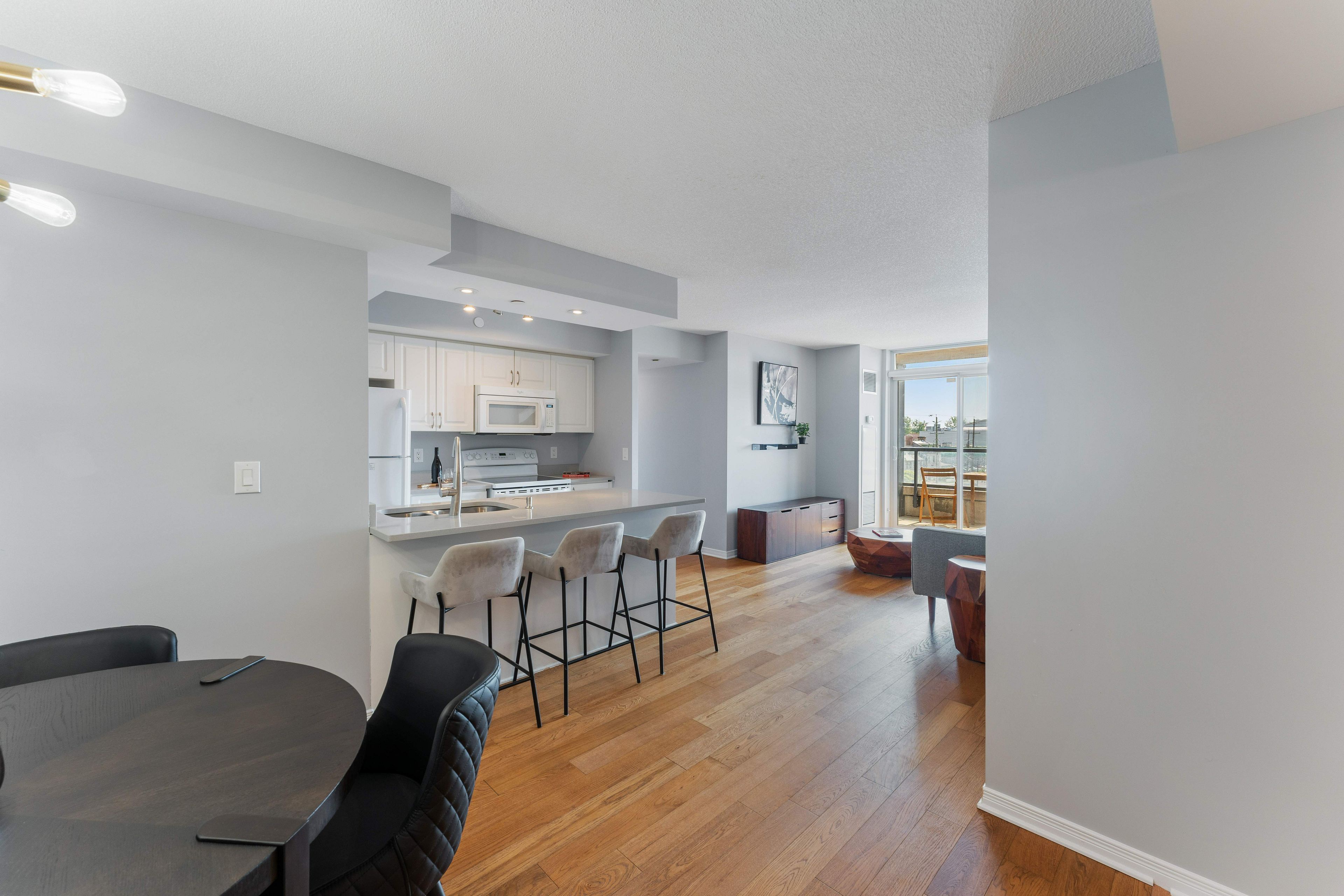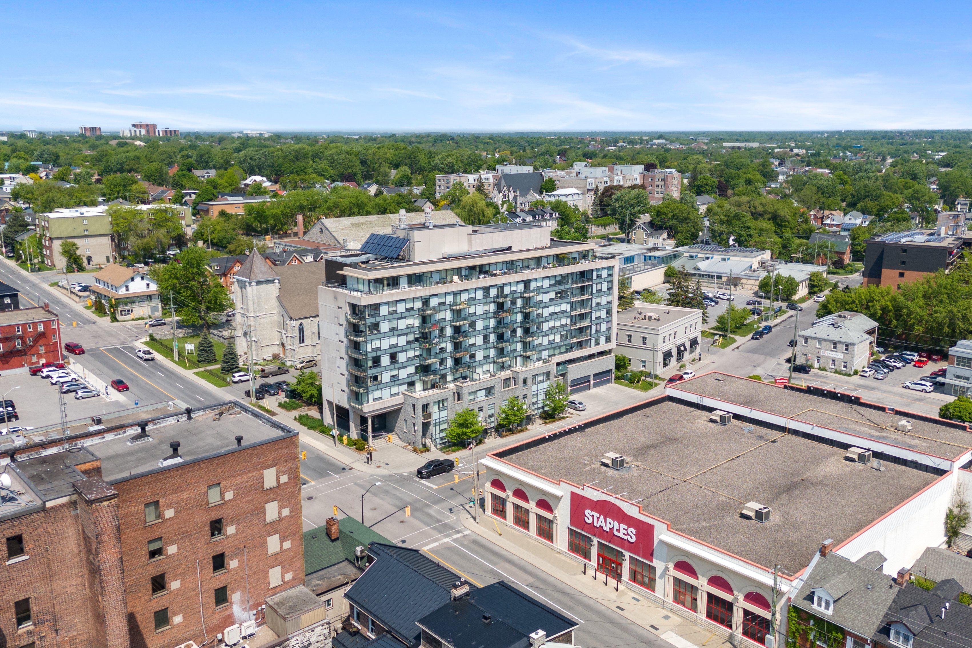 Welcome to one of Kingston's most distinguished addresses, at the Anna Lane. This rare 3-bedroom, 2-bathroom executive condo is ideally situated in the heart of downtown, offering a near-perfect walk score and seamless access to the city's finest dining, culture, and amenities. Just steps to Queens University, Kingston General Hospital, Hotel Dieu, Market Square, and the waterfront this location is second to none. Inside, the suite blends modern design with practical luxury. The open-concept living space is flooded with natural light from floor-to-ceiling windows, with panoramic skyline views and an east-facing balcony. The upgraded kitchen features quartz countertops and a large island perfect for entertaining. Engineered hardwood floors run throughout the space, and thoughtful upgrades include custom window coverings, in suite laundry, and a carpet-free layout. The primary suite offers a full wall of closets and a spa-inspired 3-piece ensuite with a glass shower. Two additional bedrooms and a second full bath provide flexible space for guests, a home office, or studio. Residents of Anna Lane enjoy secure entry, a welcoming lobby, guest suite, party and meeting rooms, rooftop terrace with BBQs, and professional property management. With a quick closing available and a status certificate on order, this is a standout opportunity for professionals, investors, and downsizers alike. Take the 3D tour and see why this is one of downtown Kingston's most sought-after offerings.