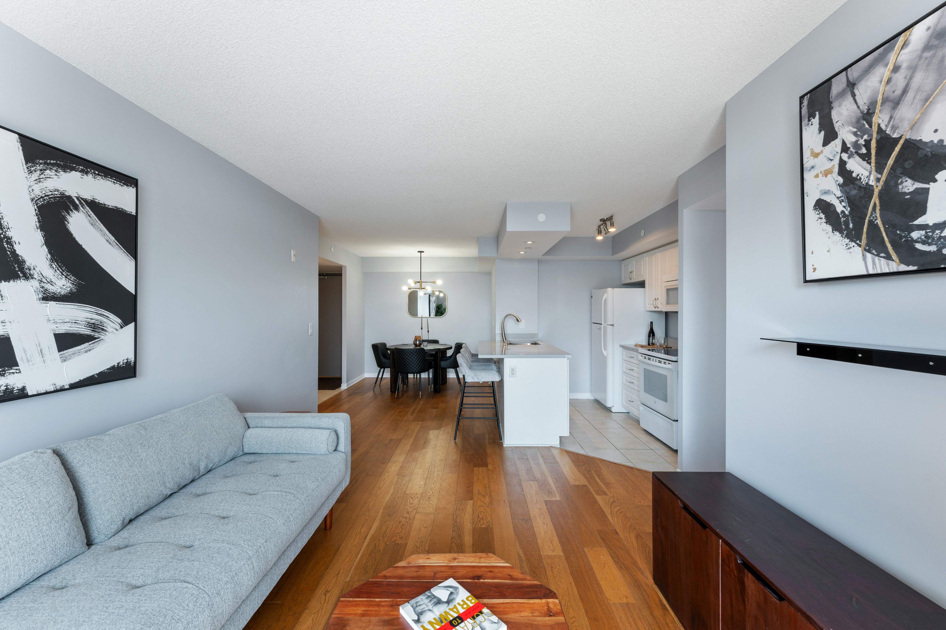 室内空间将现代设计与实用奢华完美融合。开放式生活区通过落地窗引入充沛自然光,坐拥天际线全景景观及朝东阳台。升级厨房配备石英石台面及大型中岛,堪称待客佳选。全屋铺设工程实木地板,精装细节包括定制窗帘、室内洗衣间及全屋无地毯设计。主卧套房配备整墙储物系统及水疗风格三件套明卫(玻璃淋浴房),另有两间卧室与全套次卫,可灵活用作客房、家庭办公室或工作室。