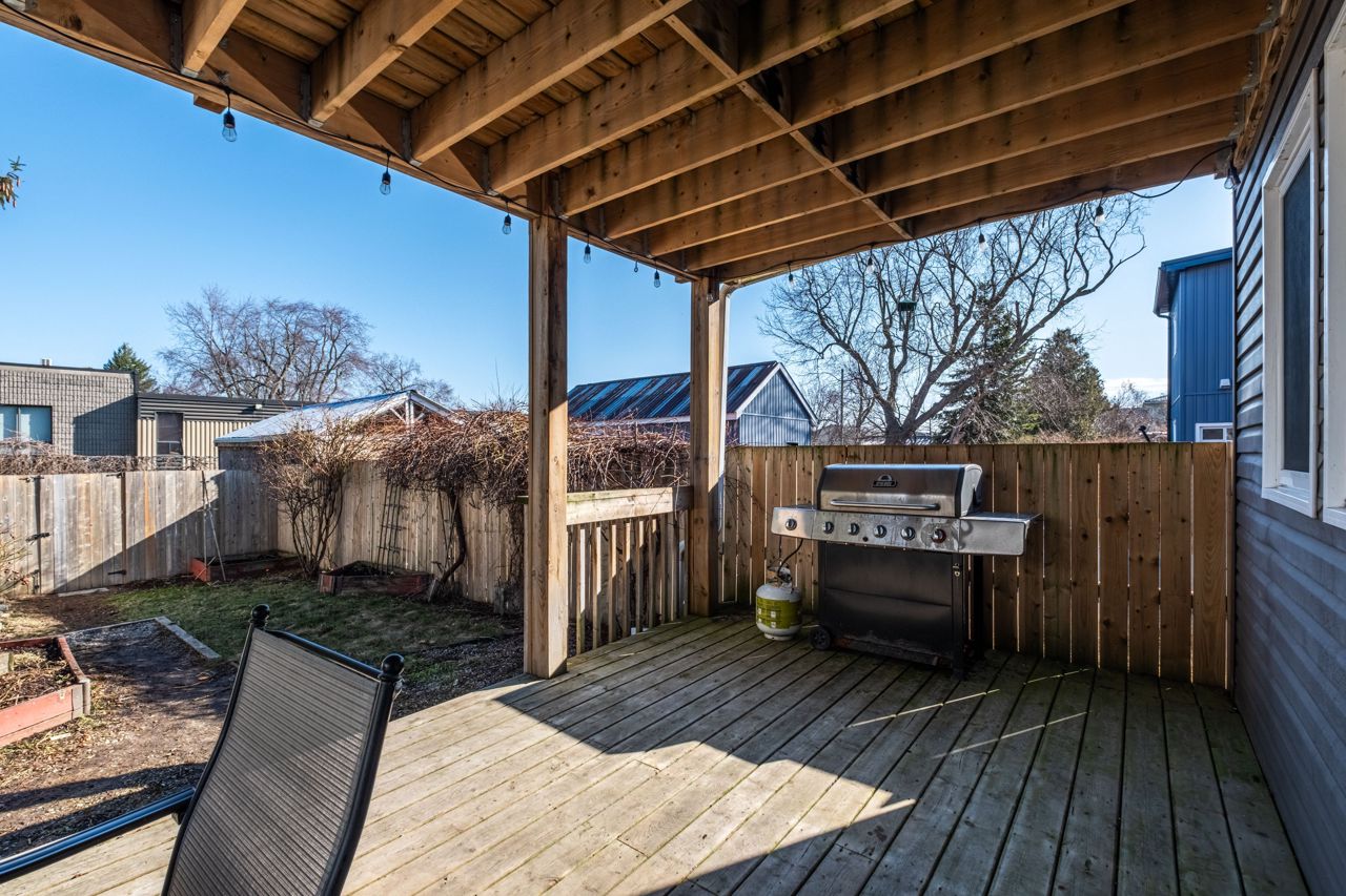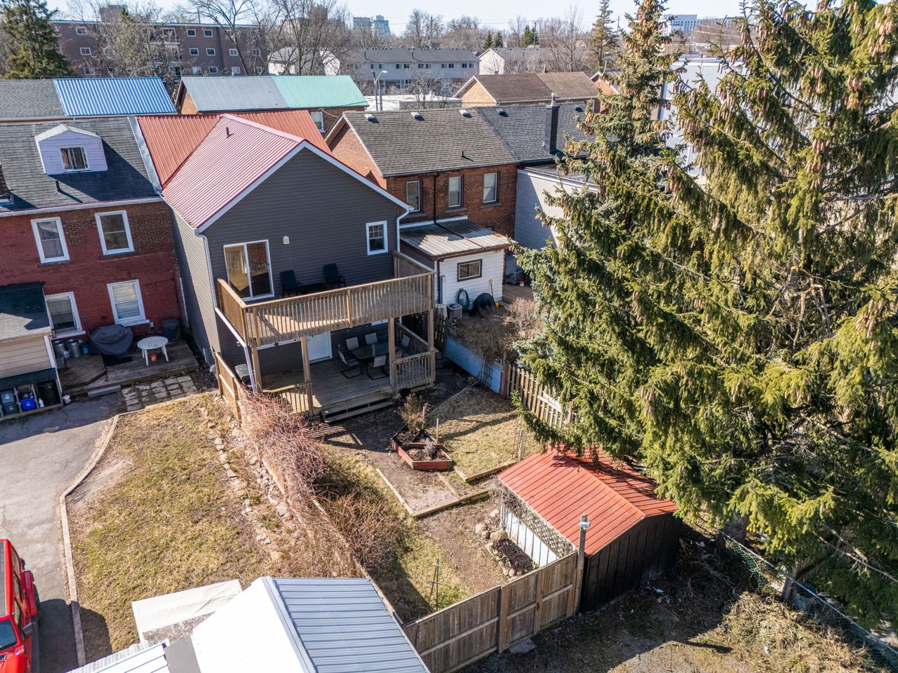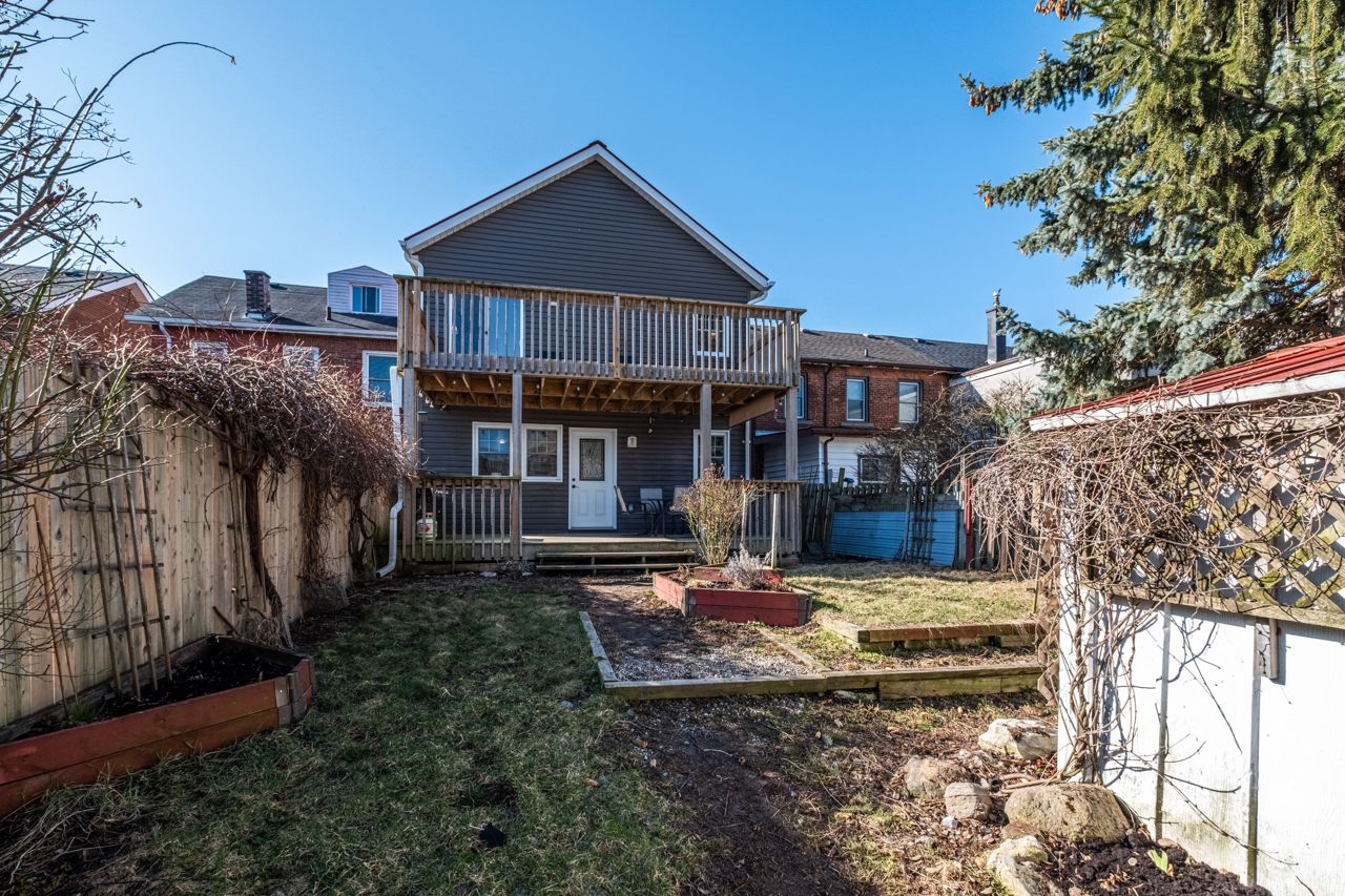 Nestled in Kingstons popular Fruitbelt neighbourhood, this charming semi-detached two-storey home is full of character & modern appeal. Step inside to discover striking finishes, including a wonderful mix of luxury vinyl, hardwood & ceramic slate flooring throughout. The main floor offers a bright living space with stylish exposed brick, followed by a formal dining room, a 2pc powder room, & a spacious open-concept eat-in kitchen, fully equipped & perfect for entertaining. From here, access the fully fenced backyard featuring a covered deck, garden bed, storage shed, & rear parking for two. Upstairs, youll find four generously sized bedroomsone showcasing more exposed brick, another with a cozy gas fireplace, & the stunning primary suite with a soaring cathedral ceiling, access to an expansive private balcony, & a beautifully tiled 4-piece ensuite with a separate jetted tub. A second updated 3-piece bath & convenient upper-level laundry complete this floor. All of this, just steps from public transit, a short walk to Skeleton Park, downtown Kingstons shops & restaurants, Hotel Dieu Hospital, & within walking distance to Queens University & KGH.