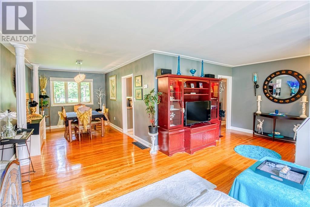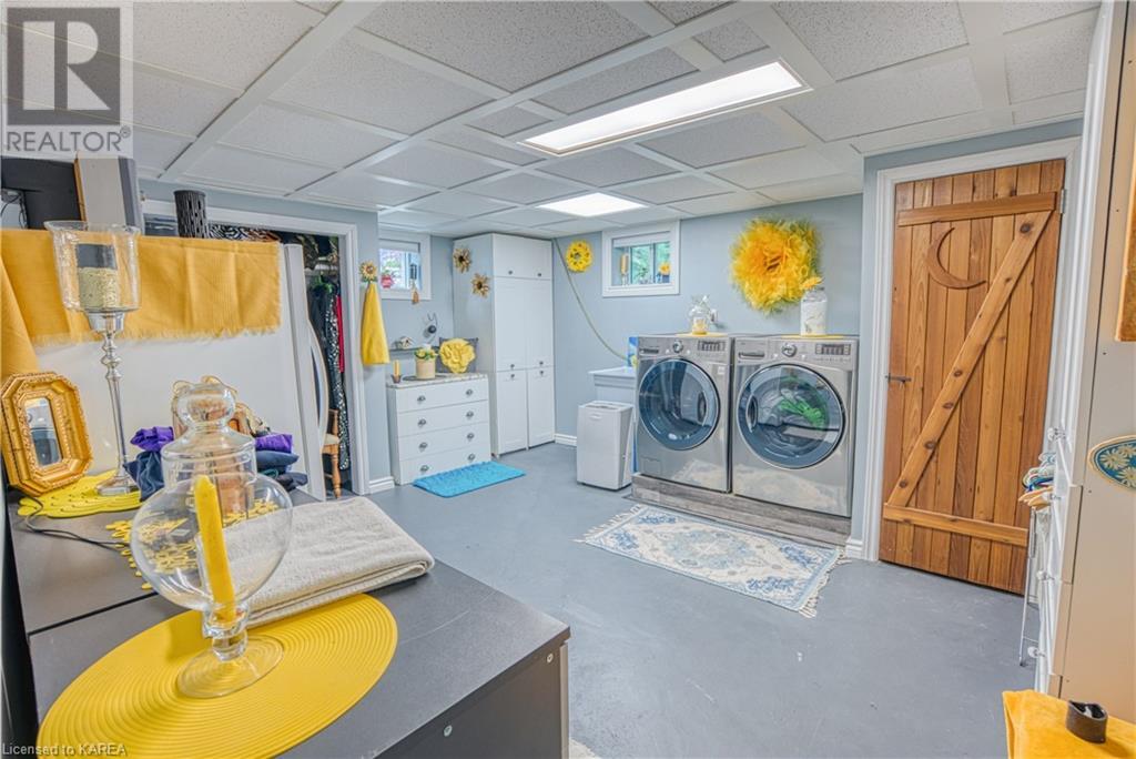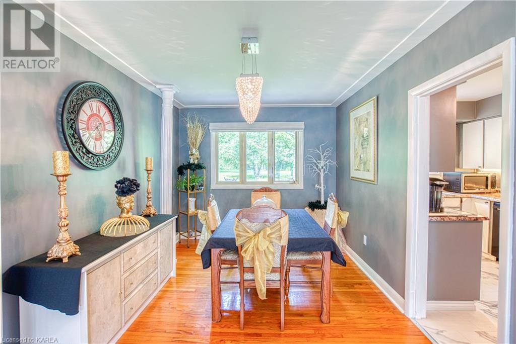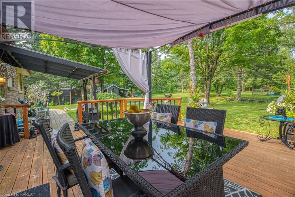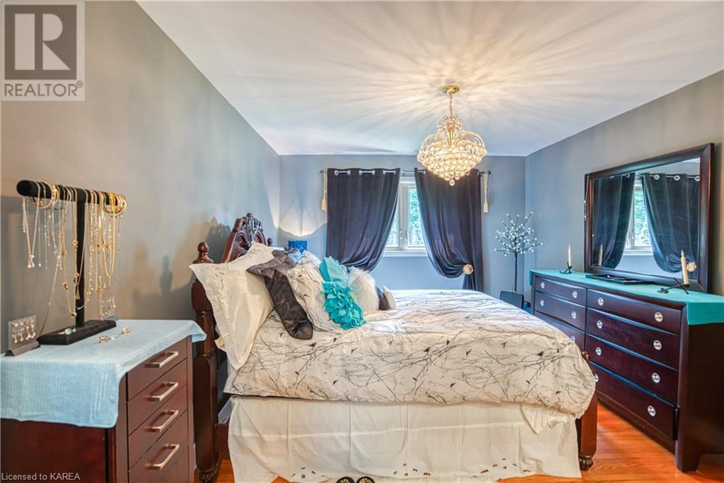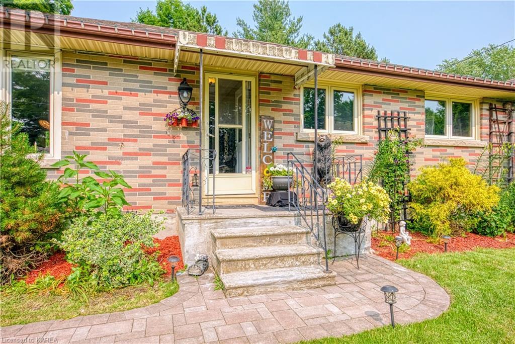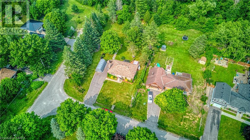 City of Kingston location in a very private and quiet country like setting. You will love the yard and care and love the owner has bestowed on her home. Gorgeous yard and walking distance to Colonel Bye Lake of the Rideau System and to outdoor play areas and outdoor community rink. This improved bungalow features a lovely master suite with walk in closet and dressing area, ensuite main floor bath with spa like features. Second main floor bedroom, living room and dining room and kitchen with all appliances included. Finished lower level with additional bathroom, bedroom and large recreation room and large laundry room with all appliances included and workroom. Stunning outside features including a large deck, mature landscaping features, shed and large portable garage are included. See large list of inclusions. Propane Gas furnace (2018), city water and sewage. Please view video and Matterporte. Additional information is available. (id:22211)