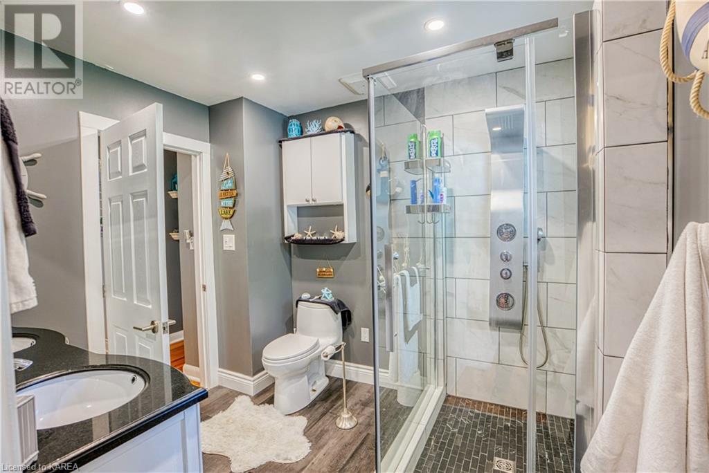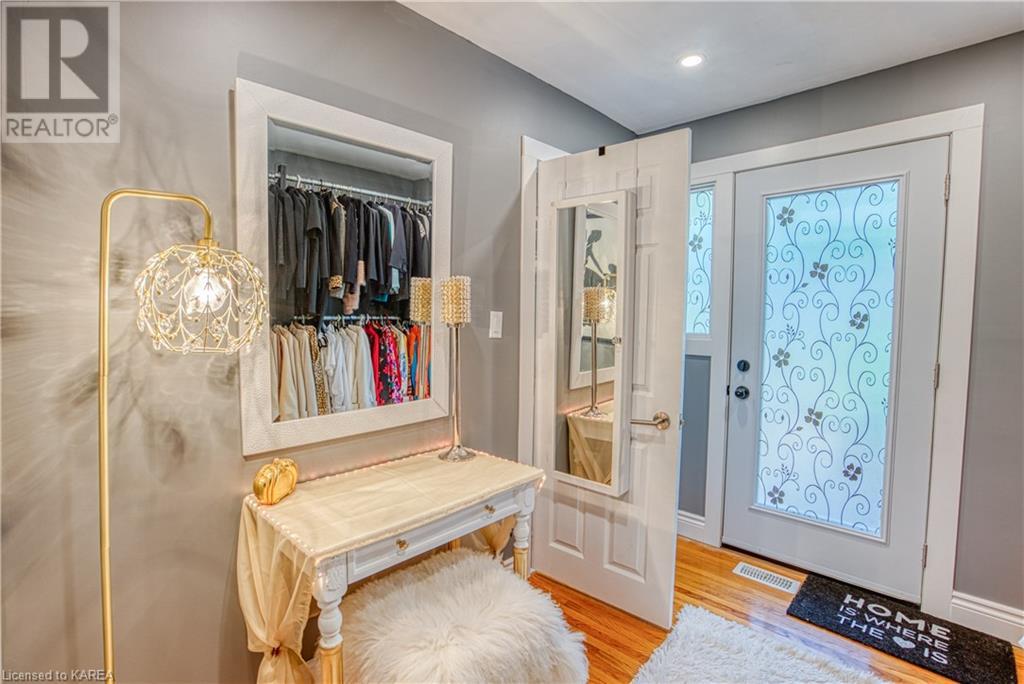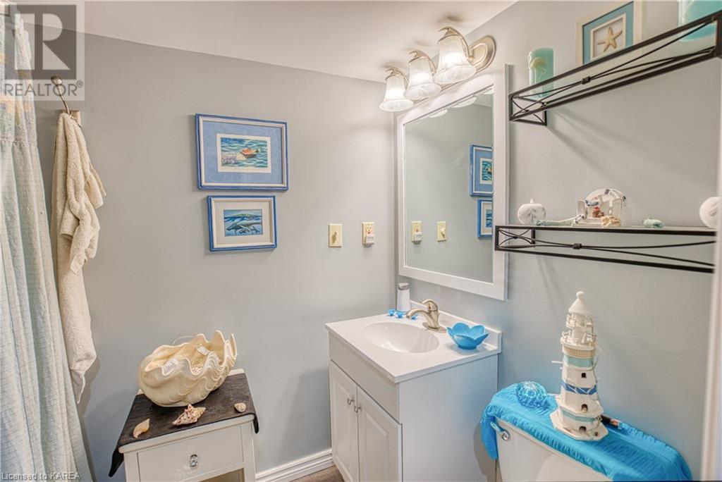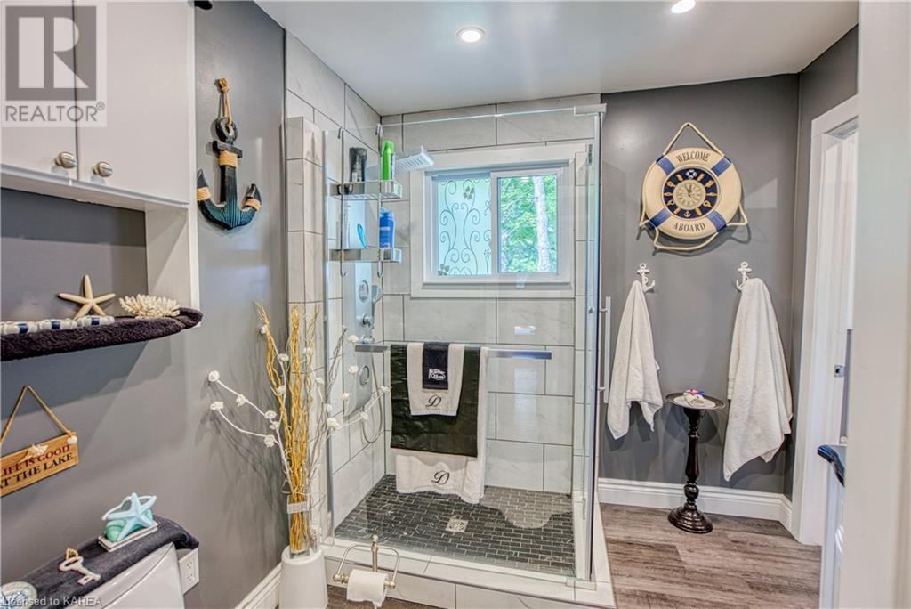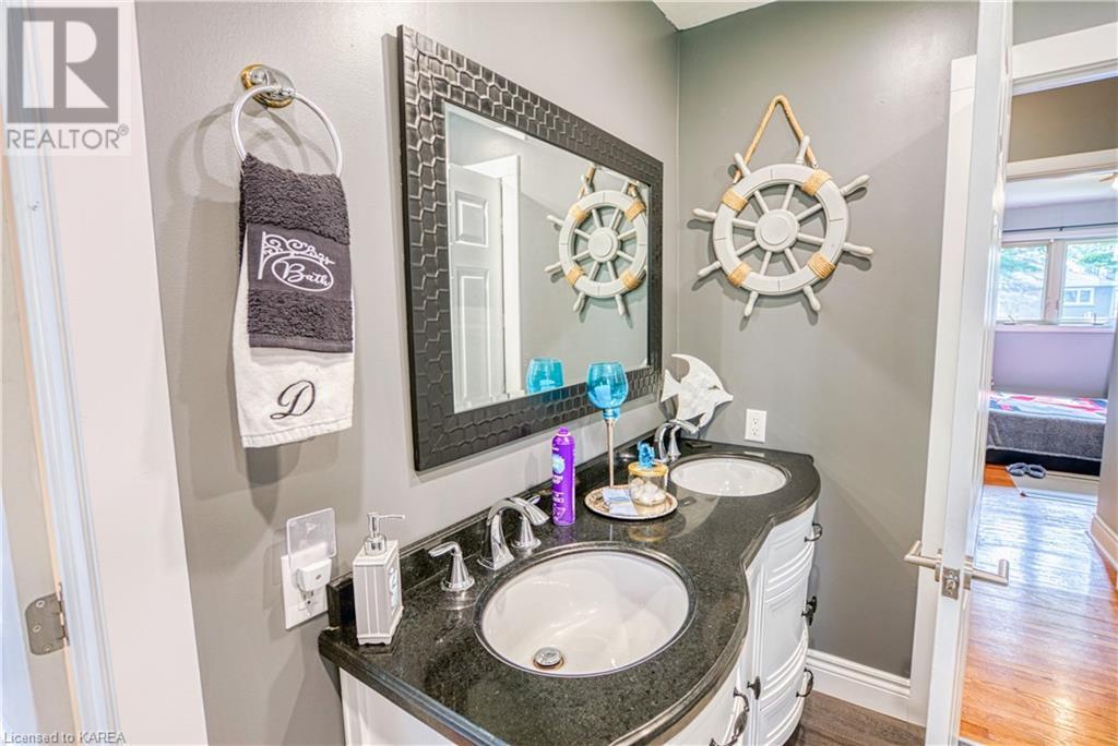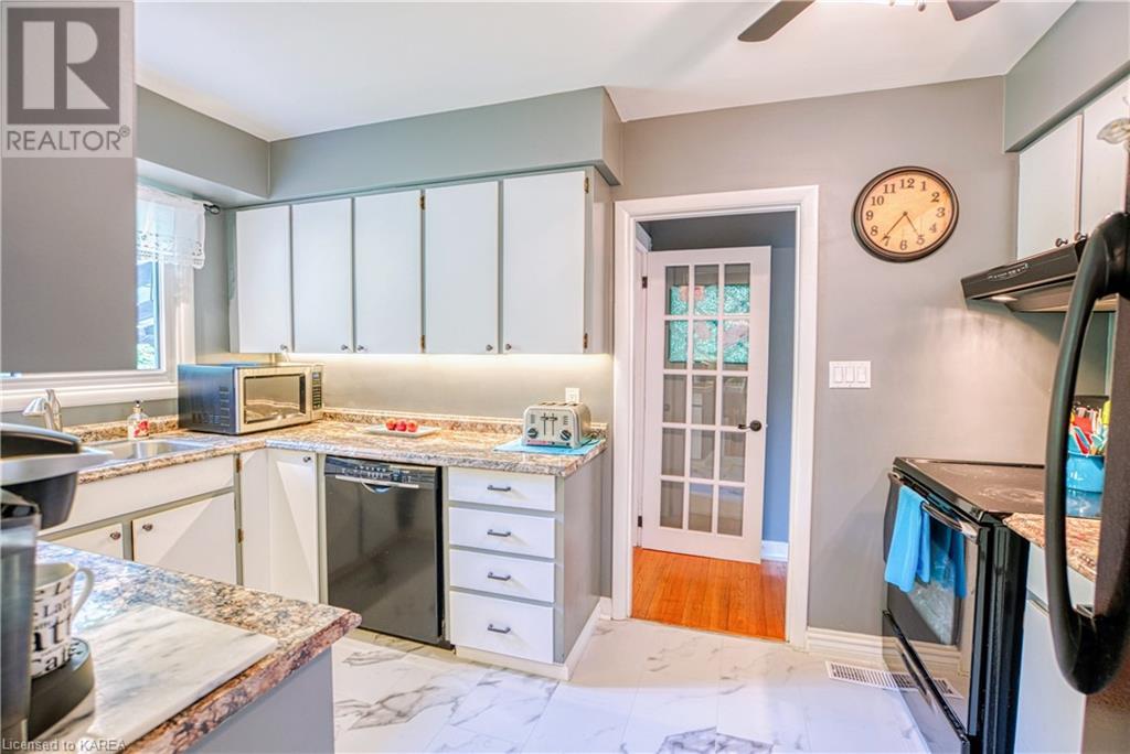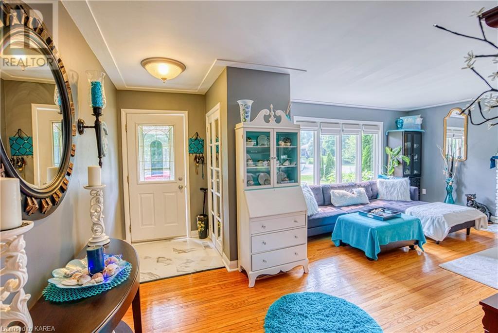 City of Kingston location in a very private and quiet country like setting. You will love the yard and care and love the owner has bestowed on her home. Gorgeous yard and walking distance to Colonel Bye Lake of the Rideau System and to outdoor play areas and outdoor community rink. This improved bungalow features a lovely master suite with walk in closet and dressing area, ensuite main floor bath with spa like features. Second main floor bedroom, living room and dining room and kitchen with all appliances included. Finished lower level with additional bathroom, bedroom and large recreation room and large laundry room with all appliances included and workroom. Stunning outside features including a large deck, mature landscaping features, shed and large portable garage are included. See large list of inclusions. Propane Gas furnace (2018), city water and sewage. Please view video and Matterporte. Additional information is available. (id:22211)