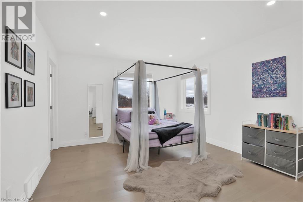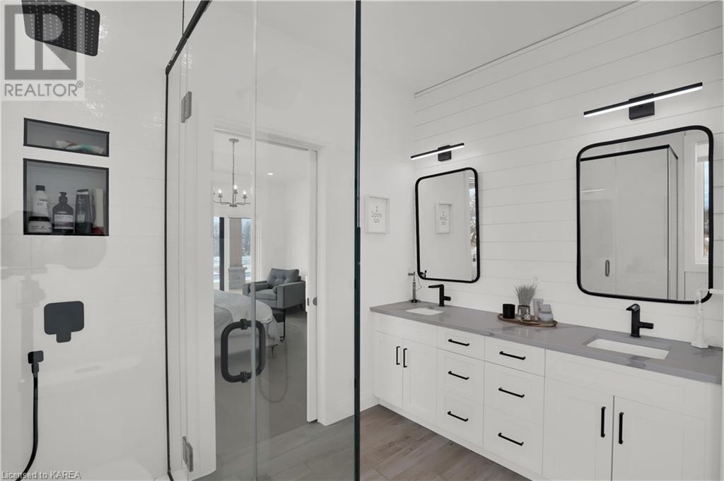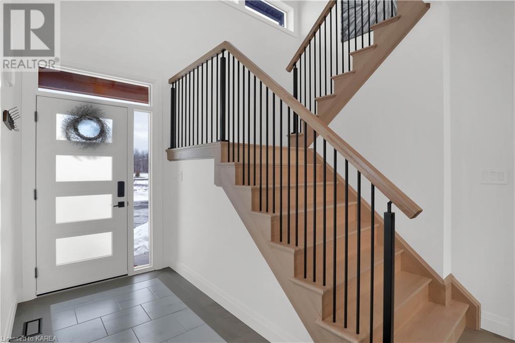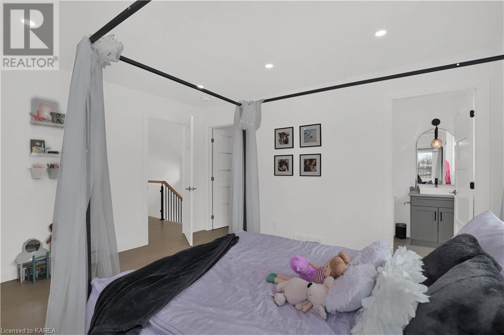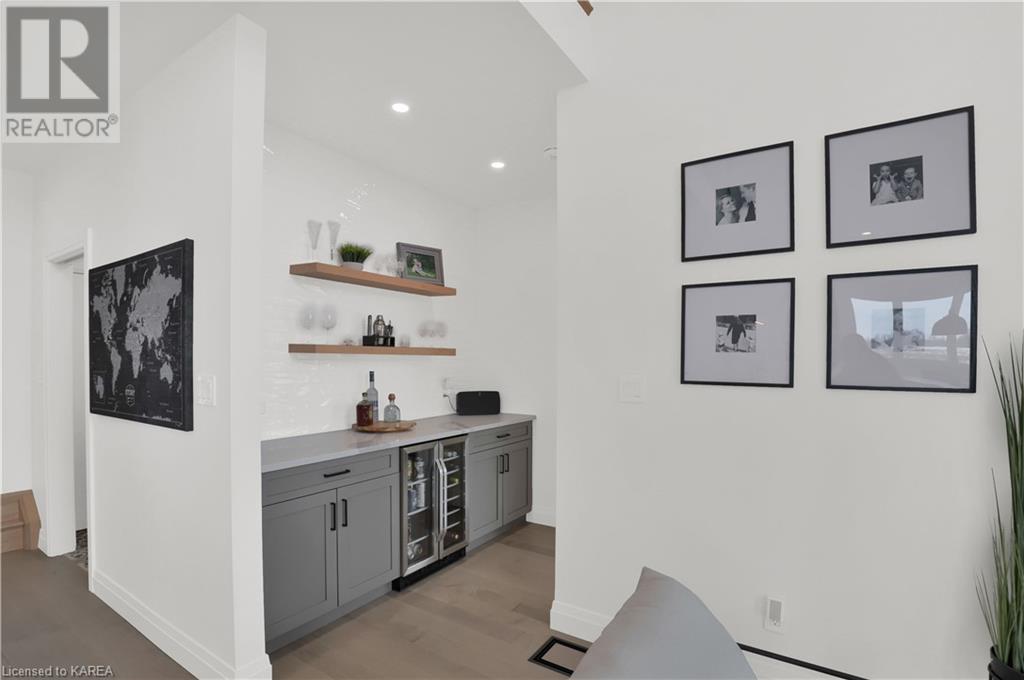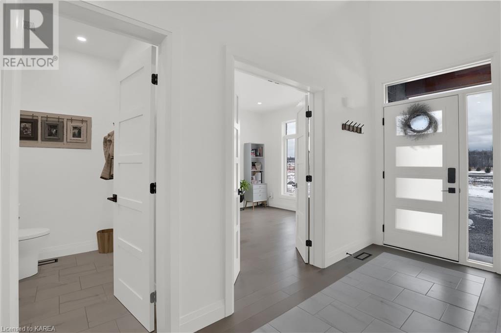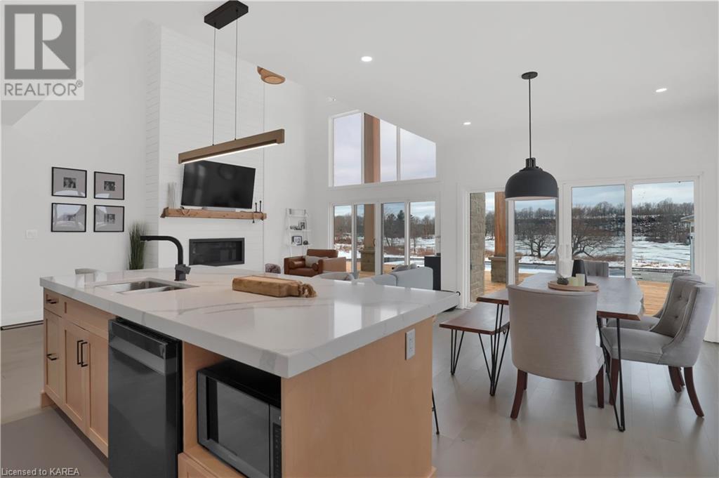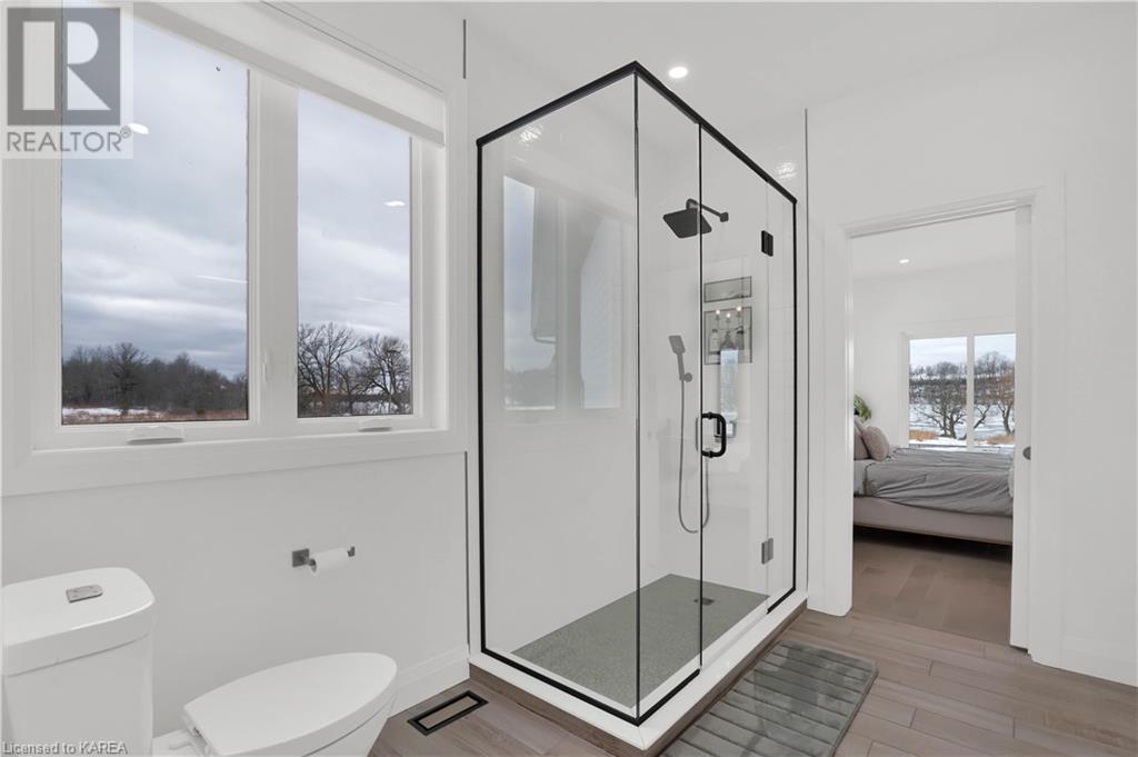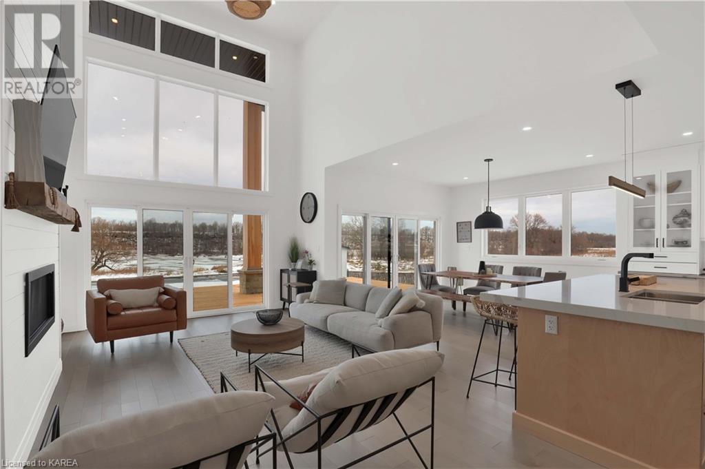 Welcome home to Gibraltar Estates! Quality custom build by renowned local builder Creative Homes by MacAdam. Rideau System waterfront living just 5 minutes north of the 401 within City of Kingston limits, and an easy 15 minute drive to downtown. Situated on 2.5 acres within a cul de sac, boasting 244ft of shoreline, this 3 bedroom 3.5 bathroom home truly defines elegance. The stately Scandinavian vibe carries both modern and timeless style throughout this 2500 square foot home. Open concept kitchen with a number of upgrades, dining area, and living room that is open to above with 20ft ceiling. The natural light will rival that in anything you have ever seen – there are 3 four panel patio doors across the backside of this home all stepping out onto the 18’x48’ covered deck with grand 20ft pillars. Fibreglass heated salt water pool with colour changing lights, deck jets, and 15’x30’ tanning ledge surrounded by patio pavers and retaining walls overlooking waterfront. Other features include 3 car garage with separated 1 bay single car, main floor office, all bedrooms have their own ensuites and walk in closets, spray foamed and drywalled basement with rough in, and hot tub. A few hundred words cannot capture the amount of detail, class, or upgrade list that this home possesses – you have to see it to experience such (id:22211)