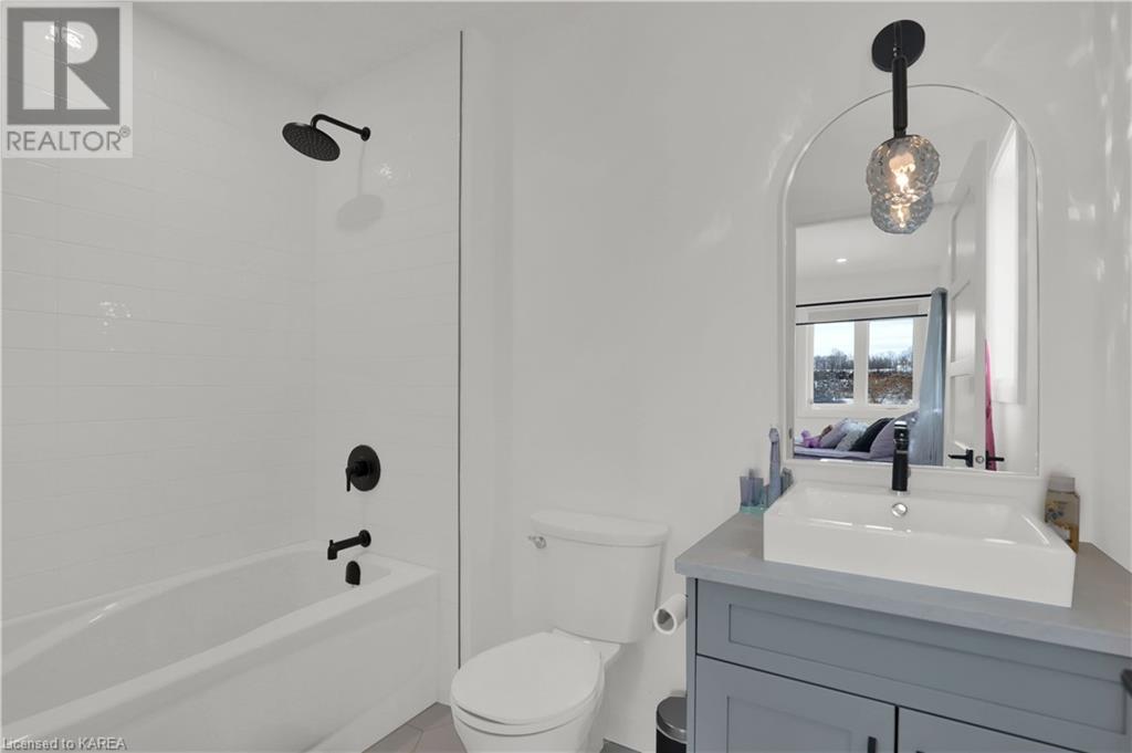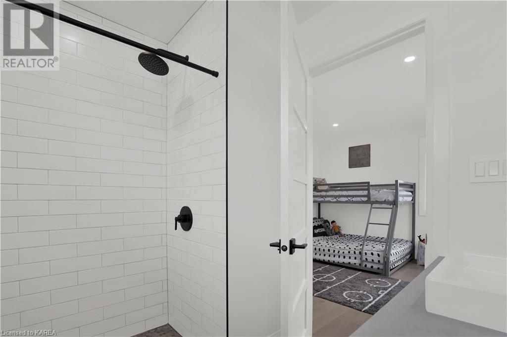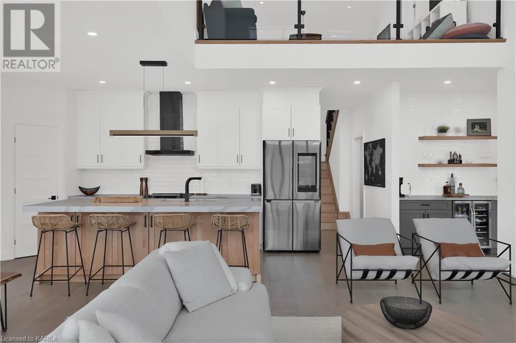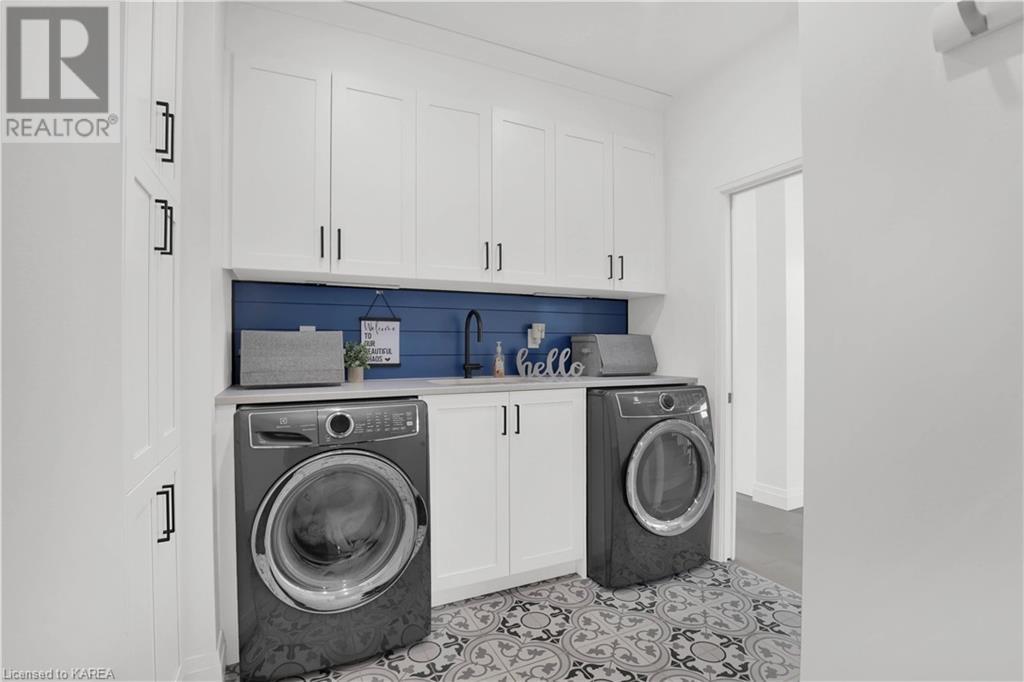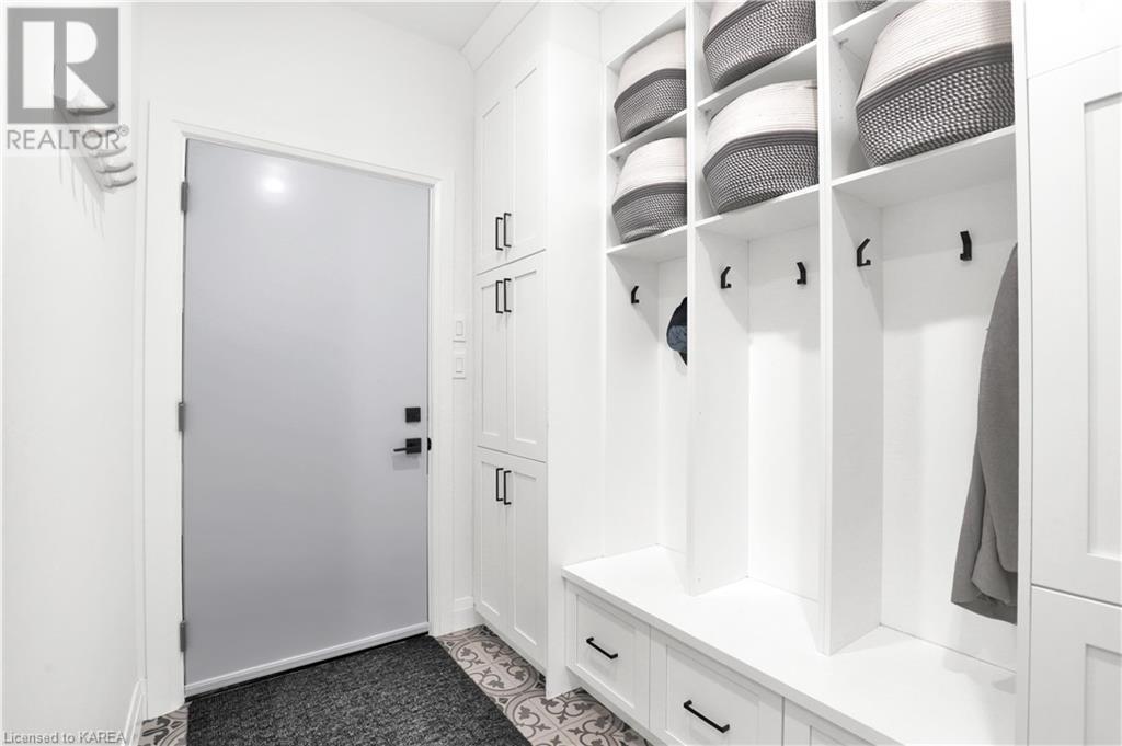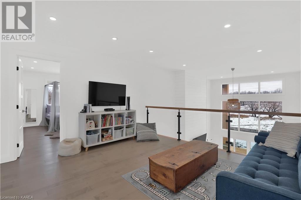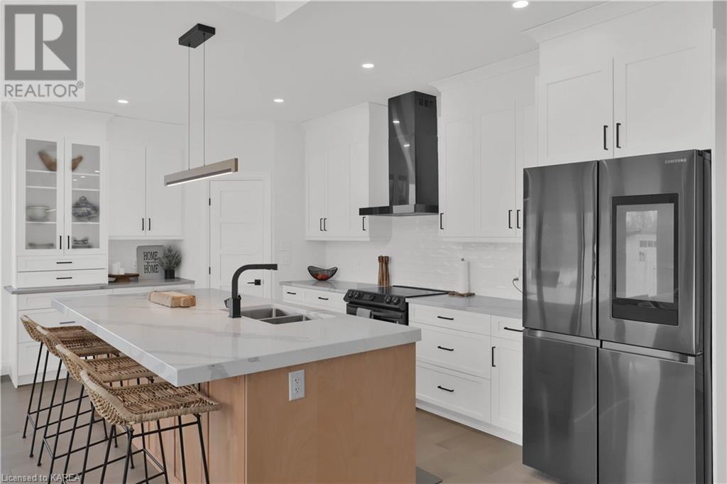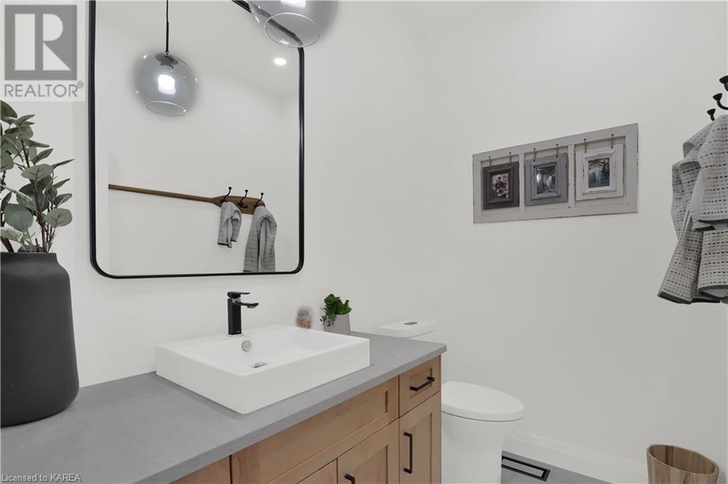 Welcome home to Gibraltar Estates! Quality custom build by renowned local builder Creative Homes by MacAdam. Rideau System waterfront living just 5 minutes north of the 401 within City of Kingston limits, and an easy 15 minute drive to downtown. Situated on 2.5 acres within a cul de sac, boasting 244ft of shoreline, this 3 bedroom 3.5 bathroom home truly defines elegance. The stately Scandinavian vibe carries both modern and timeless style throughout this 2500 square foot home. Open concept kitchen with a number of upgrades, dining area, and living room that is open to above with 20ft ceiling. The natural light will rival that in anything you have ever seen – there are 3 four panel patio doors across the backside of this home all stepping out onto the 18’x48’ covered deck with grand 20ft pillars. Fibreglass heated salt water pool with colour changing lights, deck jets, and 15’x30’ tanning ledge surrounded by patio pavers and retaining walls overlooking waterfront. Other features include 3 car garage with separated 1 bay single car, main floor office, all bedrooms have their own ensuites and walk in closets, spray foamed and drywalled basement with rough in, and hot tub. A few hundred words cannot capture the amount of detail, class, or upgrade list that this home possesses – you have to see it to experience such (id:22211)