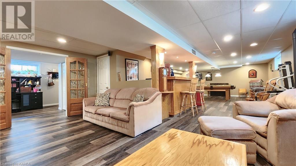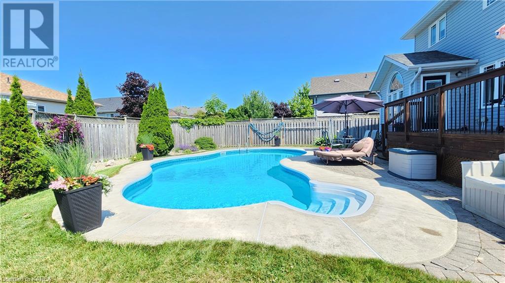 Welcome to 228 Sheridan Street, a beautiful custom 2,340 sqft 4+1 bed / 3.5 bath Greene Home in a fantastic central location. Upon arriving you will be greeted with superb curb appeal and that welcome home feeling. Once entering the funtional foyer with French doors and tiled flooring, perfect for removing shoes & outerware, you move into the spacious main living area with a floor plan that you have never seen before. Boasting engineered hardwood throughout the main level the flow between the zones is perfect with the living room, dining room, fuctiinal laundry room w/ sink & countertop for folding clothes, large 2-pc powder room and access to a large double garage in the main area while the rear opens to a bright and renovated kitchen w/ eating bar, marble counters, tiled backsplash, cozy family room and large breakfast area w/ huge picture windows that overlook the stunning inground pool. Take a dip and cool off or sunbathe on the patio in your backyard oasis. There is still room to play with the fully fenced extra large back & side grassed yard. Continue up the extra-wide grand staircase to the spacious second floor that is home to a relaxing master suite w/ French doors, walk-in & walk-through closets & 5-pc ensuite. Close the French doors & enjoy the vaulted ceiling & expansive windows or rejuvenate in the private soaker tub. 3 additional generous bedrooms and 5-pc main bath. Lower level is fully finished with luxury vinyl plank flooring throughout, games area (incl. pool table), drinks bar, relaxing lounge w/ gas f/p to curl up and watch a movie. Bonus add'l bedroom w/ its own 3-pc bath making it perfect for guests or in-laws. To top it off, it's situated just steps to the park and shopping. Don't miss it! (id:22211)