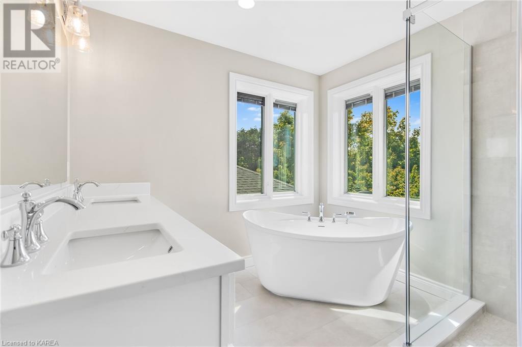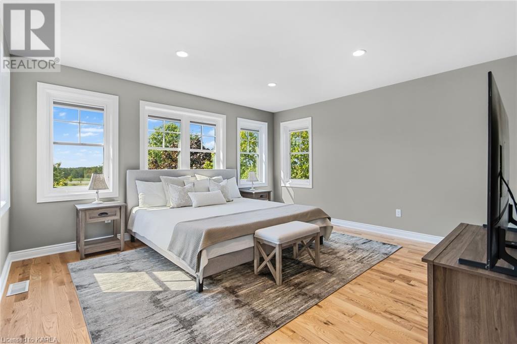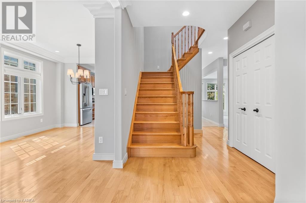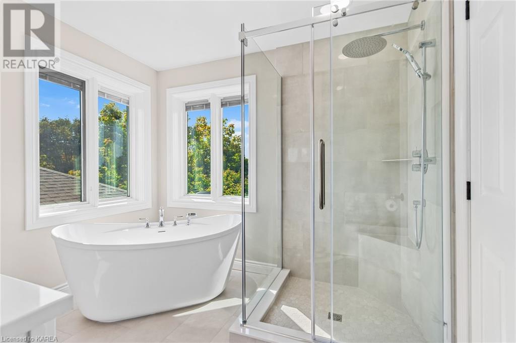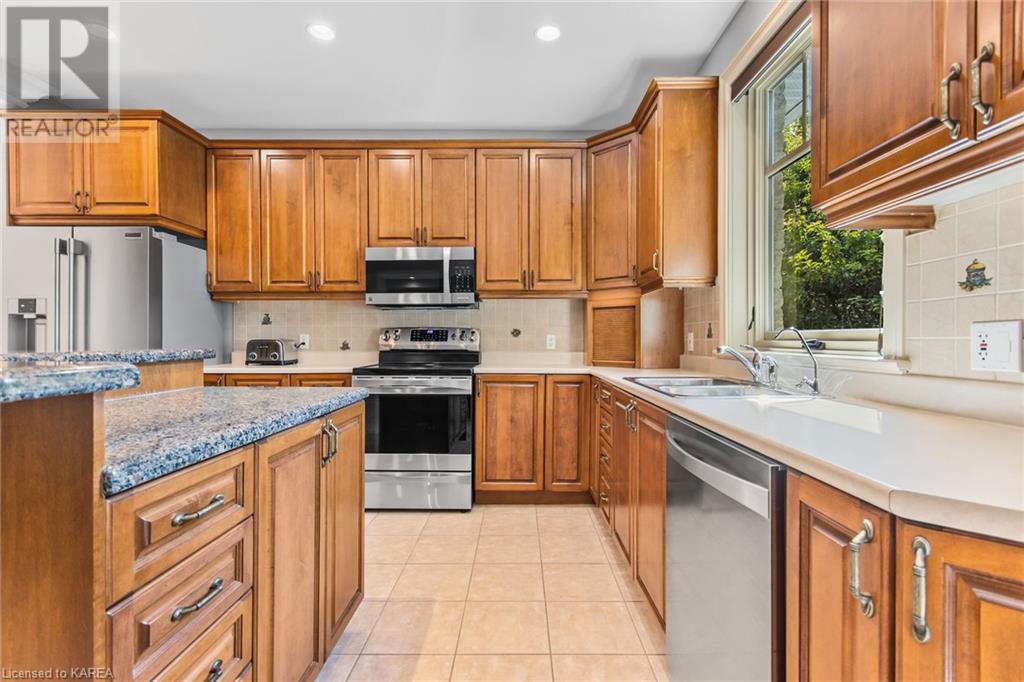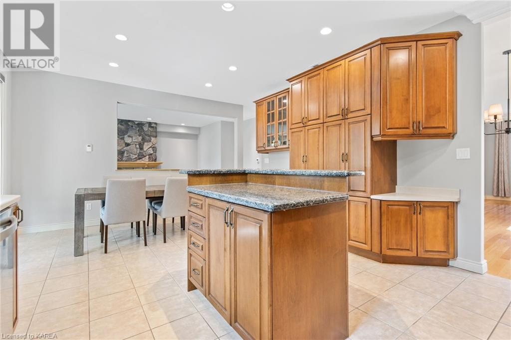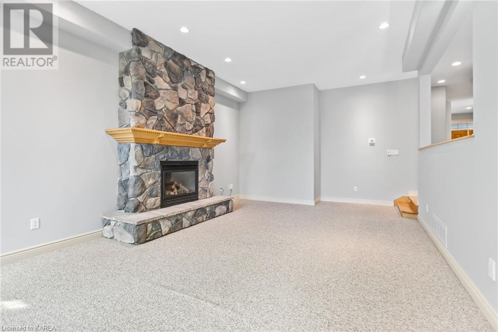 Welcome to 235 Honeywood Ave, an exquisite 2-storey executive home in Greenwood Park. Situated on a premium lot with no rear neighbours, this property offers privacy and luxury. It features a heated triple car garage, ICF foundation, stone & fibreglass exterior, Pela & Marvin windows, HRV system, and in-floor heating. Inside, you'll find a spacious living room and a separate dining room with hardwood flooring, crown moulding, and pot lights. The fully equipped eat-in kitchen boasts a granite island and breakfast bar. A sliding glass door leads to a covered balcony with LED lighting, perfect for taking in the South-Western views. The sunken family room is a cozy retreat with a stone gas fireplace. Completing the main level are a 2-pc powder room and a mud/laundry room with garage access. Upstairs, the primary bedroom features a walk-in closet, his & hers' closets, and a luxurious 5-pc ensuite bath. Three additional generous-sized bedrooms and another 5-pc bath complete the second level. The fully finished walk-out basement offers an enormous rec room with a wet bar, perfect for entertaining. An office, a spacious den with multiple closets, and a 4-pc bath round out this level. Outside, the deep, fully-fenced yard is complimented by an in-ground sprinkler system. Steps away, you'll find a playground and a recreational trail for outdoor activities. Conveniently close to amenities and just a 15-minute drive to Downtown, KGH, and Queen's University. We look forward to welcoming you home. (id:22211)
