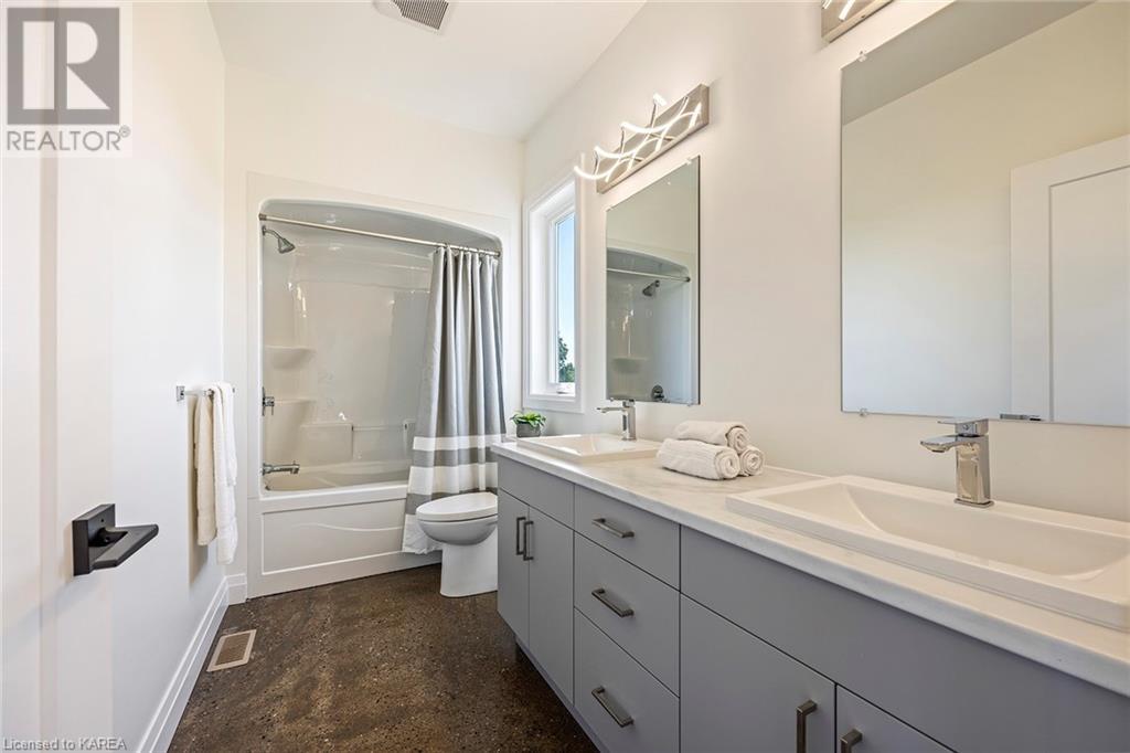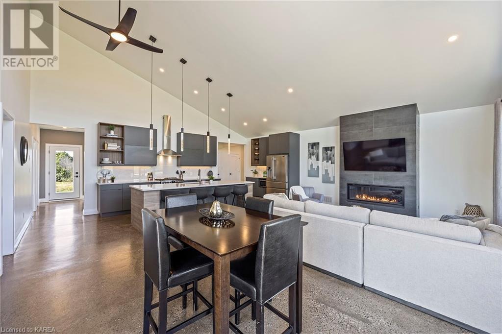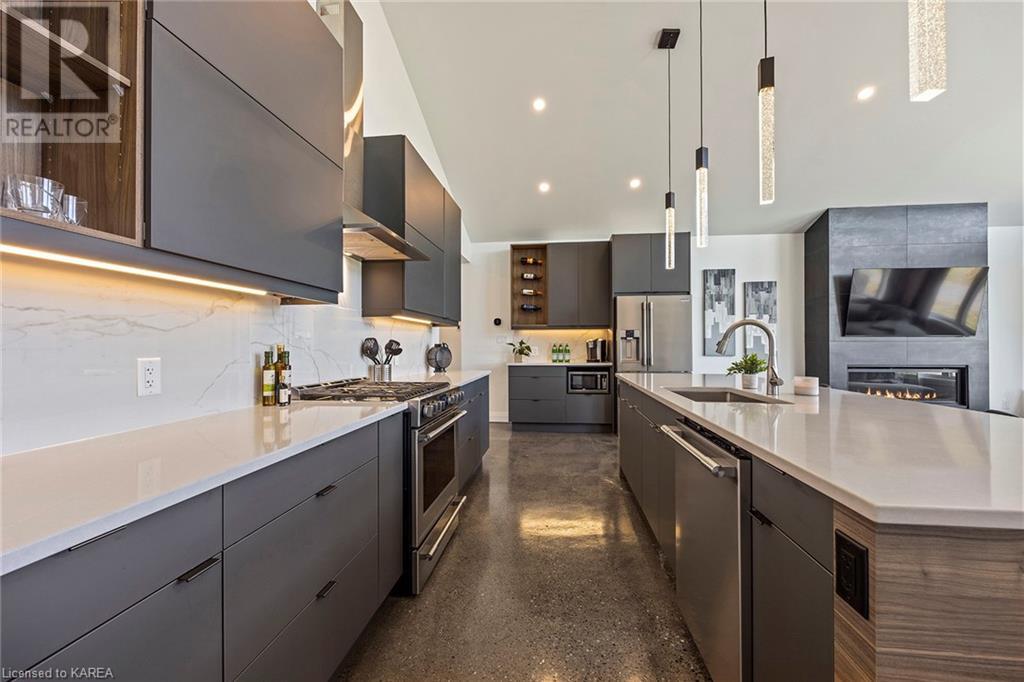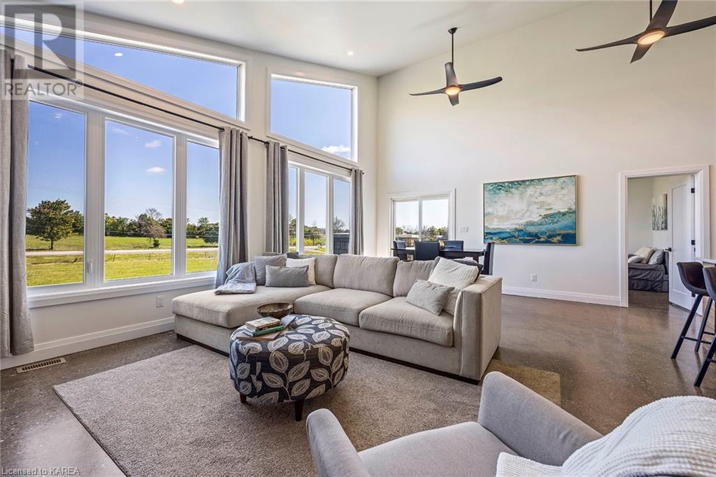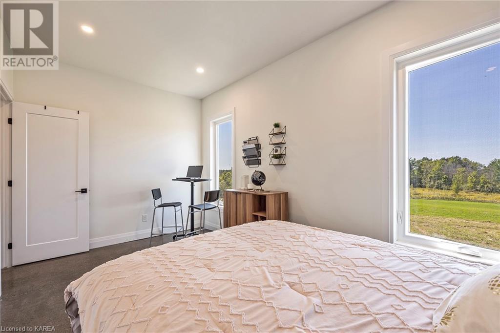 With modern & stunning touches, this less than two years old, two-storey custom built home by Maize Homes will blow you away! The attention to detail is evident from the moment you step through the front door! Complete w 4 beds, 2 baths, open concept floorplan, cathedral ceilings, ceiling-to-floor windows for SO much natural light, upper level laundry, spacious bedrooms, bright master w huge walk- in closet & ensuite w double sinks, custom glass shower doors & tiled surround also featuring private balcony w beautiful views of fields! Separate dining area that leads to a sizeable deck for your BBQ's & outside enjoyment plus two additional access doors to a future rear deck. There are so many upgrades throughout this gorgeous home, they all cannot be listed here! Custom kitchen design & cabinets w auto touch doors & quartz countertops, custom built-in wine rack & coffee bar, polished concrete floors w spray foam insulation, pot lights, propane gas fireplace, in-floor radiant heat, & 5 heating zones w nest thermostats. A lower level garage that is certainly a car lovers' dream!! This four-bay garage has upgraded epoxy flooring, fully insulated & drywalled, hot & cold water interior hose bib, custom LED lighting system & glass garage doors for additional light. All on a 4-acre lot, that is perfect for a pool, additional detached structure for storage - all located only minutes to the west end & easy-access to the 401! This is sure to be your dream home for years to come! (id:22211)