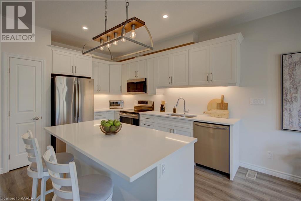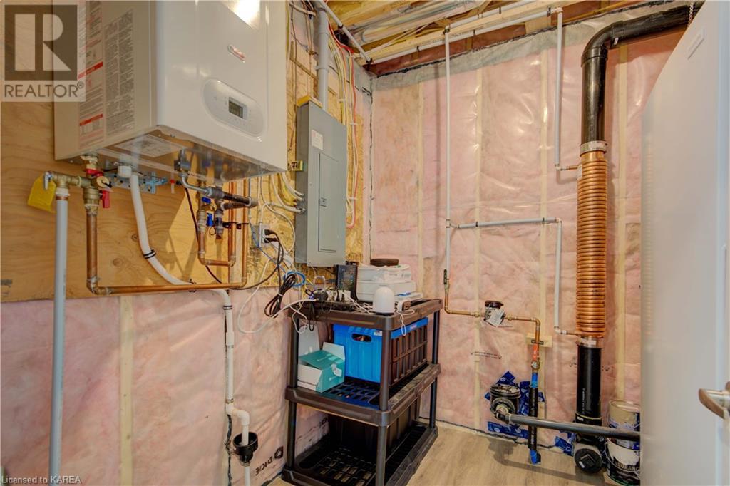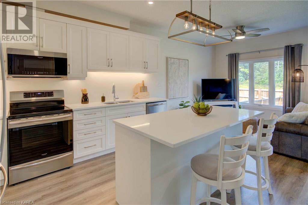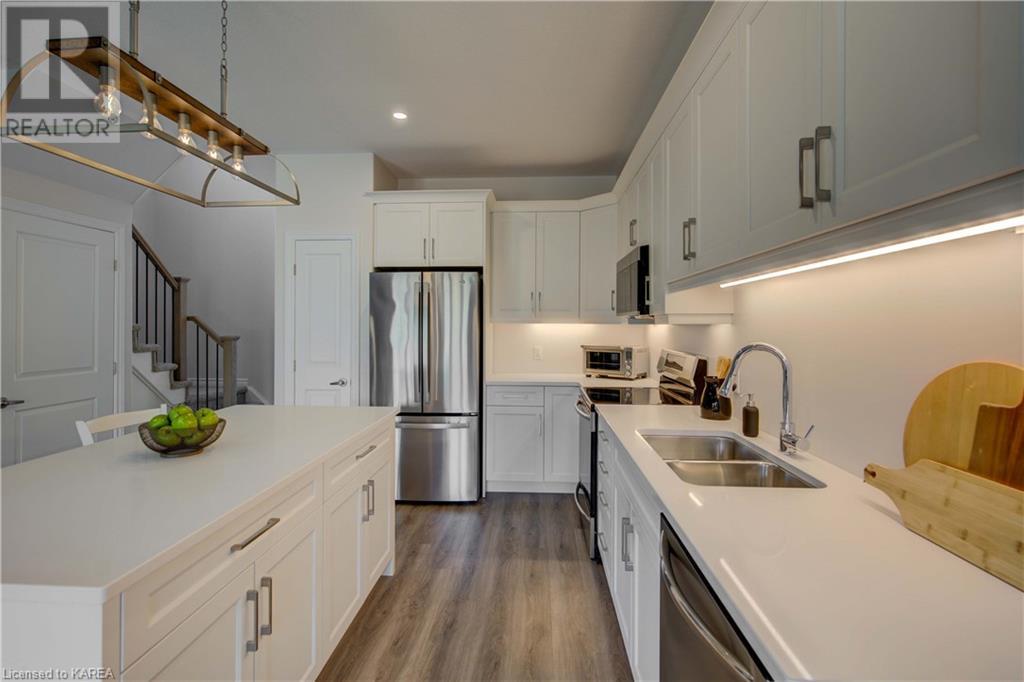 Are you in the market for a Newer, Move-in ready home in Northwest Kingston? Come check out this Stunning 3 Bedroom, 2.5 Bathroom Semi with Quality Finishes and 1,920sqft of living space, including a Fully Finished Basement. The main floor features 9FT Ceilings, Open Concept Kitchen/Living/Dining and Luxury Vinyl Plank & Ceramic Tile Flooring. The Kitchen is every chef's dream with Quartz Countertops & Island, Stainless Steel Appliances, Pantry, Solid Wood Cabinetry and Under Cabinet Lighting. As you venture upstairs, you will find Three Spacious Bedrooms, Primary Walk-in Closet and Luxurious Ensuite with Quartz Vanity and Glass enclosed Tiled Shower. The Basement also features 9FT High Ceilings and offers you plenty of options such as a Gym, Office and/or Family Room. As for the location, you couldn't be in a better area - It's very quiet, you have no rear neighbours and it's conveniently located close to Kingston Transit, Highway 401, Parks and Plenty of Shopping. This is definitely one that you need to see in person! (id:22211)