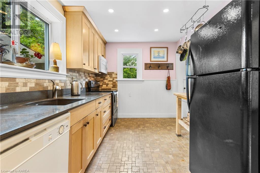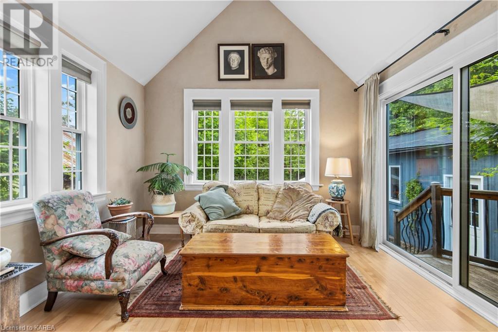Welcome home to an oasis in the Fruit Belt. Upon entering you will know this 3 bedroom/2 bathroom home has been well loved. Polished hardwood floors throughout the main and upper levels, with tile in the bathroom and sunlit kitchen. The sun-room overlooks a country scene with organic garden beds and limestone courtyard. A wine cellar in the lower level also serves as a cold-room and opens into the backyard. Best of all, simply EVERYTHING in downtown Kingston is a few minutes walk! (id:22211)