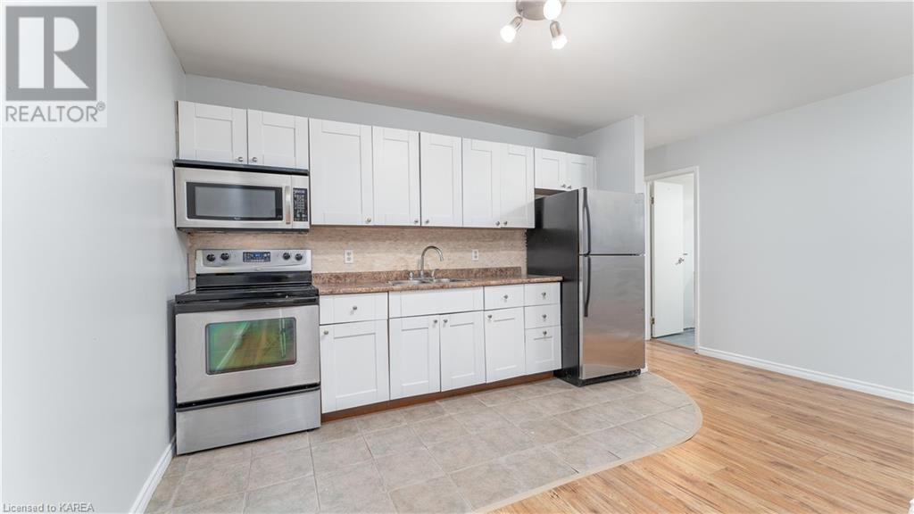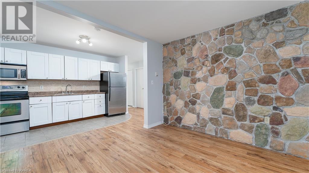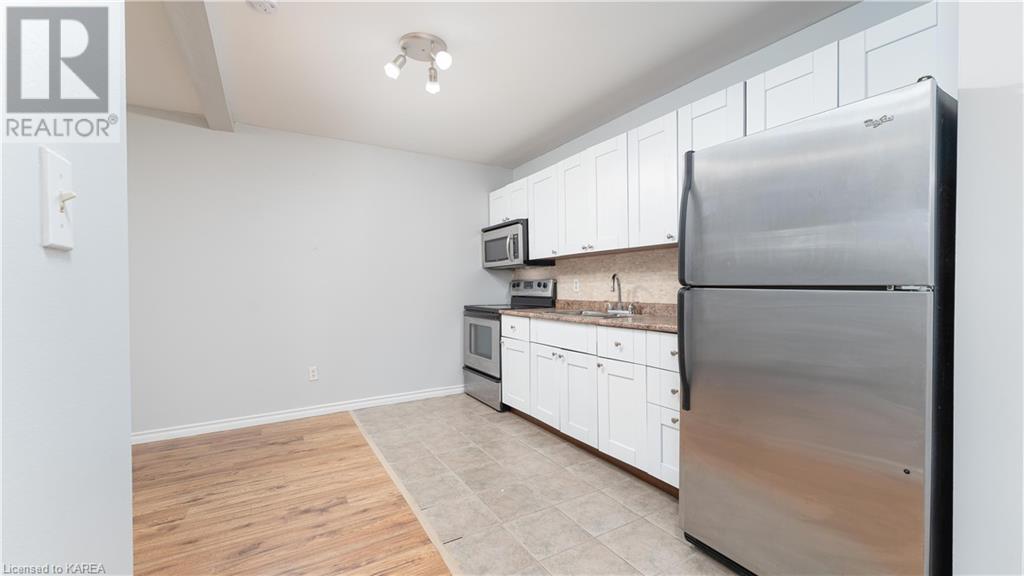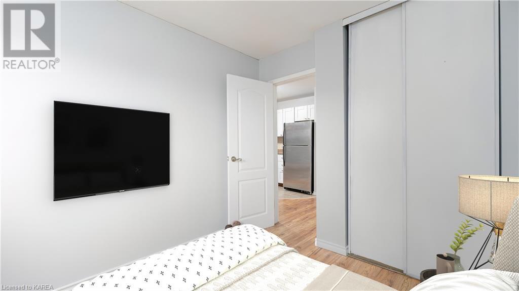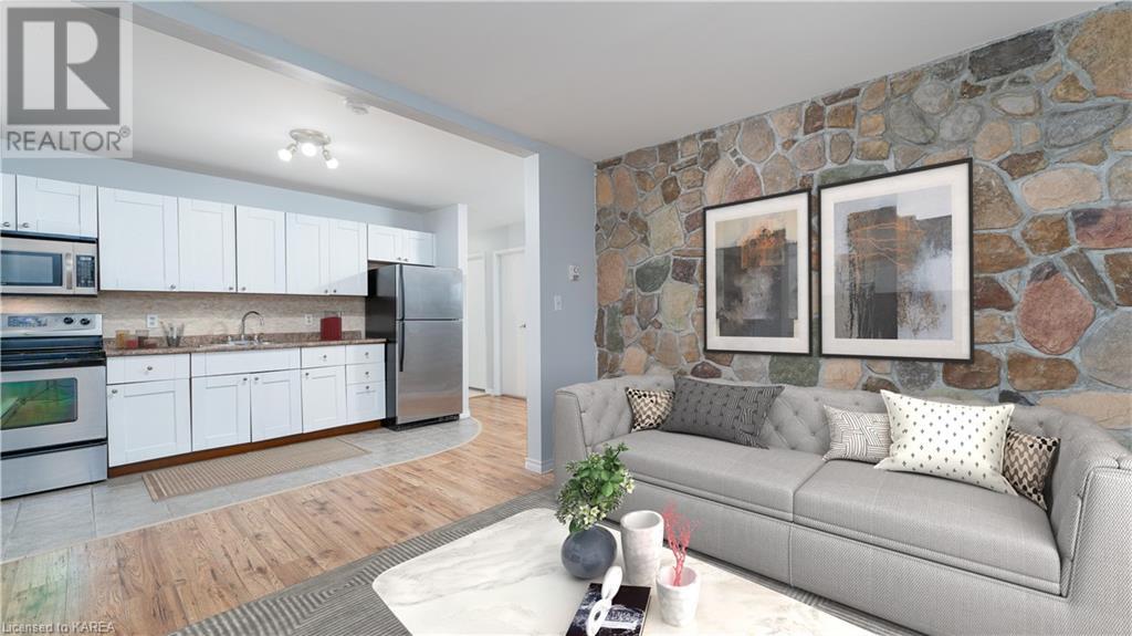 Welcome to this freshly painted 1-bedroom, 1-bathroom condo unit in the desirable 566 Armstrong Road building. It boasts an open-concept living space with sliding doors to a private balcony, decorative stone wall, carpet-free living, and storage room. Ready to downsize, a first-time buyer, or an investor? With low condo fees, low maintenance lifestyle, and being within walking distance to shopping, groceries, and all major bus routes, this is a great opportunity for you. Queen's University, St. Lawrence College, and RMC students or Military postings, why pay someone else's mortgage? The building is small pet friendly, and has an elevator, and onsite laundry facilities. Schedule your private showing today. (id:22211)