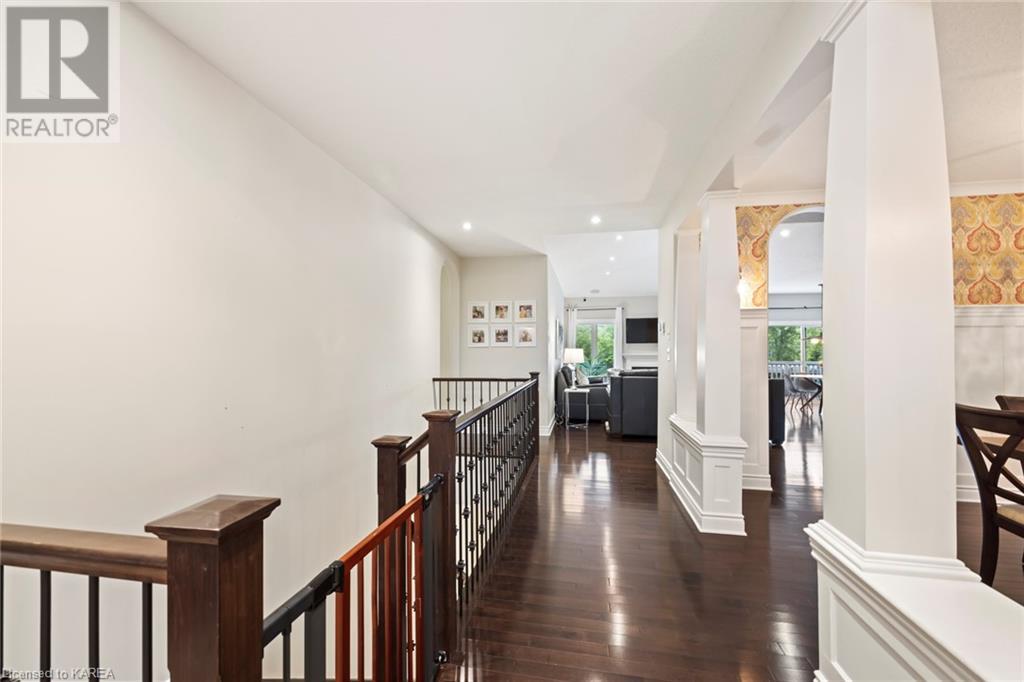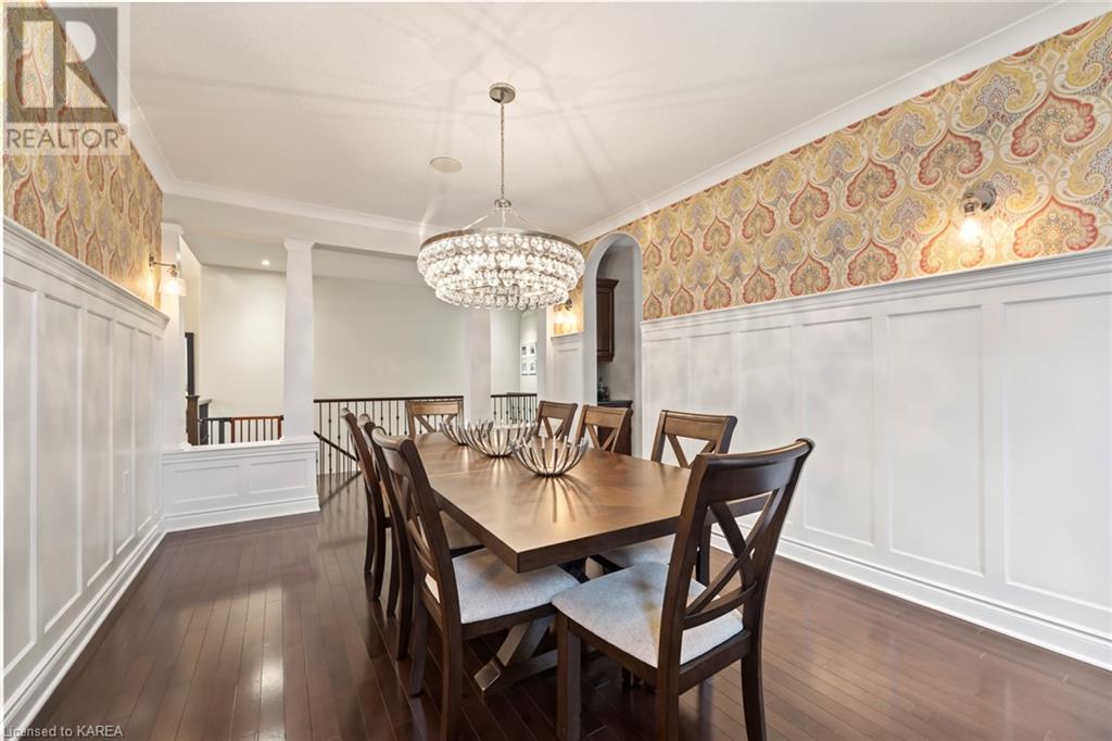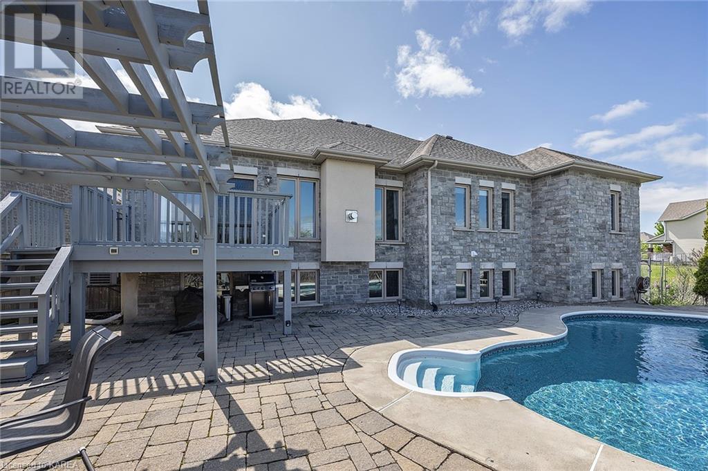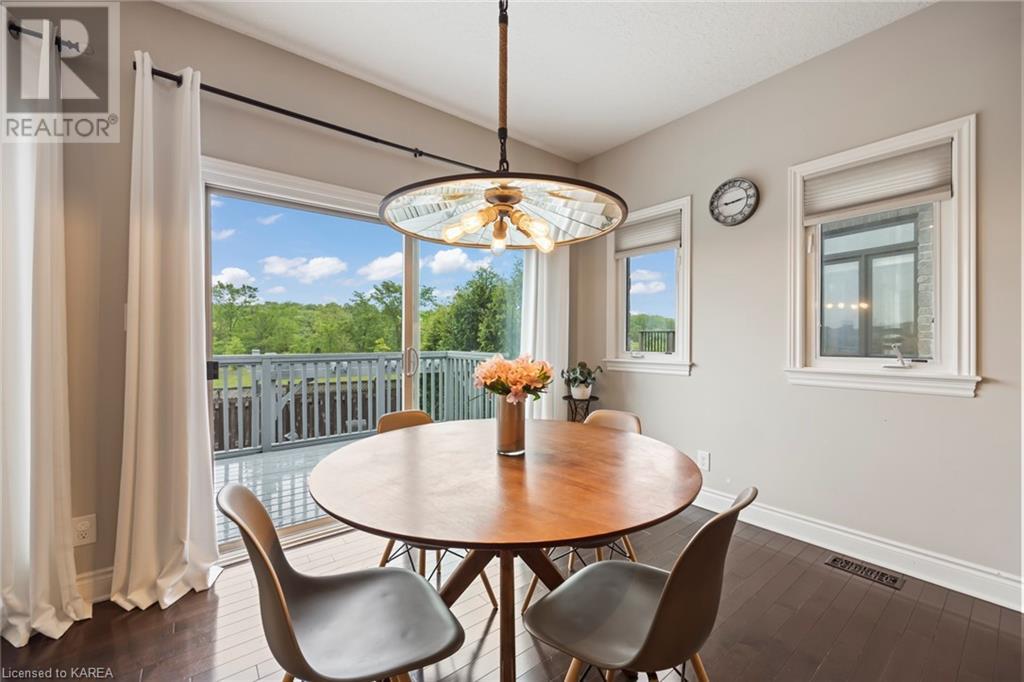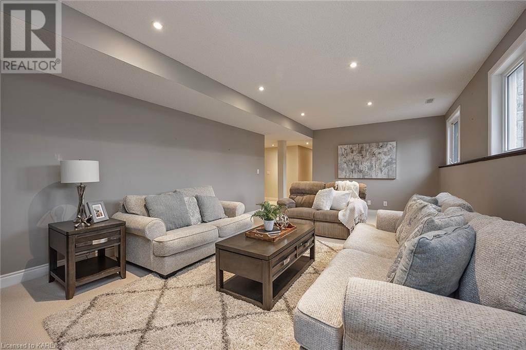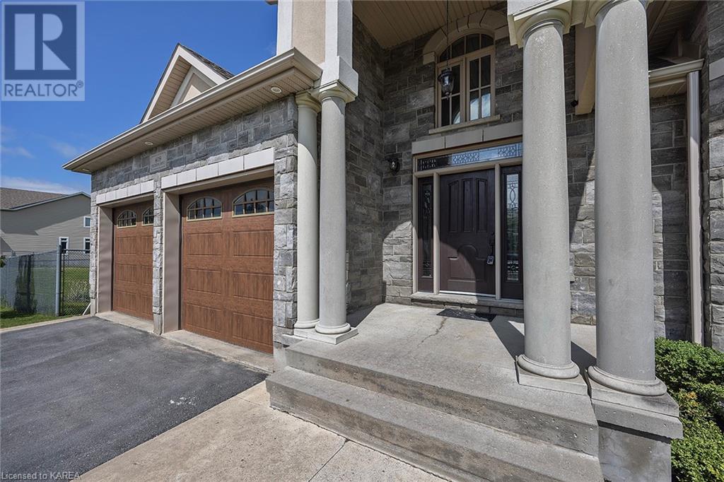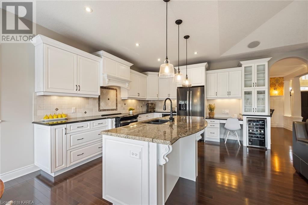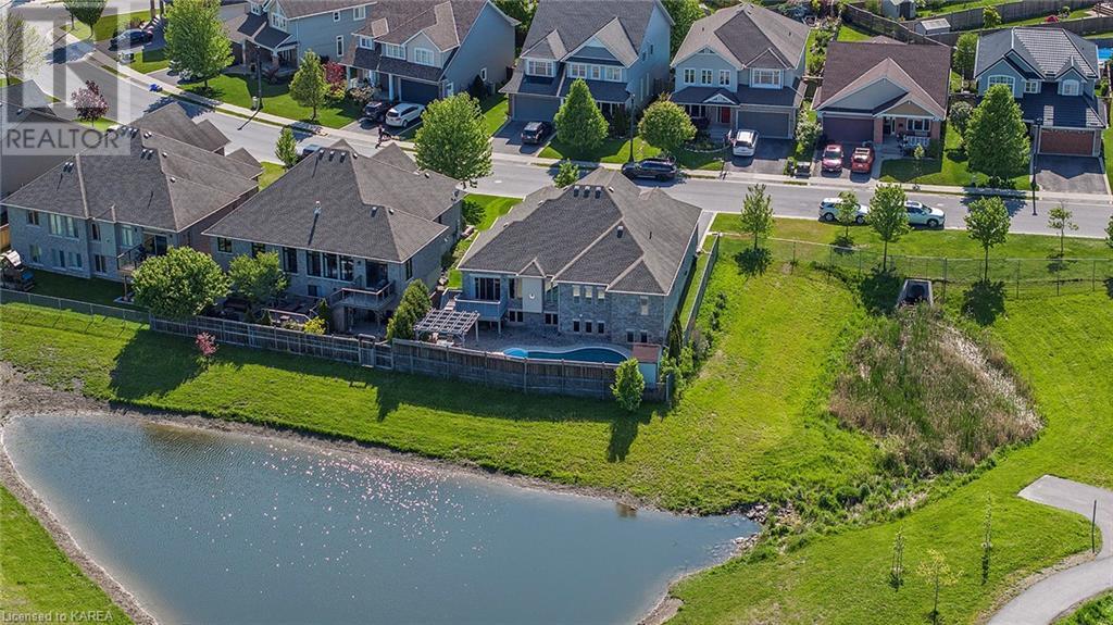 This spectacular 3+2 bedroom executive custom built bungalow offers magnificent sightlines where you need them, and privacy where to want it the most. With a wonderfully refreshed kitchen, and set on a premium lot backing onto conservation lands, and immediate neighbours only on one side, this amazing home checks off all of the boxes. Entering through the grand foyer, you will love the openness of the floorplan, with the gourmet kitchen with stone counters and large island looking out over the large living area with vaulted ceilings and lovely gas fireplace. The breakfast nook provides outside access to a great bbq deck, and a few steps down to your fully fenced backyard oasis with heated in-ground salt water pool. Main floor also has a large formal dining room where everyone can gather for family events, as well as a generous office with new California shutters. The bedrooms are all a great size, and the primary bedroom with trayed ceiling features lovely wood floors, a large walk-in closet and spa-like ensuite. Downstairs are two more bedrooms, and a large rec room, each of which have large bright windows. Lots of storage space as well. This home is ideally situated close to CFB Kingston and provides easy access to all parts of the city and Highway 401. Don’t miss this beautiful home! (id:22211)