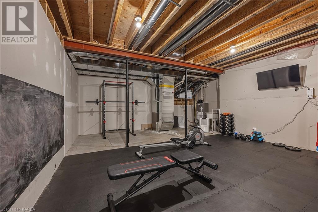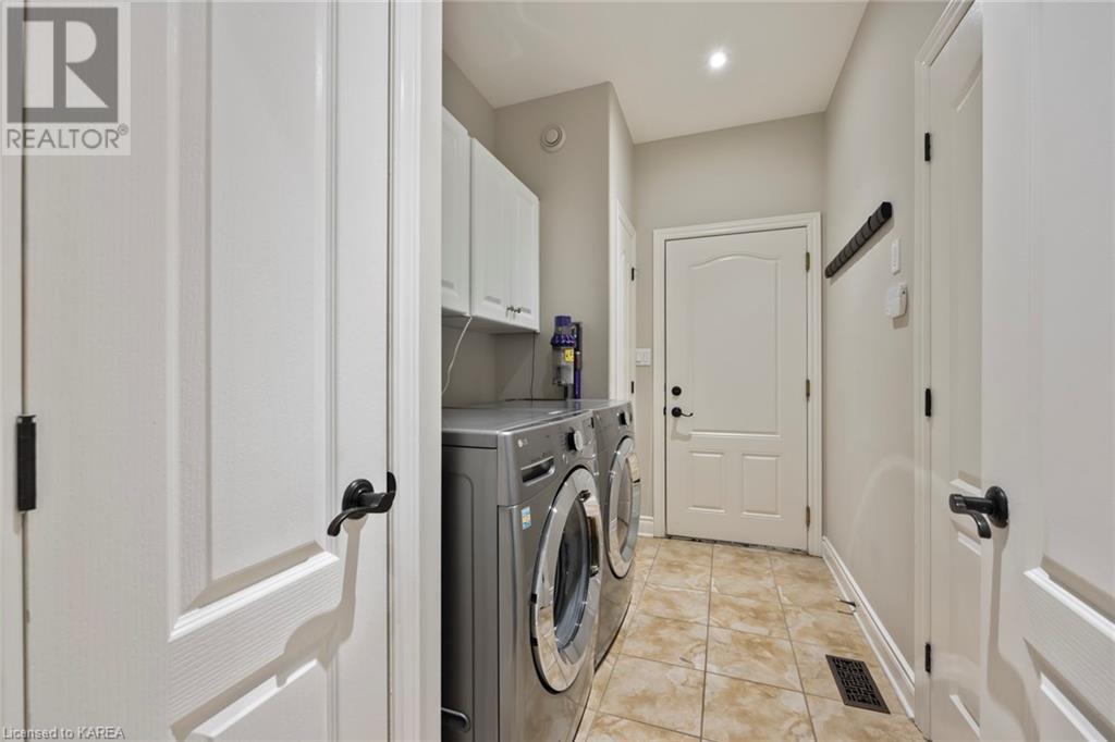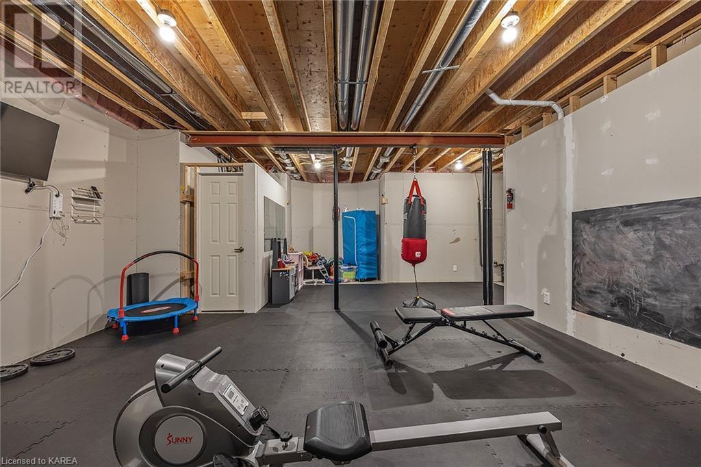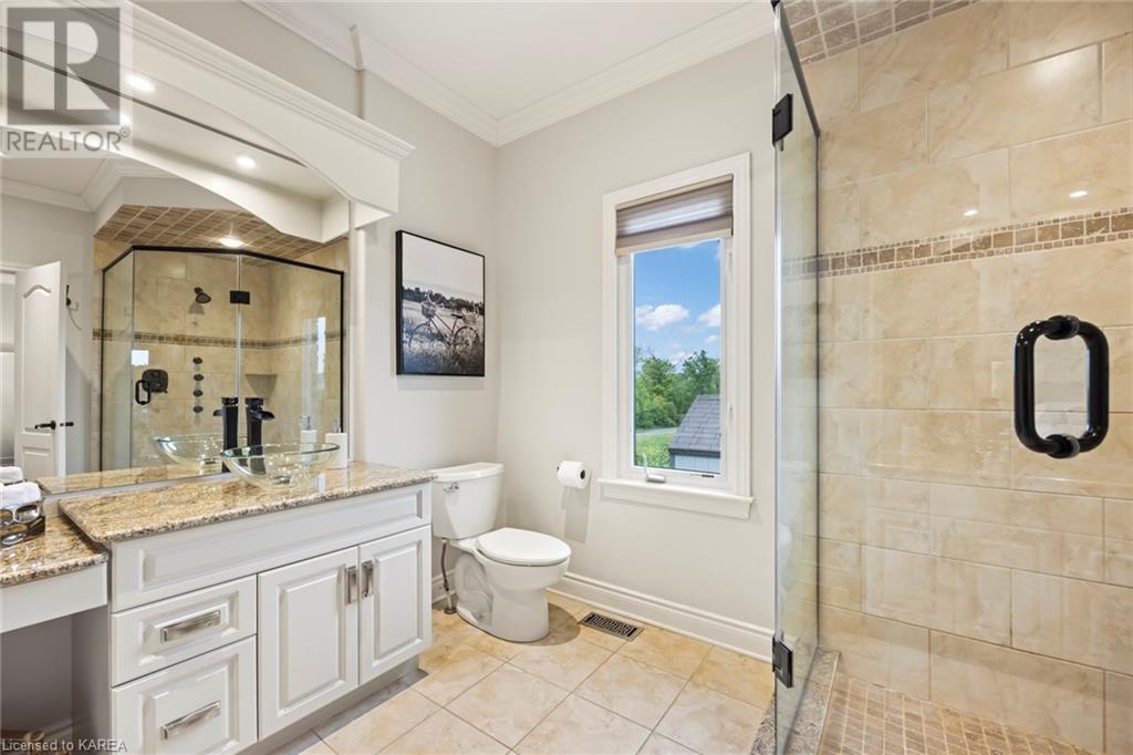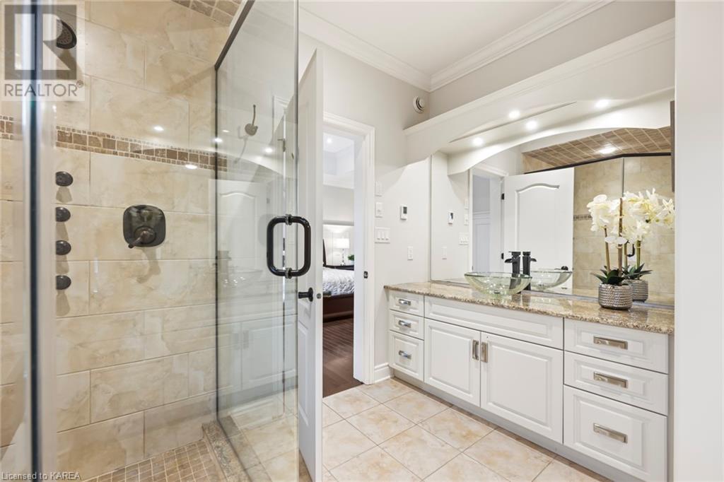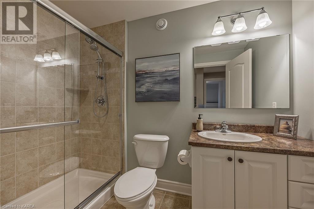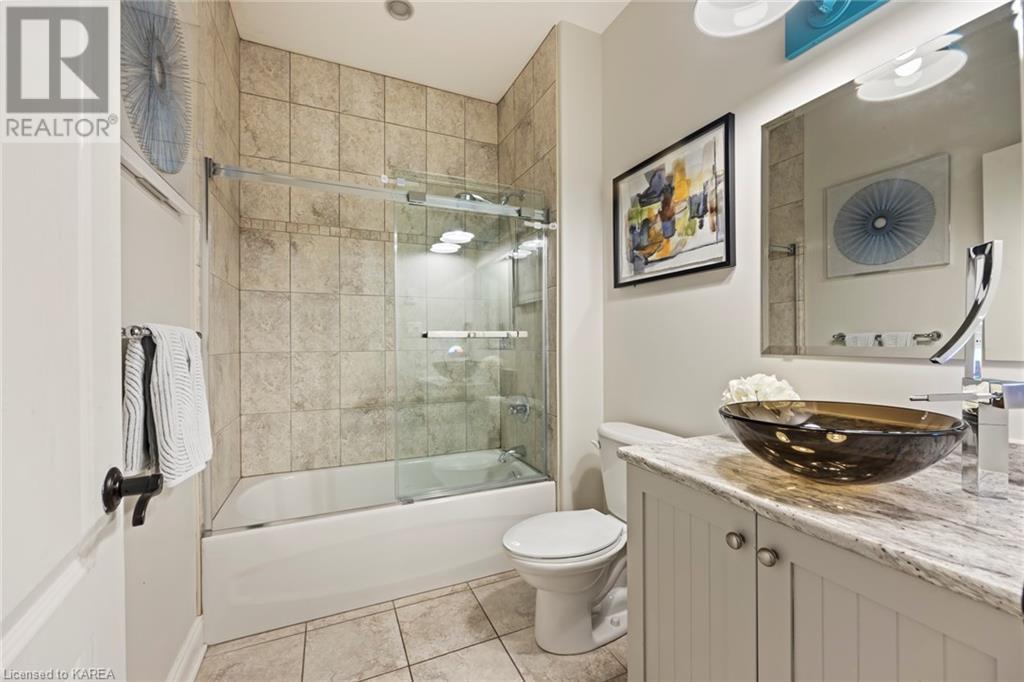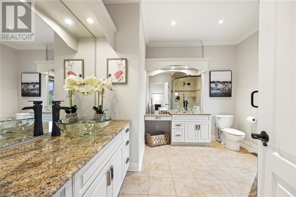 This spectacular 3+2 bedroom executive custom built bungalow offers magnificent sightlines where you need them, and privacy where to want it the most. With a wonderfully refreshed kitchen, and set on a premium lot backing onto conservation lands, and immediate neighbours only on one side, this amazing home checks off all of the boxes. Entering through the grand foyer, you will love the openness of the floorplan, with the gourmet kitchen with stone counters and large island looking out over the large living area with vaulted ceilings and lovely gas fireplace. The breakfast nook provides outside access to a great bbq deck, and a few steps down to your fully fenced backyard oasis with heated in-ground salt water pool. Main floor also has a large formal dining room where everyone can gather for family events, as well as a generous office with new California shutters. The bedrooms are all a great size, and the primary bedroom with trayed ceiling features lovely wood floors, a large walk-in closet and spa-like ensuite. Downstairs are two more bedrooms, and a large rec room, each of which have large bright windows. Lots of storage space as well. This home is ideally situated close to CFB Kingston and provides easy access to all parts of the city and Highway 401. Don’t miss this beautiful home! (id:22211)
